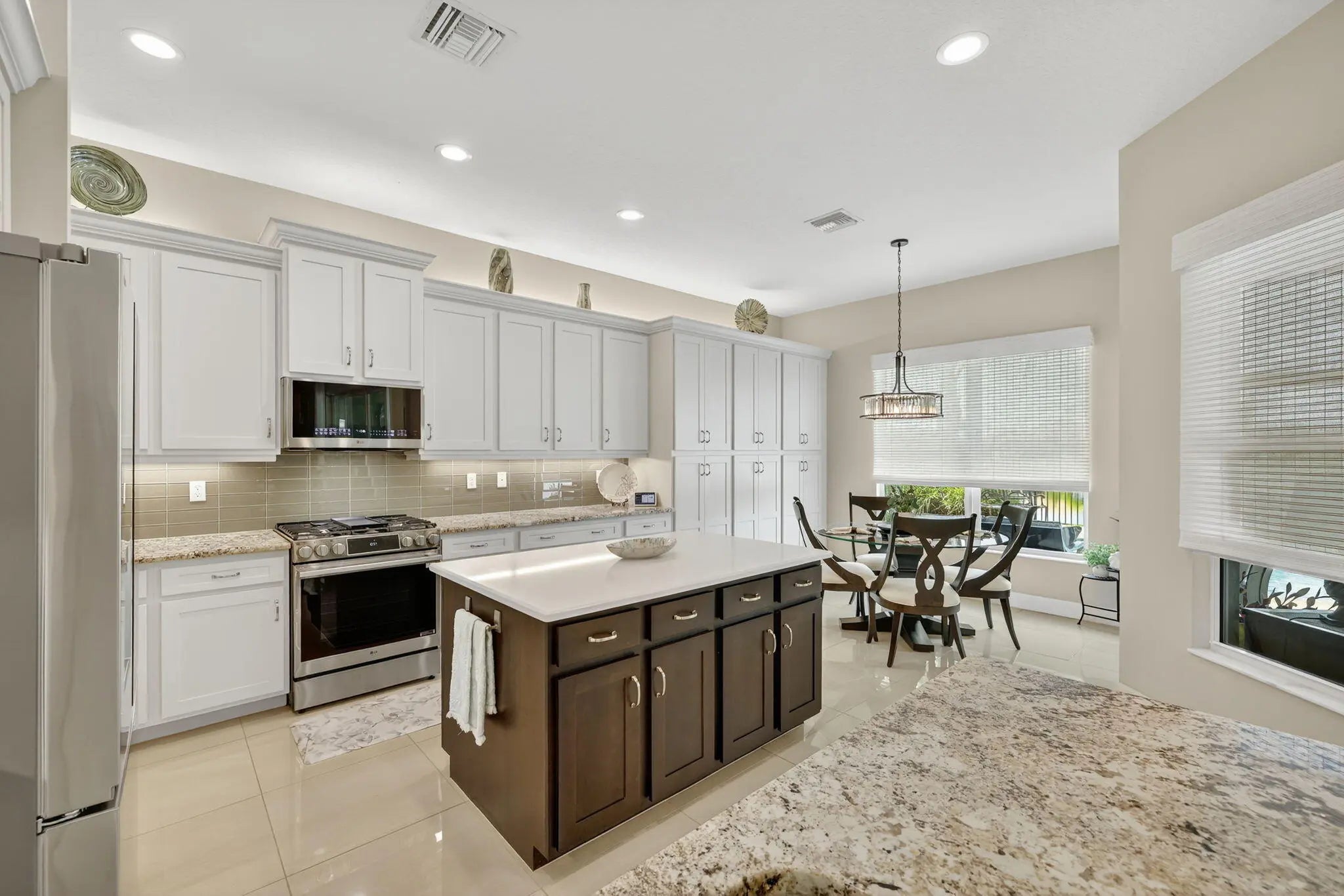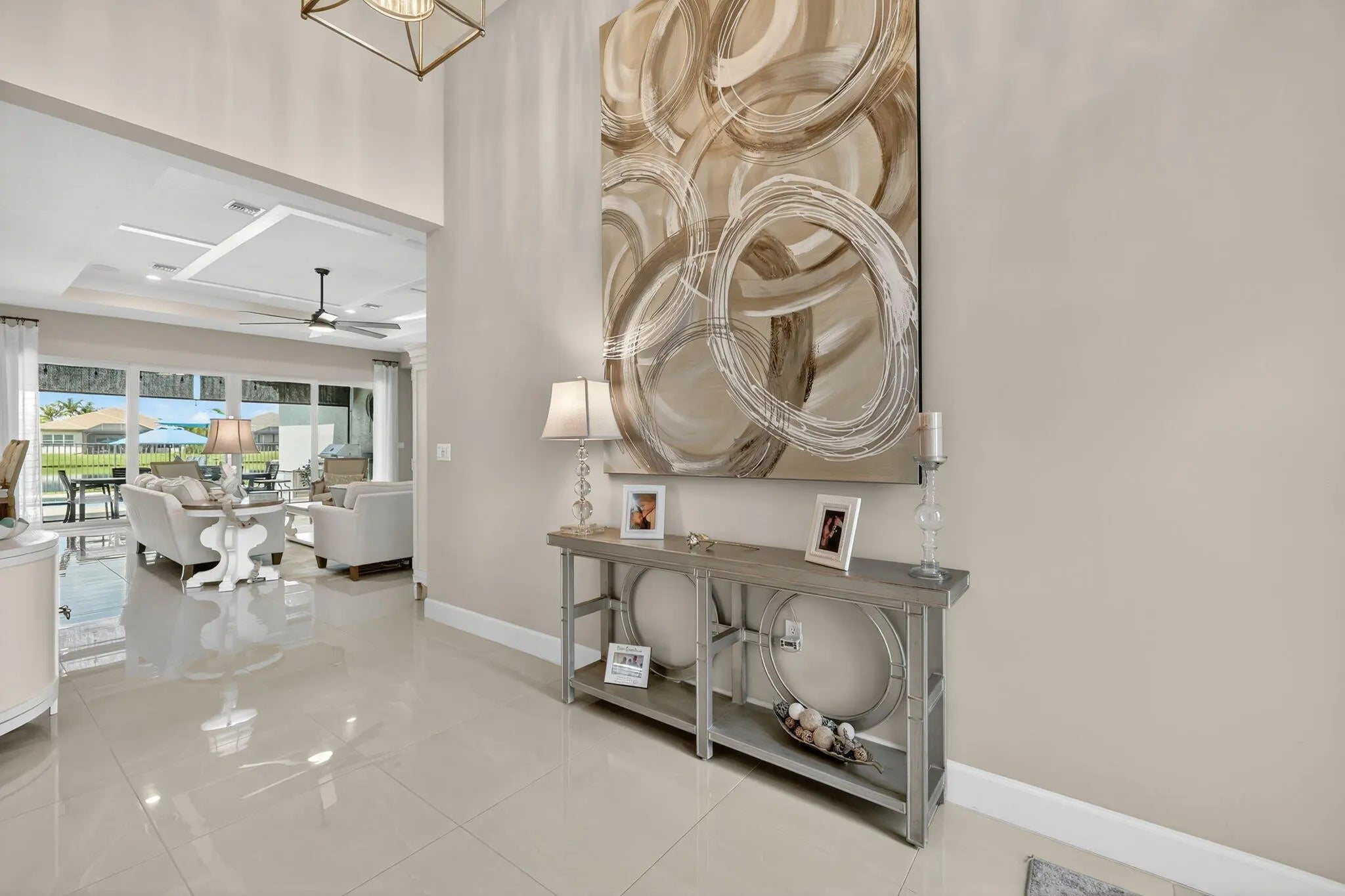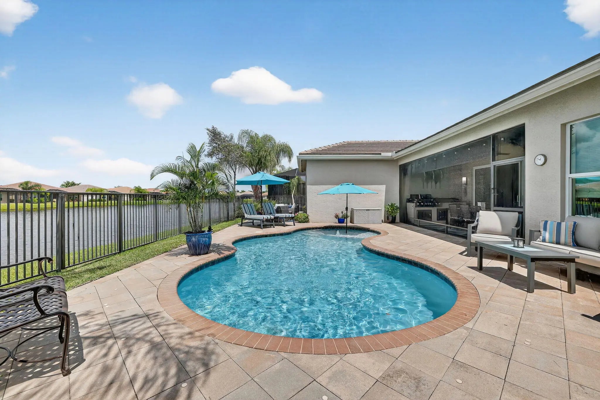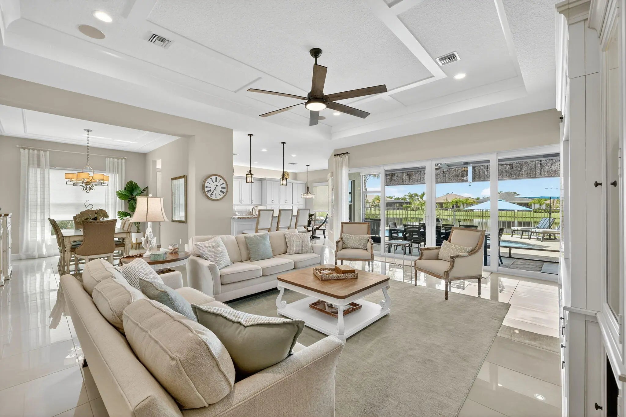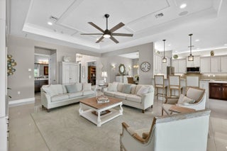 Experience luxury living at its finest in this lakefront Julia Model located in Valencia Cay at Riverland. A spectacular grand entrance welcomes you through custom glass double doors into an impressive foyer accented by a coffered ceiling and designer lighting. This elegant residence offers 3 bedrooms plus a den, 3.5 bathrooms, and a 3-car garage, all thoughtfully designed for comfort, style, and effortless entertaining. The Julia Model showcases spacious, open-concept living with high-end finishes throughout. An expansive great room featuring custom millwork and a coffered ceiling provides the perfect setting for both formal gatherings and relaxed everyday living. The gourmet kitchen is a chef's dream, complete with premium cabinetry, a cabinet pantry with pull-out shelving, upgraded LG Studio appliances, and a casual dining area. A large formal dining room is ideal for intimate dinner parties, highlighted by elegant wall sconces, and detailed ceiling millwork. The luxurious primary suite offers two custom walk-in closets and a spa-inspired bathroom with a spacious walk-in shower and dual vanities. Two additional bedrooms each feature en-suite bathroomsone with a walk-in shower and the other with a soaking tubproviding comfort and privacy for guests. A generously sized laundry room includes upper and lower cabinetry, granite countertops, a large sink, and an upgraded washer with a gas dryer. Step outside to your private outdoor oasis. The custom heated pool features deck jets and a sun shelf with seating, while the screened patio includes a summer kitchen and dining areaperfect for enjoying the ultimate Florida lifestyle. An additional open patio offers space for a seating area and firepit, ideal for taking in breathtaking sunset views over the lake. Designer details elevate this home even further, including high-end chandeliers, pendant lighting, wall sconces, premium window treatments, and custom woodwork throughout. This spectacular lakefront Julia Model truly exceeds expectations. Living in Valencia Cay means enjoying world-class amenities designed for relaxation, recreation, and social connection. Residents have access to a grand clubhouse with social spaces, event rooms, and lounges; resort-style pools; a state-of-the-art fitness center; and on-site dining at Cay Café and River Fresh Café. Dozens of social clubs cater to a wide range of interests, from travel and art to fitness and dance. Riverland also features an Arts & Culture Center offering creative workshops and classes, a wellness and spa center, indoor basketball, tennis courts, and over 50 pickleball courtsone of the largest pickleball facilities in the U.S. Miles of scenic walking trails wind through beautifully landscaped grounds. The nearby Riverland Town Center includes a Publix supermarket and a growing mix of retail and commercial spaces, all conveniently accessible by golf cart, car, bicycle, or on foot via private community greenways and the Paseo Greenway. This exceptional home and vibrant community deliver the perfect blend of luxury, comfort, and an active Florida lifestyle.