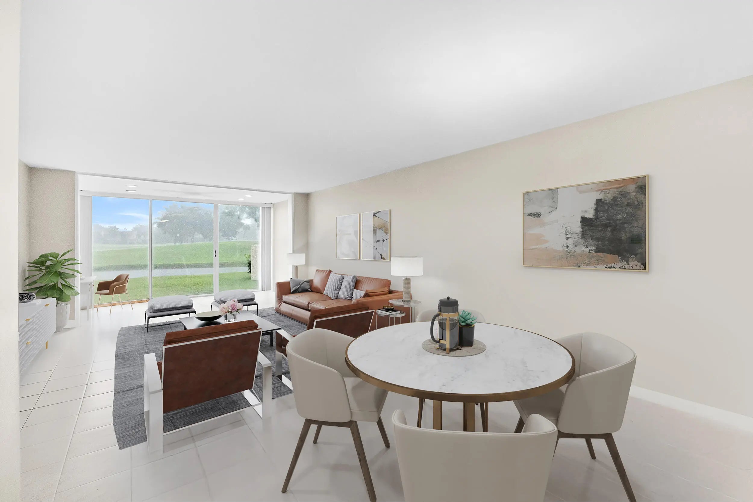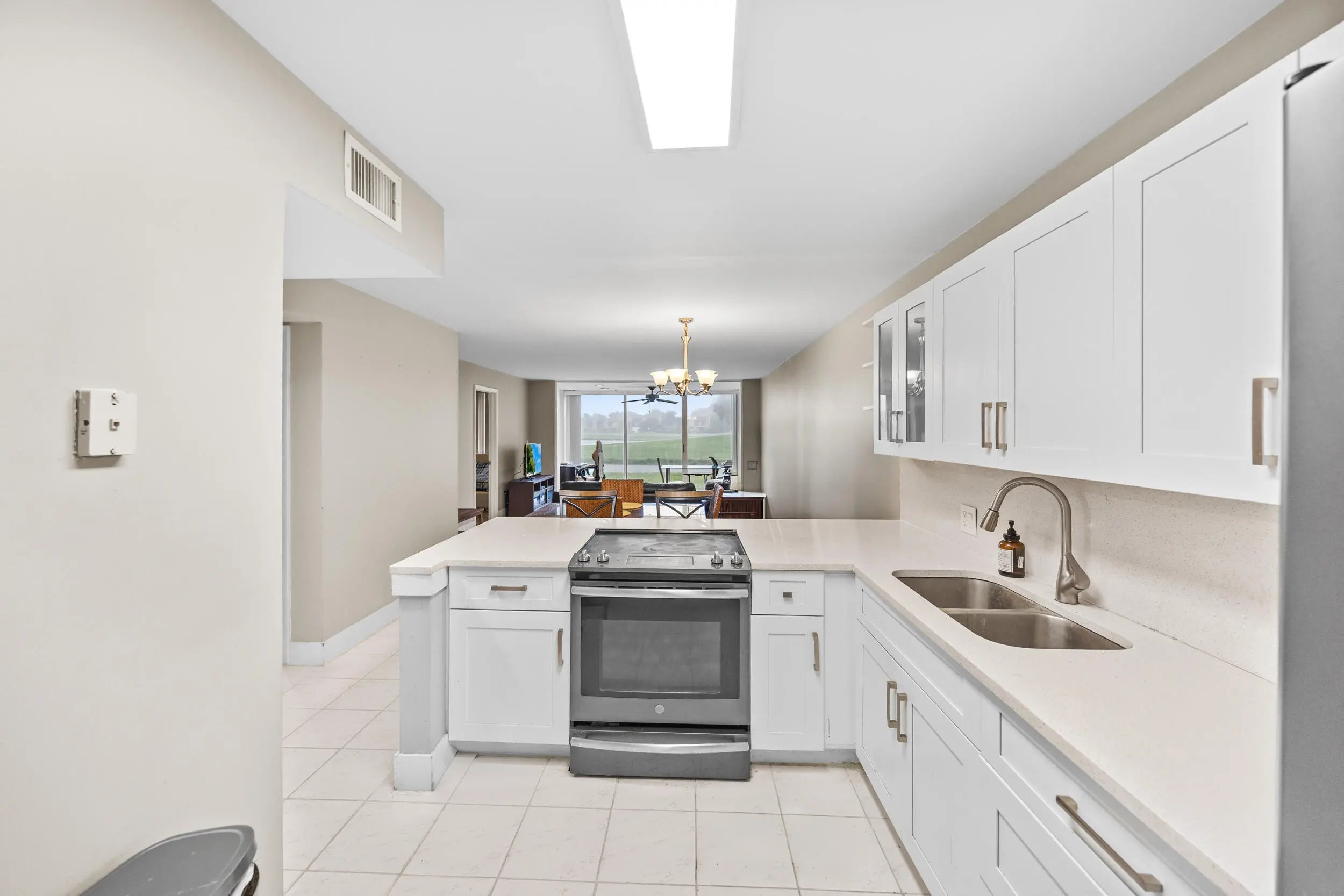 Wake up to tranquil lake and golf course views in this thoughtfully remodeled 2-bedroom, 2-bath condo, located in an all-ages community of The Fountains. From the updated kitchen to the refreshed bathroom, every inch has been given a modern touch while keeping comfort and simplicity at heart. Natural light fills the space, and the views give you that peaceful ''vacation every day'' feeling. Whether you're looking for a full-time home or a relaxing retreat, this one checks all the boxes.