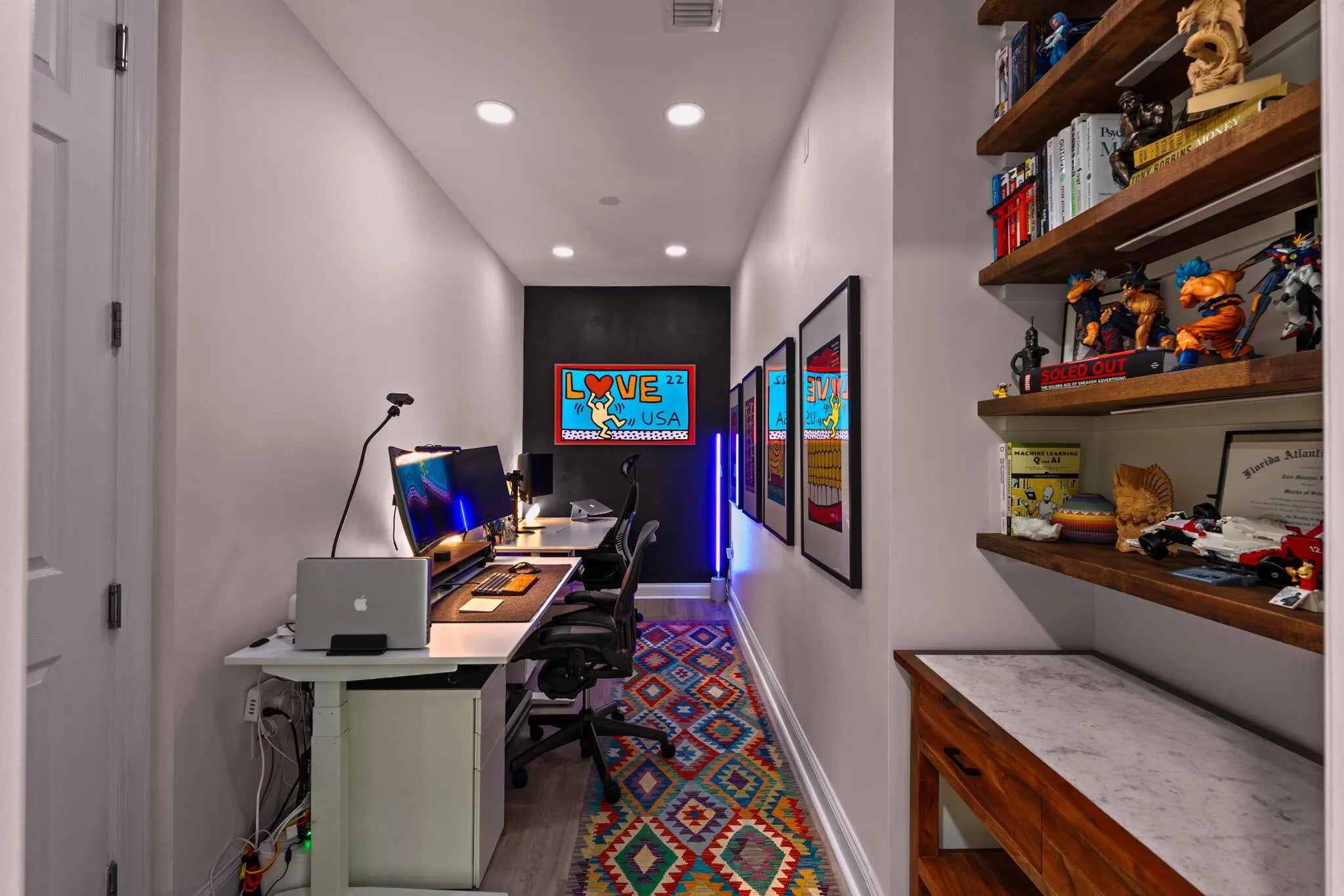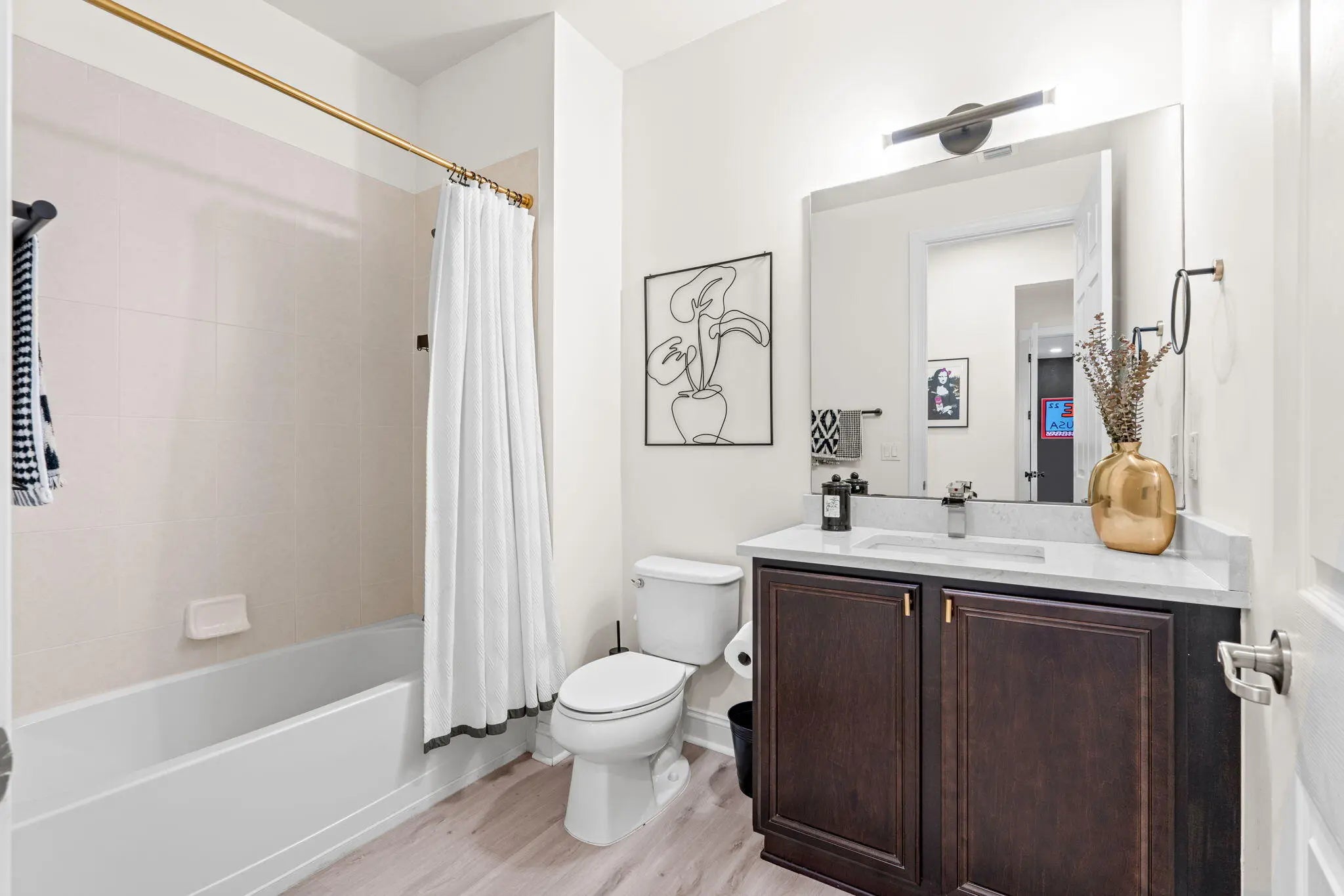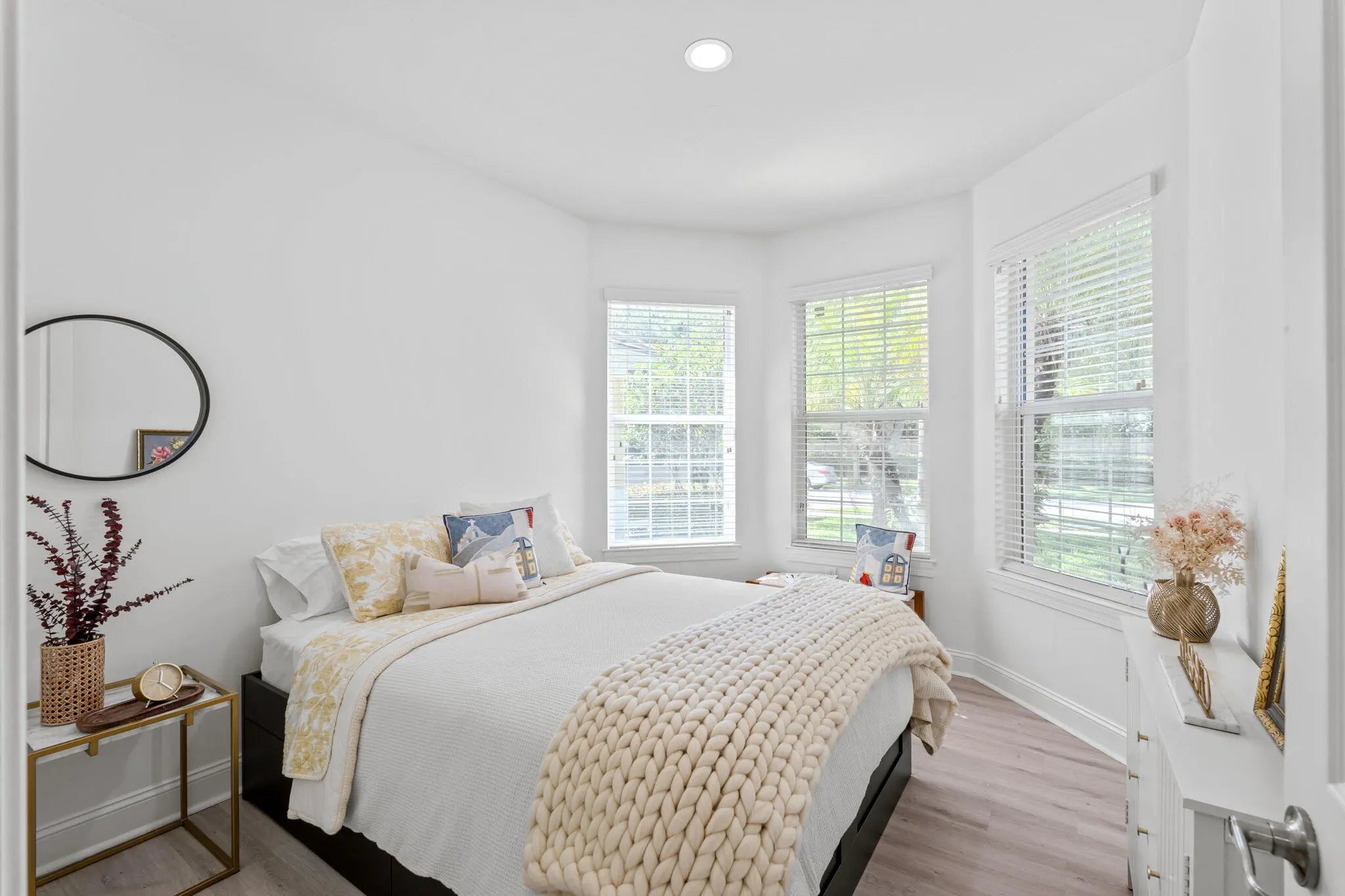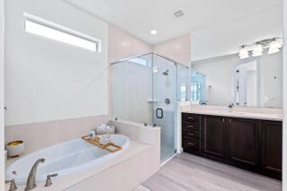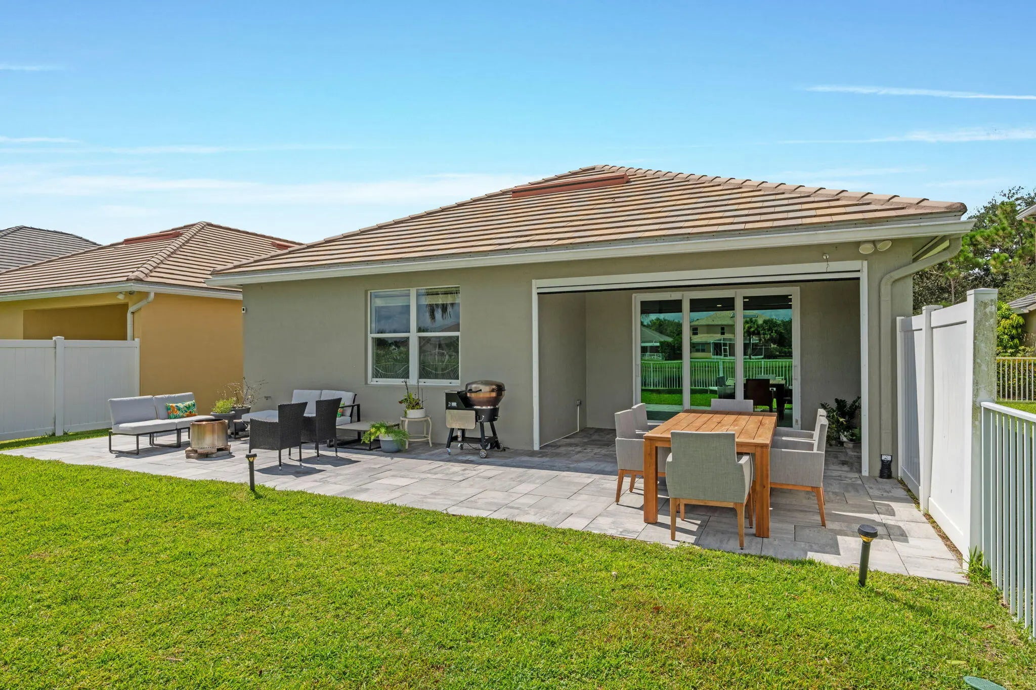 Crisp curb appeal welcomes you to this single-story home with 2-car garage on a quiet street in gated Oak Haven. Inside, light wood-look floors and recessed lighting carry through an open concept great room. The renovated kitchen features an XL waterfall island, sleek white quartz counters, dark shaker cabinetry with brass hardware, stainless appliances, and a built-in wet bar. A wall of sliders opens to an oversized, entertainer's patio and motorized covered lanai overlooking the lake—ideal for outdoor dining and play. Work from home is easy with a dedicated office nook lined with floating shelves. The spacious primary suite adds a spa bath with soaking tub, glass-enclosed shower, and double vanity storage. Additional bedrooms include a serene guest room with a stylish accent wall. Laundry, abundant closets, and modern fixtures complete the turnkey feel. This boutique neighborhood of single-family homes, gated entry, one-mile walking/jogging path with workout stations, two playgrounds, set between Wellington and Boynton Beach for quick shopping and dining experience.