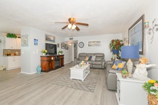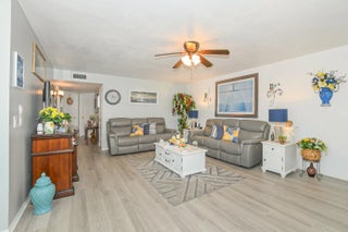 Own one of the best homes in the whole community. The largest of all the units, the Woodrose, which has been completely updated from floor to ceiling with impact windows, new impact glass enclosure for Lanai, tile, granite countertops, new cabinets, new flooring throughout, fresh paint, water filtration system, new vanities and new custom tile ensuite shower with glass door. Unit also has been upgraded to have a washer and dryer. Perfect location in the community with lovely garden view from Lanai. Quiet and beautifully maintained community which is in the heart of everything with no city taxes. Cable, internet, water, trash removal, home phone, sewer, roof replacement, exterior maintenance and exterior pest control all included! Never be bored again, enjoy community clubhouse, shuffleboard, pickleball, tennis, billiards, fitness room, library, games, classes and clubs. Bring your pickiest buyer and this unit will not disappoint.