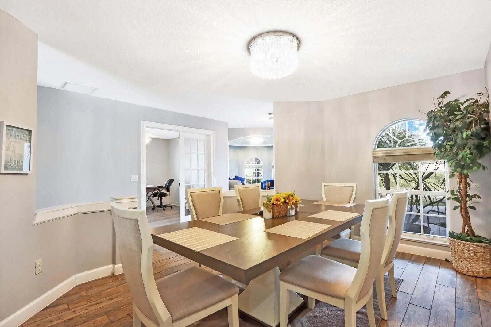 Lovely Custom built in 2005 home. Lots of natural light,kitchen features 20 ft ceilings with granite countertops and stainless steel appliances. Split living,master has tray ceiling,access to lovely pool,large master bath/walk-in closet. 2nice size bedrooms. Full cabana bath. An office with French doors. Formal living room/dining area. Upgraded flooring throughout home. New roof 2024,new pool pump. And new screen-in pool covering. This home is move in ready.