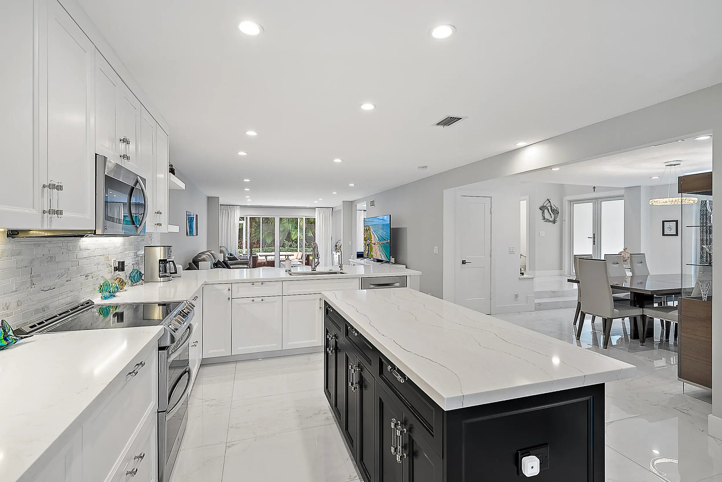 Located in the Intracoastal-front gated community of Oak Harbour this recently renovated home is close to area beaches and has access to rentable boat slips within the community. The interior boasts porcelain and wood floors, a Chef's kitchen with stainless appliances, custom cabinetry and quartzite tops. The large master bedroom has volume ceilings and three closets. A large loft overlooks the foyer and can be converted to a fourth bedroom. Oak Harbour has 24/7 security, a club house directly on the Intracoastal with an exercise room, billiard room and full kitchen, tennis courts and two pools. Its prime location is close to area finest restaurants and the Gardens Mall.