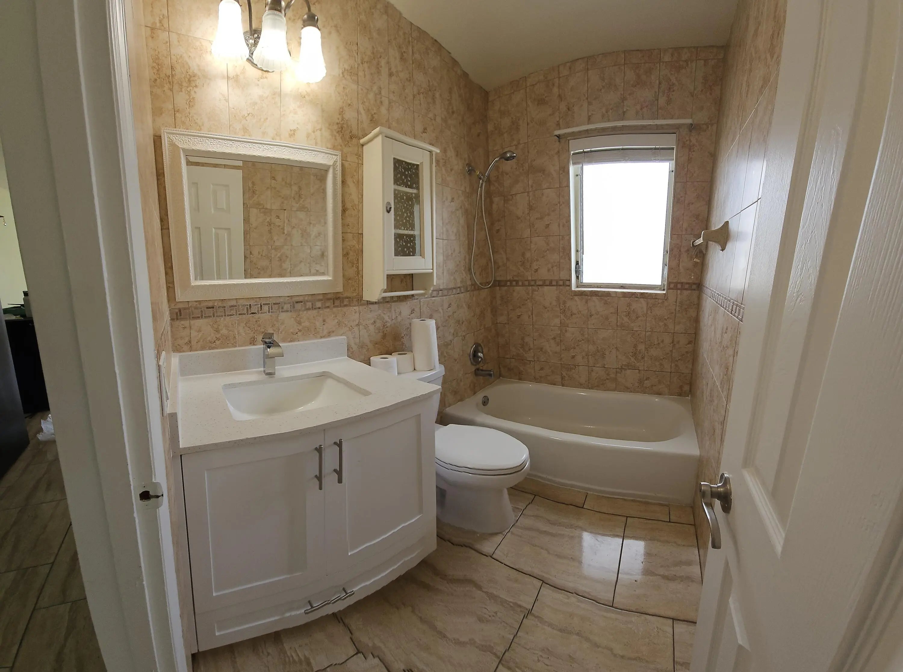 Bright Corner Unit in Golden Towers - 55+ Community. This charming 1-bedroom, 1-bathroom condo is ideally situated on a desirable corner lot within Miami Golden Towers, a tranquil 55+ community. Residents enjoy effortless access to a nearby public park and the ease of low maintenance living in a prime location. The unit features a beautifully renovated kitchen and bathroom, complete with elegant cabinetry that adds both style and functionality.