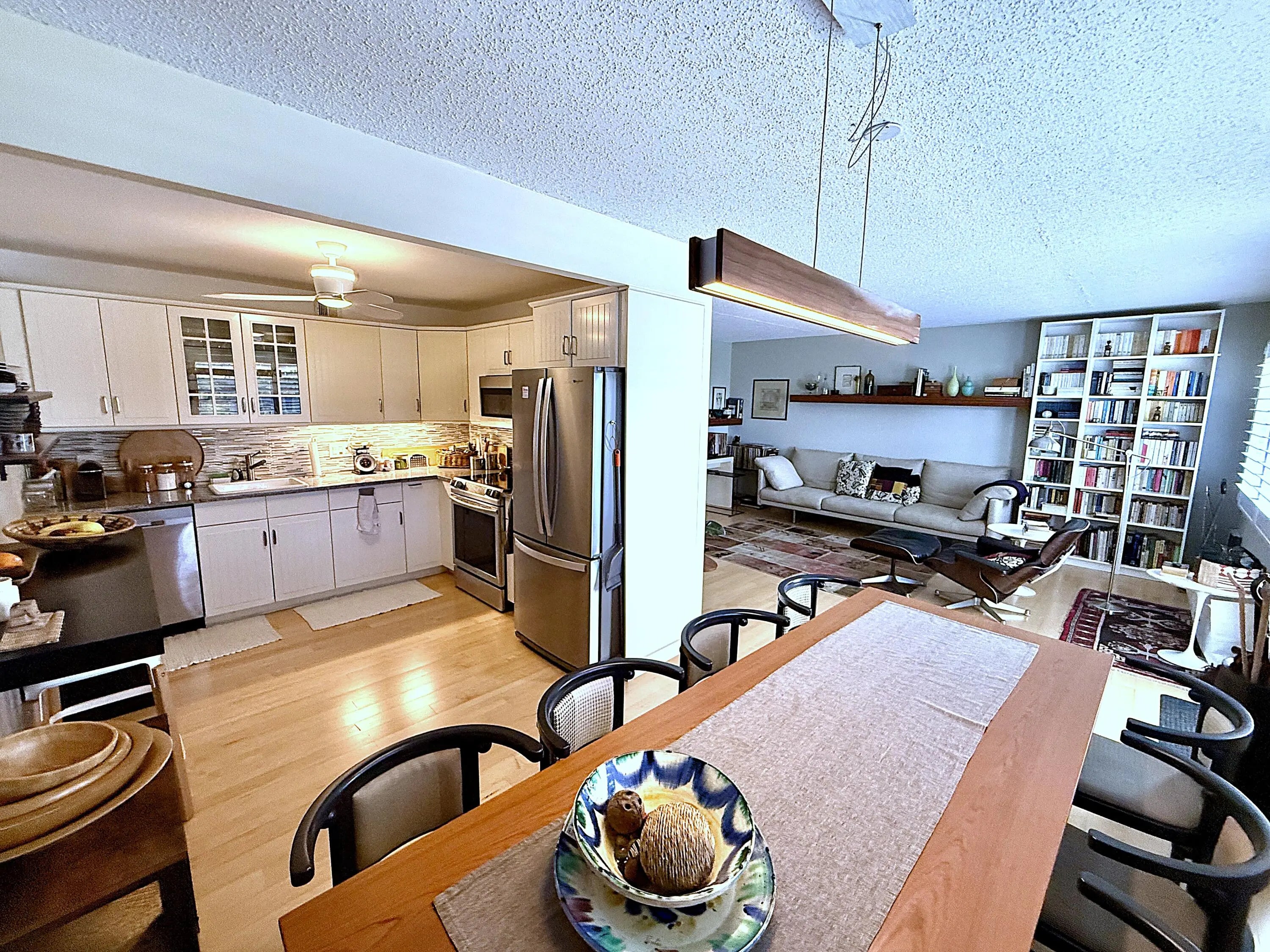 Outstandiing Garden View from Large Enclosed Patio w/ Impact Hurricane Windows & Impact Front Door. Enjoy this Lovely, Spacious 2 BR 2 Baths 1000 SF unit. Renovated kitchen with stainless steel appliances. Replaced AC & hot water heater 2022. Gorgeous hard wood floors throughout & plantation shutters in LR & DR. Building well maintained & roof replace in 2022. Walking distance to Oakridge community pool. Clubhouse has indoor+outdoor pools, cafe, 1600 seat theater, clubs, tennis, billiards, pickleball, volleyball, ping pong, bocce, shuffleboard, fitness center, hiking+bike trails, putting green. Close to beaches, entertainment, dining, shopping. 55+ age.