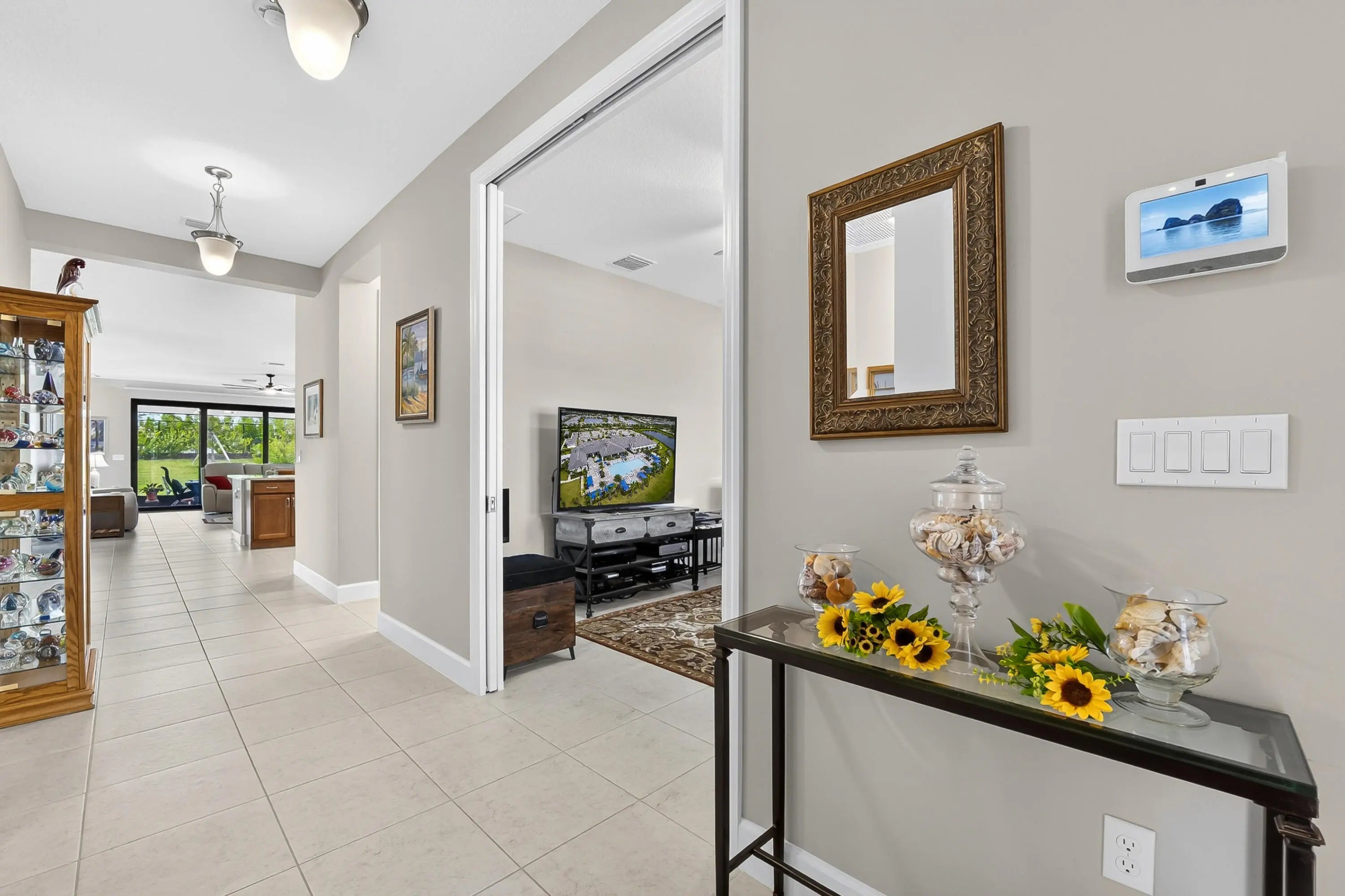 Built in 2024, this Monacello model offers 2 bedrooms, 2.5 bathrooms, den and a 2-car garage in the highly sought-after 55+ Riverland community. This home showcases numerous builder upgrades including tile flooring throughout, pocket doors, 42''kitchen cabinets, upgraded appliances with a gas stove, tankless water heater, and upgraded showers in both the primary and guest baths. The wider paver driveway and walkway add to the home's curb appeal. Additional owner enhancements include custom drapes in the living room, plantation shutters on all windows, and ceiling fans in five rooms. A true turnkey opportunity. Some aspects of the home are ADA friendly. Enjoy all the ameneties Riverland has to offer; Fitness Ctr., Pickelball, Bocce Ball, Tennis, Bball, Arts & Culture Ctr, Dog Park, and mor