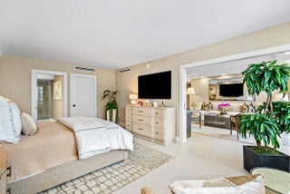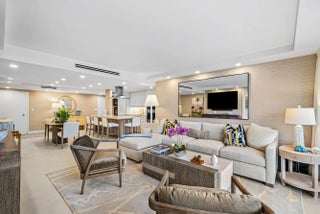 Fully Furnished Turnkey Designer unit with coveted indoor parking spot. Brand new South facing 2 bedroom/2 bath with gorgeous pool and Intracoastal views. This unit was outfitted by a professional hotel designer to deliver a 5-diamond living experience. Arte wall coverings and luxury furnishings throughout provide a luxurious, warm environment. A private balcony offers amazing sunset and boating views. Interior finishes including large format porcelain tile floors, a center island kitchen with quartzite waterfall counter tops and custom cabinets, a built in custom bar with beverage/wine refrigerator, high end appliances including a washer/dryer with additional storage and impact glass doors and windows throughout. This unit comes with an assigned DEEDED GARAGE PARKING SPACE and one assigned outdoor parking space. The Carlyle House has undergone a complete structural renovation and beautification project including a new lobby, fitness center, infinity edge pool & hot tub overlooking the Intracoastal, new outdoor furniture, BBQ area and a new club/game room. The exterior landscaping and parking have been redesigned adding to the overall aesthetics. The Carlyle House is located across from the Four Seasons Hotel and just minutes from Publix, PBIA, Worth Avenue and area restaurants. ALL PAST SPECIAL ASSESSMENTS HAVE BEEN PAID