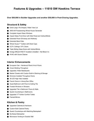 An AMAZING price for this highly upgraded home! Do not miss this opportunity! Impeccable 2 Bedroom + Den, 2 Bath lakefront home in the highly desirable 55+ community of Valencia Cay at Riverland. With an extended lanai and oversized, premium water-view lot, this residence combines elegant modern design, thoughtful upgrades & access to a vibrant, resort-style lifestyle. Step inside to discover REAL Oak-hardwood plank flooring & detailed crown molding. The versatile den with French doors is ideal for a home office, library, or guest retreat. The chef-inspired kitchen showcases upgraded cabinetry & hardware, quartz countertops with matching backsplash. A vented microwave & a spacious pantry with custom shelving. Many more upgrades including a full house generator The bathrooms exude luxury, featuring quartz countertops, upgraded tile, floor-to-ceiling finishes, frosted shower windows, and comfort-height Kohler toilets for a spa-like experience. Peace of mind comes standard with complete impact glass windows and doors, complemented by a powerful 2400-watt whole-house generator. Step outside to enjoy serene lake views from the extended screened patioperfect for entertainingor take advantage of the extended driveway offering extra space and curb appeal. Additional enhancements include custom epoxy garage flooring, a large laundry room with new cabinetry, whole-house gutters, and convenient attic storage. Just a short stroll away, the state-of-the-art Valencia Cay Clubhouse offers endless opportunities for recreation and connectionfeaturing an Olympic-size pool, an on-site restaurant, fitness center, tennis and pickleball courts, and premium weekly entertainment. Whether you're soaking in the tranquil lakefront setting or embracing the active Riverland lifestyle, this home offers an exceptional blend of luxury, comfort, and community.