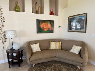 Price Reduced to Sell! Beautifully updated 3-bedroom, 2-bath split-bedroom home with 2 car garage, featuring an open floor plan with high vaulted ceilings. Located in a desirable small, quiet, gated community. Home offers full hurricane protection with impact glass windows and doors. The kitchen includes a large island, farmhouse sink, marble countertops, and stainless steel appliances, including a gas stove! Home also has a gas water heater. Continuous Travertine flooring extends throughout the home. Enjoy outdoor living with a screened-in patio and fenced backyard—perfect for relaxing, entertaining, or playtime with children or pets.