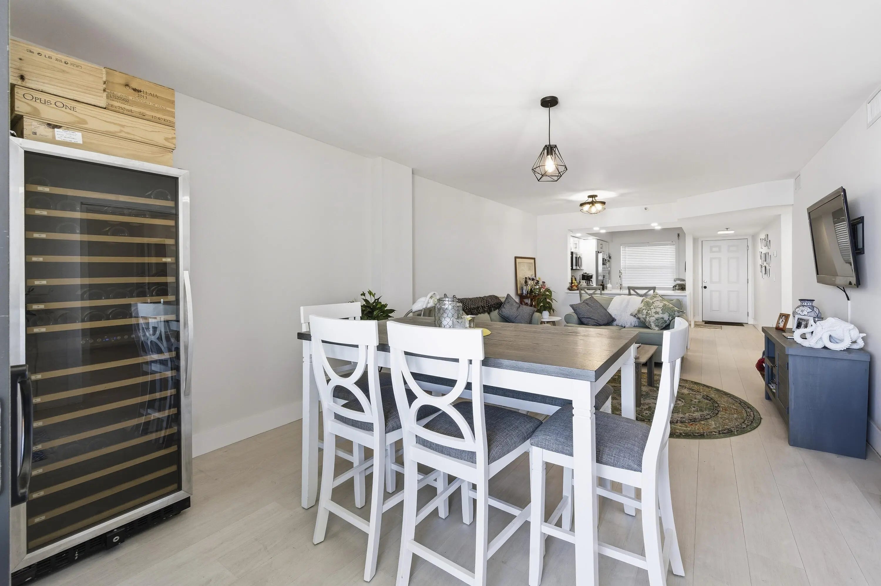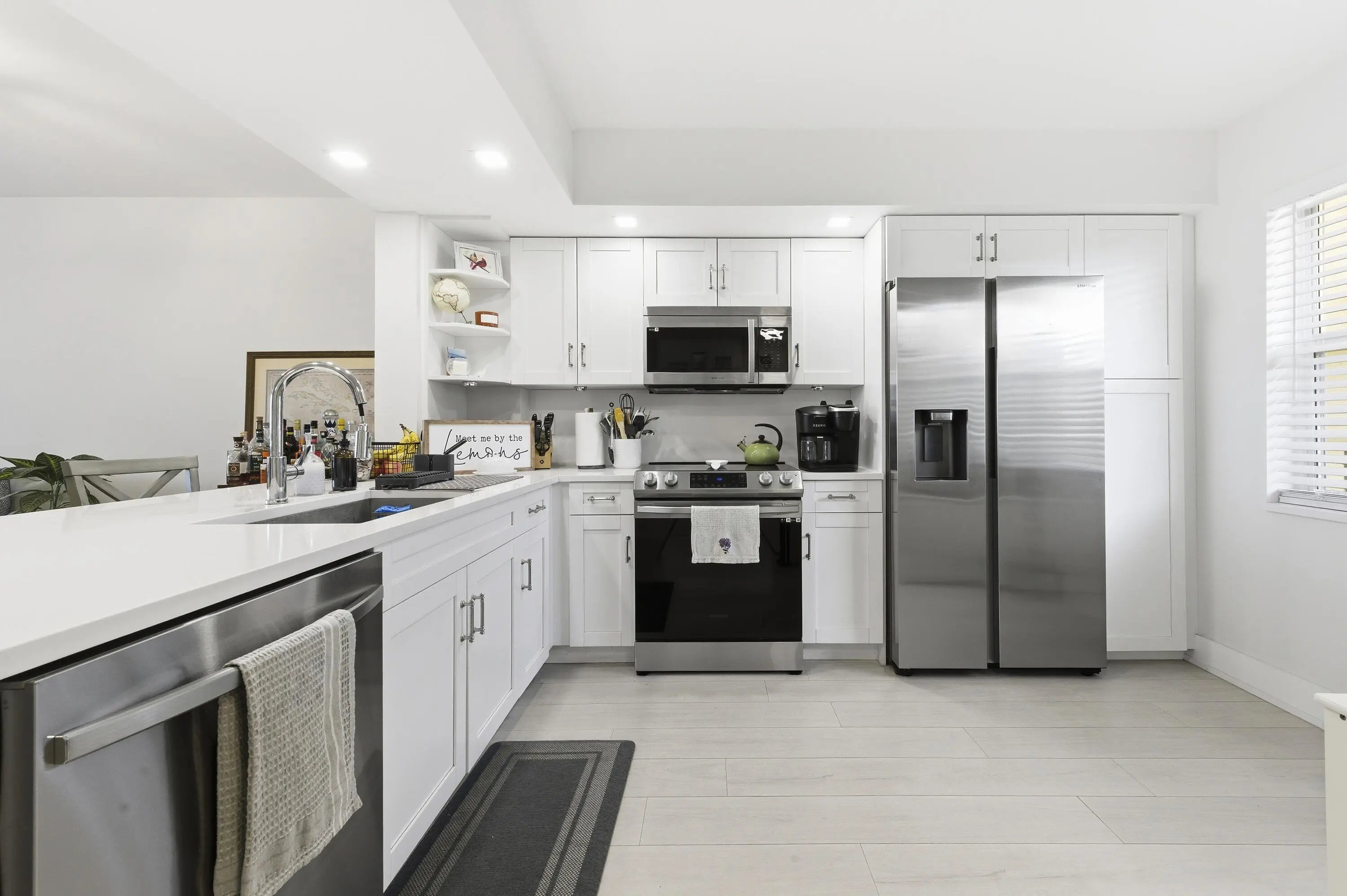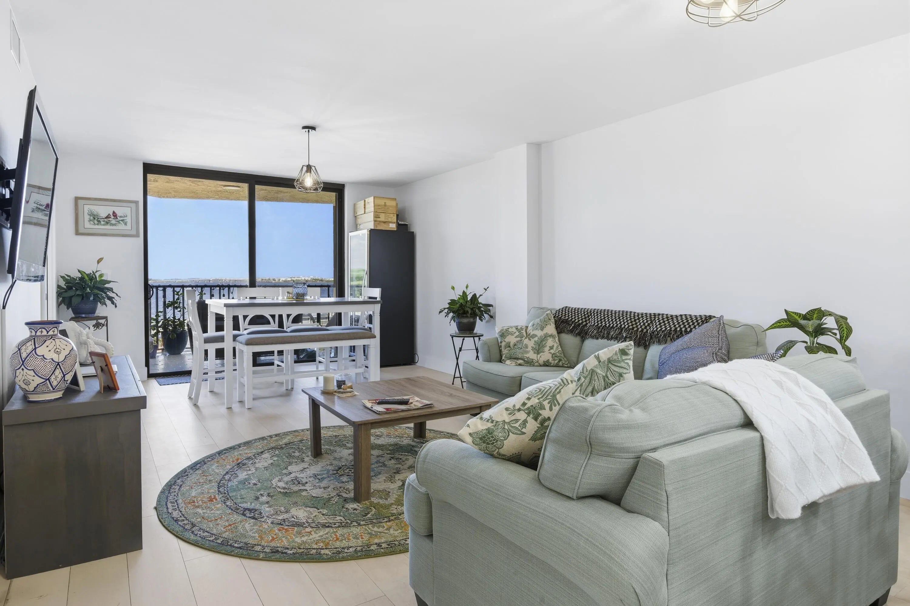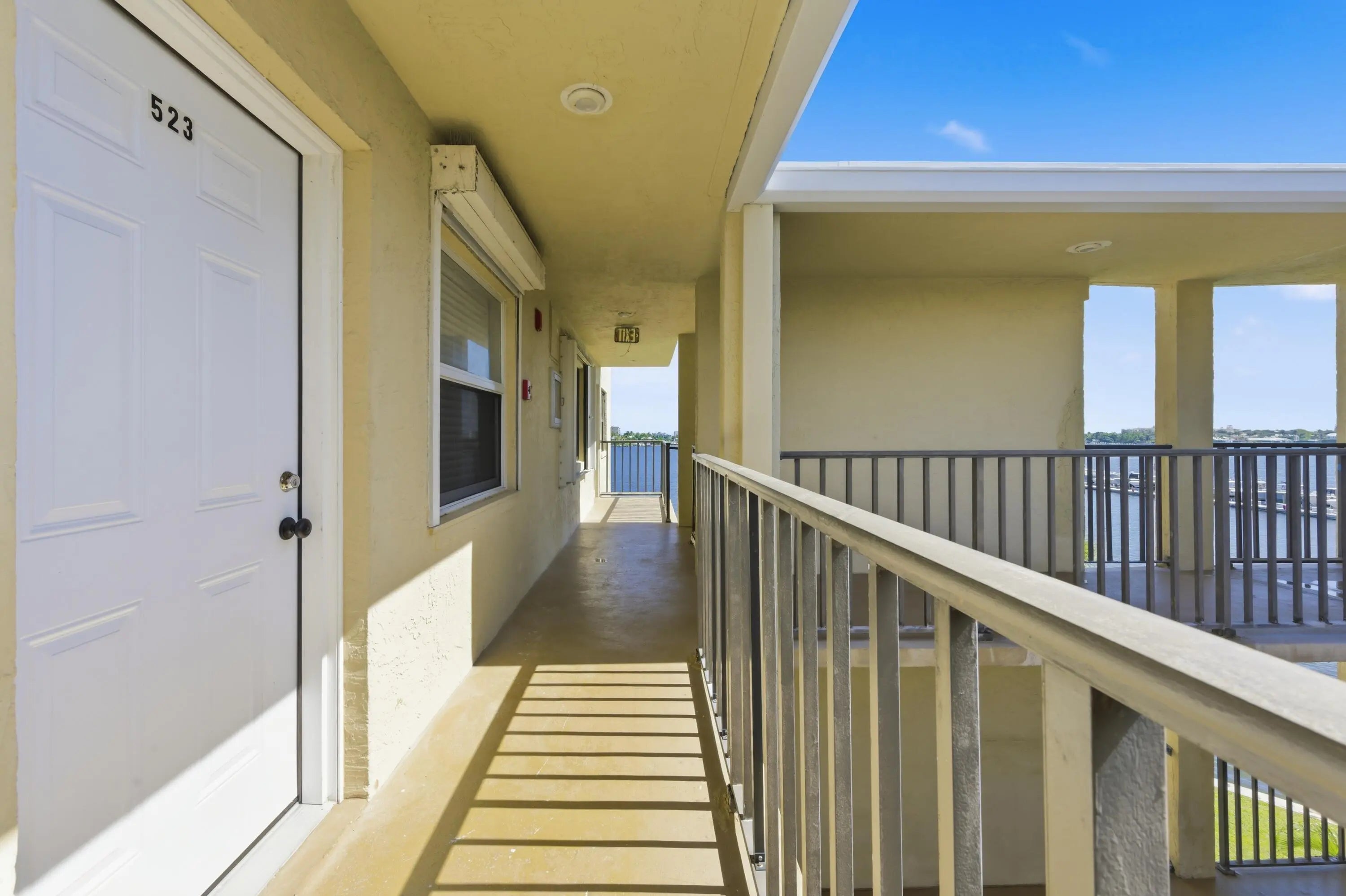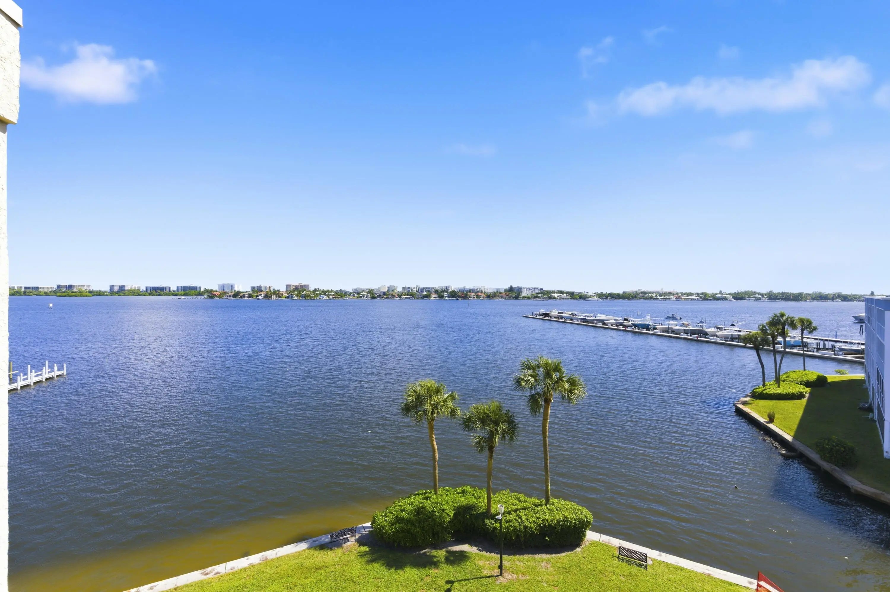 Experience elevated coastal living in this fully renovated 2023 penthouse! One of the few residences in Hidden Harbour offering unobstructed northeast panoramic views of the Intracoastal and Palm Beach Island from every room. This modern, open-concept home showcases a designer kitchen with crisp white shaker cabinetry, quartz countertops, and stainless-steel appliances. Upgraded interior doors, including elegant pocket doors, add a touch of sophistication throughout. The serene primary suite offers direct balcony access, a spacious walk-in closet, and a beautifully appointed en-suite bath. Additional highlights include new impact-rated windows and doors, in-unit laundry, and a 2021 central A/C system. Step onto the covered balcony to enjoy the coastal breeze and breathtaking sunrises!