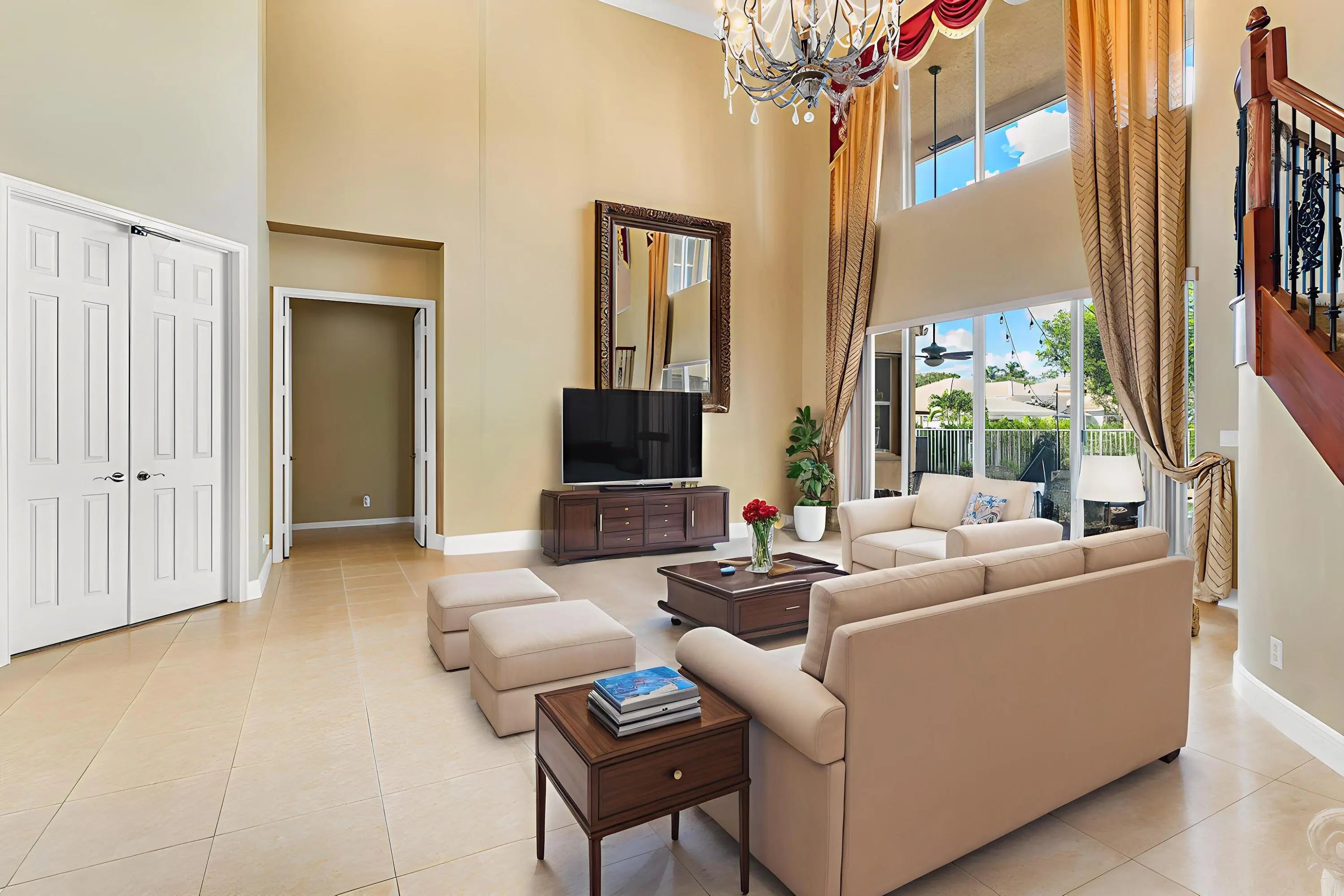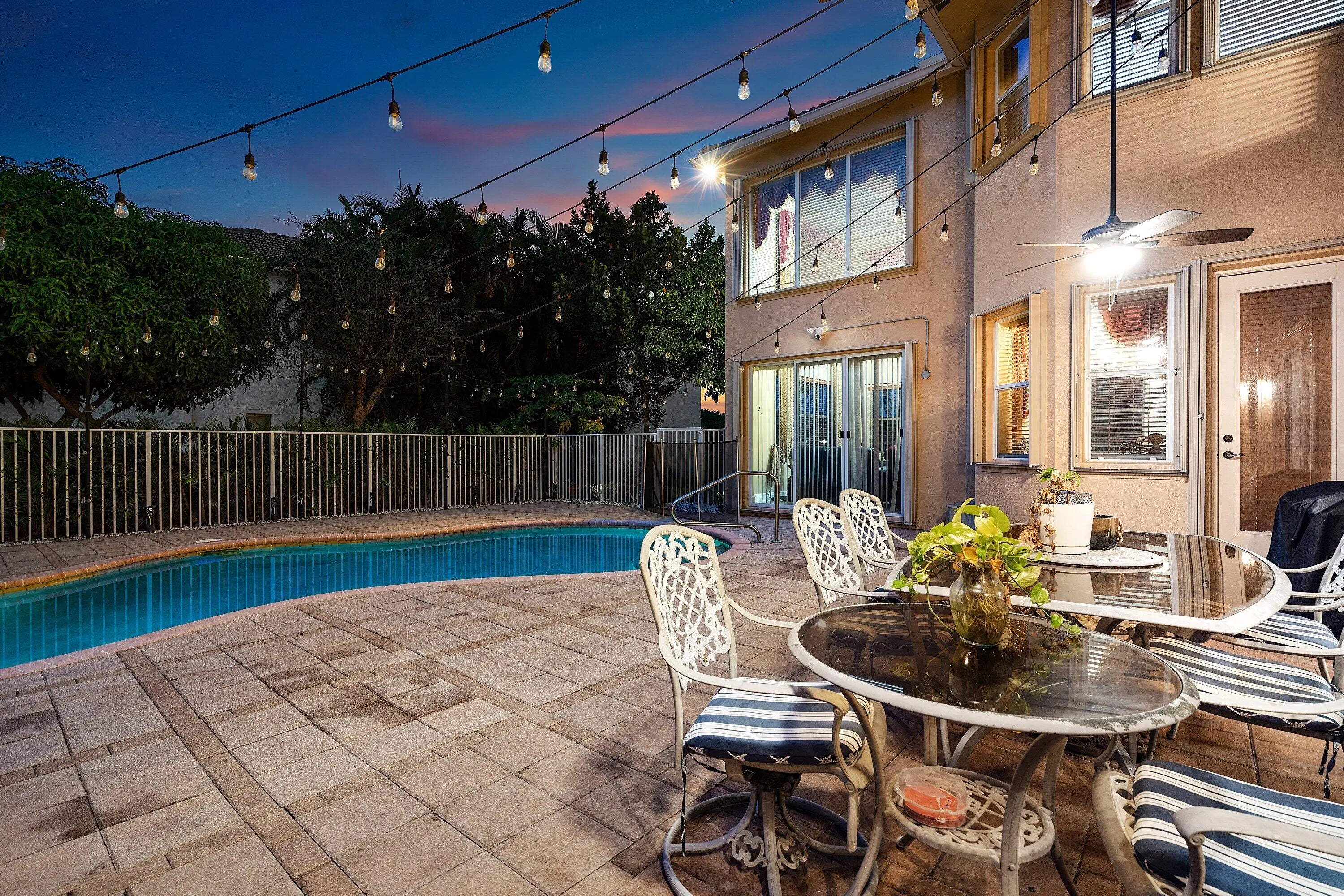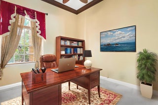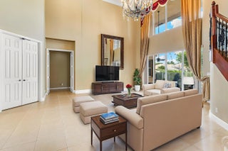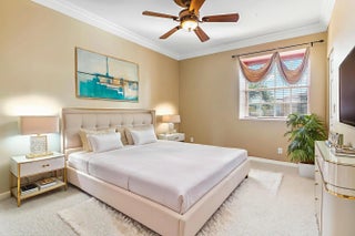 Welcome Home! This immaculately maintained 5-bedroom, 4-bathroom pool home with a 3-car garage is what you've been looking for. Enjoy soaring high ceilings, upgraded crown molding, partial water views, and a spacious 3-way split floor plan. The primary suite, located on the first floor, features a cozy sitting area, his-and-hers walk-in closets, and a luxurious en-suite with dual vanities, a soaking tub, and a separate walk-in shower. An additional full bedroom and bathroom are also conveniently located on the main level as well as a den that could be a 6th bedroom. Upstairs, you'll find a loft, plus 3 additional bedrooms and 2 additional full bathrooms. The kitchen offers newer stainless appliances and beautiful dark granite countertops. Outside, the oversized corner lot and circular driveway provide ample space and great curb appeal. Located in a manned gated community of Isobella Estates featuring a brand-new gym, playground, rentable clubhouse, resort-style pool, and courts for pickleball, basketball, and tennis, there's something for everyone to enjoy! Lawn Care included in the low monthly HOA. Zoned for great schools. Near shopping, dining, and the turnpike. The home is equipped with full accordion shutters Ring, Feit, and Blink security systems, A/C systems are - 2025 and 2018, new water heater, new garage door, new Maytag washer and dryer.