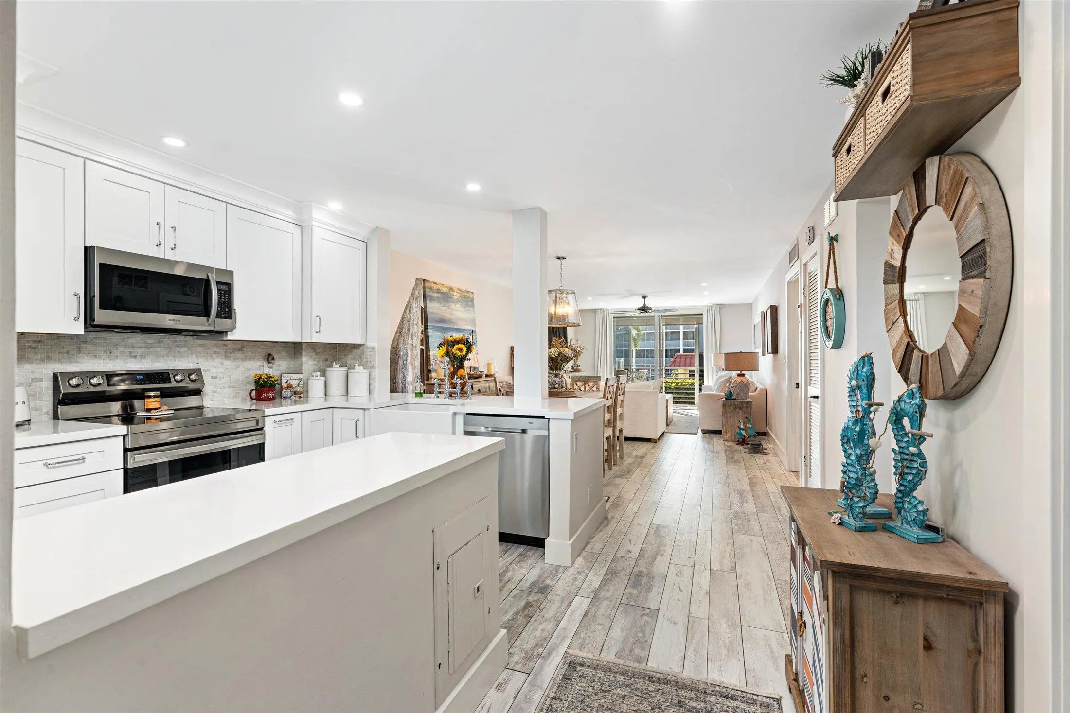 Stunning and tastefully renovated 3BR/2BA condo in North Palm Beach-the only 3-bedroom residence in the building! Enjoy beautiful WATERFRONT views and gorgeous beaches nearby. This fully furnished, move-in-ready home features waterproof high-end vinyl flooring, Samsung stainless steel appliances with Bespoke top of the line refrigerator, quartz countertops, custom white KraftMaid cabinets, all new electric service and LED lighting in ceilings, new hot water heater & filtration systems. This condo offers the perfect blend of luxury & convenience, a Must-See, one-of-a-kind unit! This gorgeous coastal home delivers style, comfort, and effortless living. Boat slips available to rent. Furnishings are a perfect fit & are offered separately.