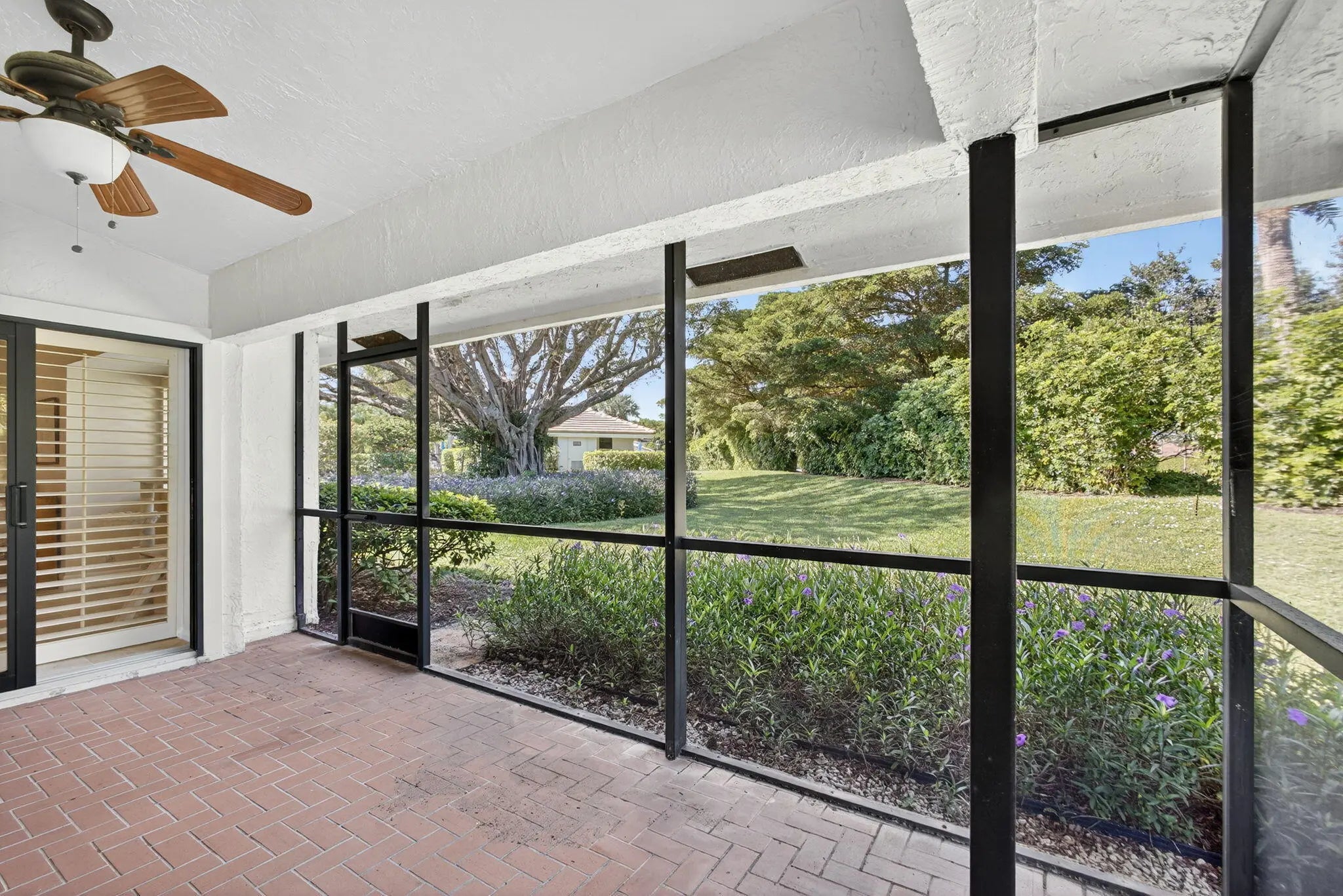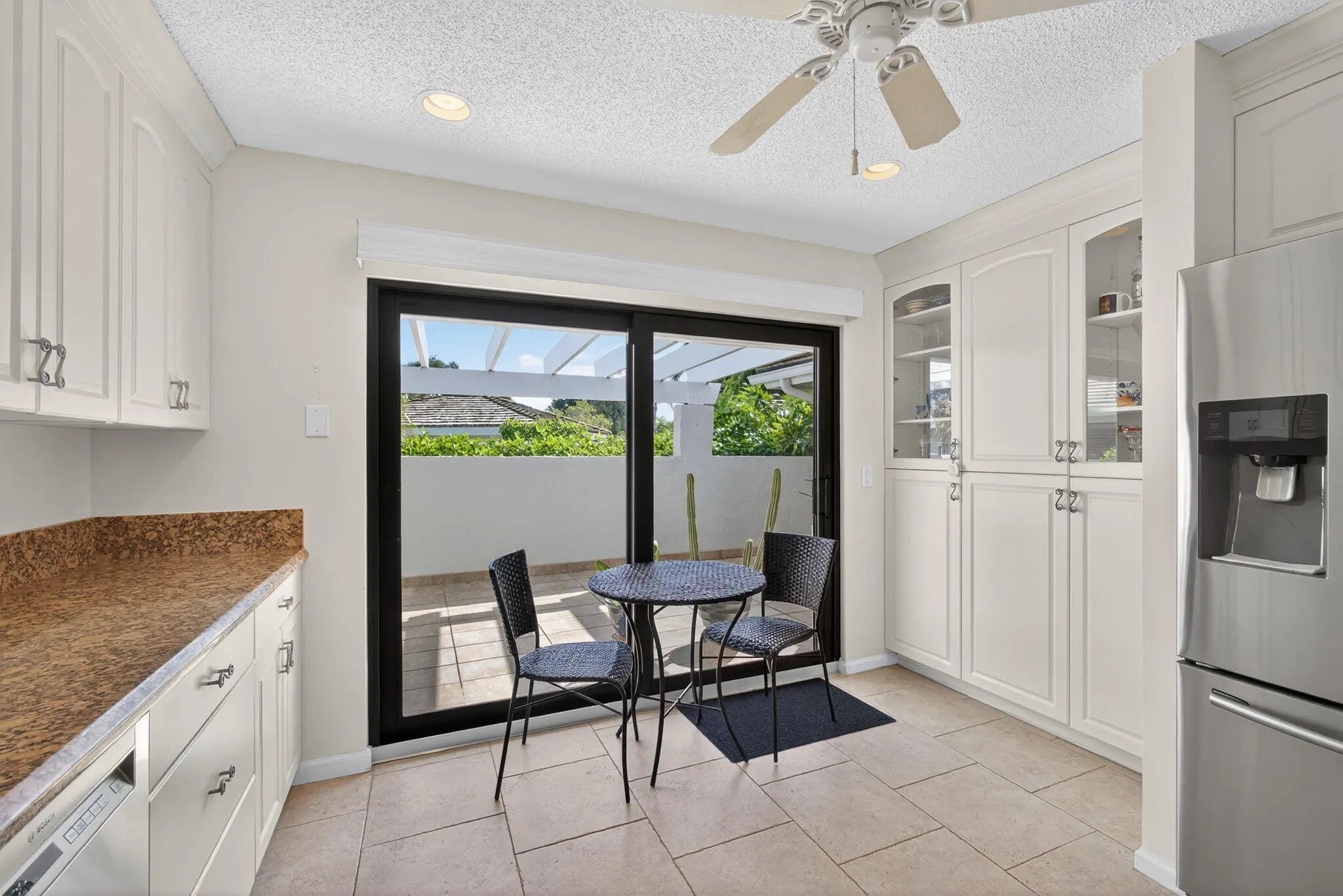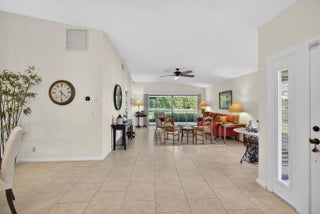 Enjoy peaceful living in this charming two-bedroom, two-bath villa located in the highly desirable gated community of Jonathan's Landing. This lovely home offers the perfect mix of comfort, style, and convenience in a quiet, friendly setting. The split floor plan provides privacy and an easy flow between the spacious living room, dining area, and sunny kitchen. The kitchen features sliding glass doors that open to a private patio, perfect for barbecuing or relaxing outdoors. A screened porch off the living room offers another great spot to unwind and enjoy the breeze. Recent updates include a new HVAC (2018), front door replacement (2018), impact doors and windows, a new roof (2015), and a hot water heater (2017) — see more. - giving you peace of mind for years to come. This home also includes two parking spaces (one a full-size covered carport) and a golf cart garage. You'll love being close to the community pool and just a short walk to the dog park, making it easy to enjoy everything this wonderful neighborhood has to offer.