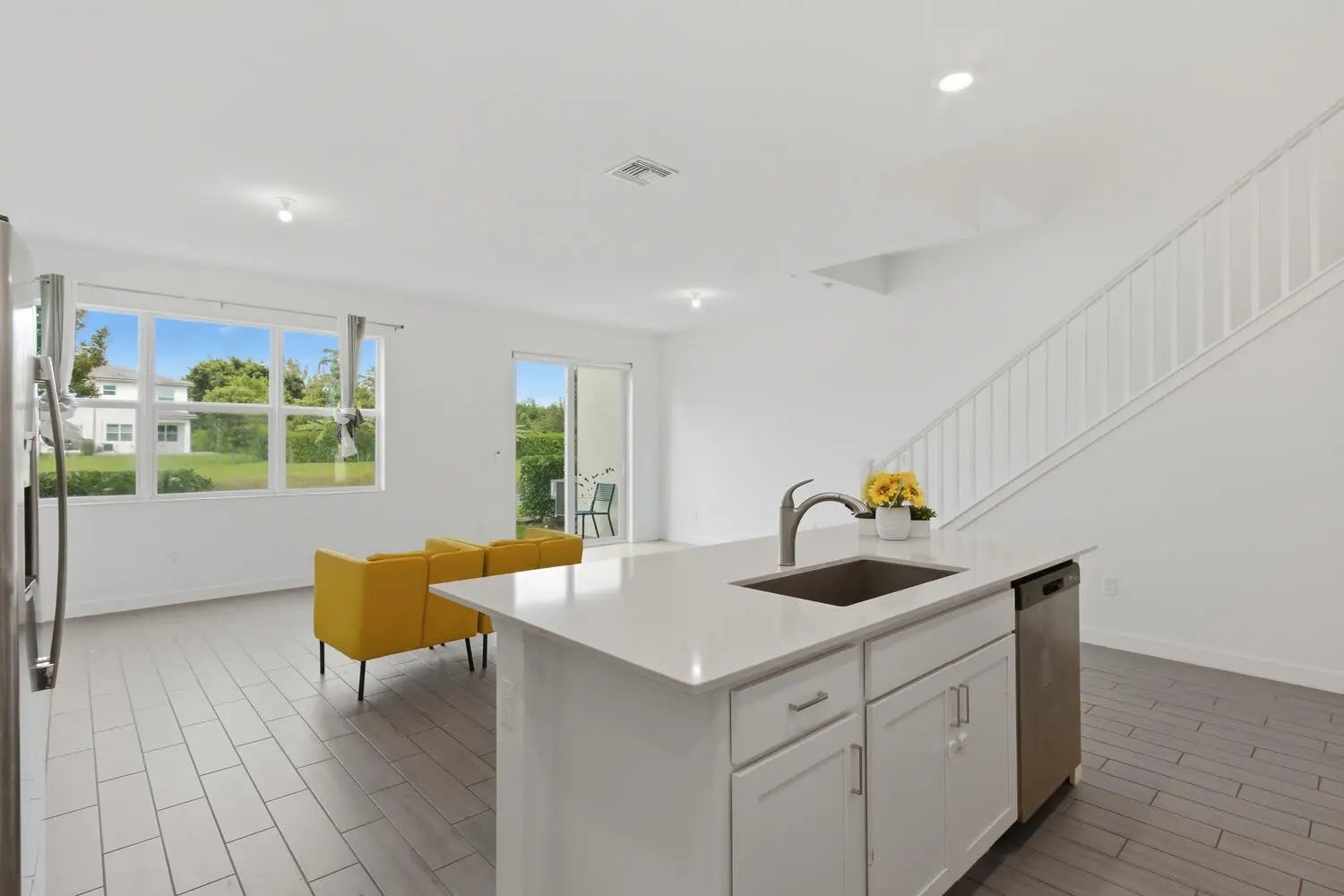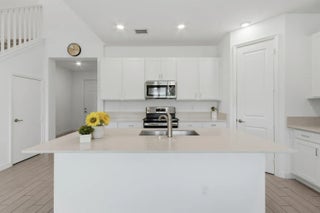 Welcome to this stunning 3 bed 2.5 bath townhome built in 2021 combines modern design with low maintenance living .Home is equipped with impact windows and doors .This open concept main floor with a bright spacious living area contemporary kitchen with stainless steel appliances and a spacious dining area perfect for entertaining with gorgeous lake views Upstairs the primary suite offers a walk in closet and private ensuite .Enjoy convenience of an attached garage upper level laundry and a great location close to shopping dining