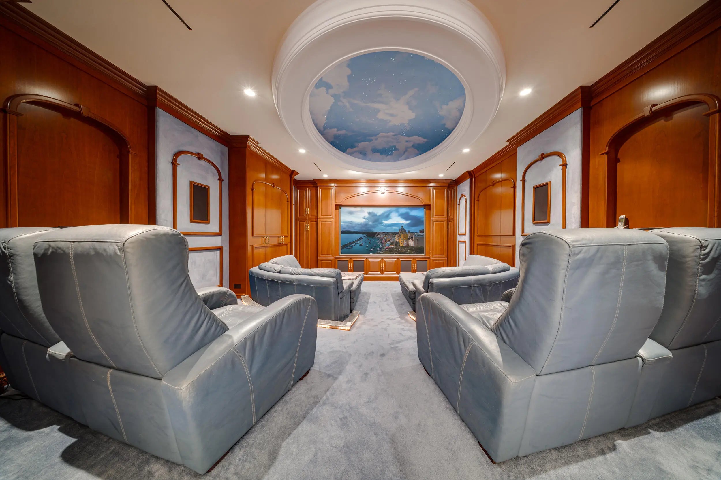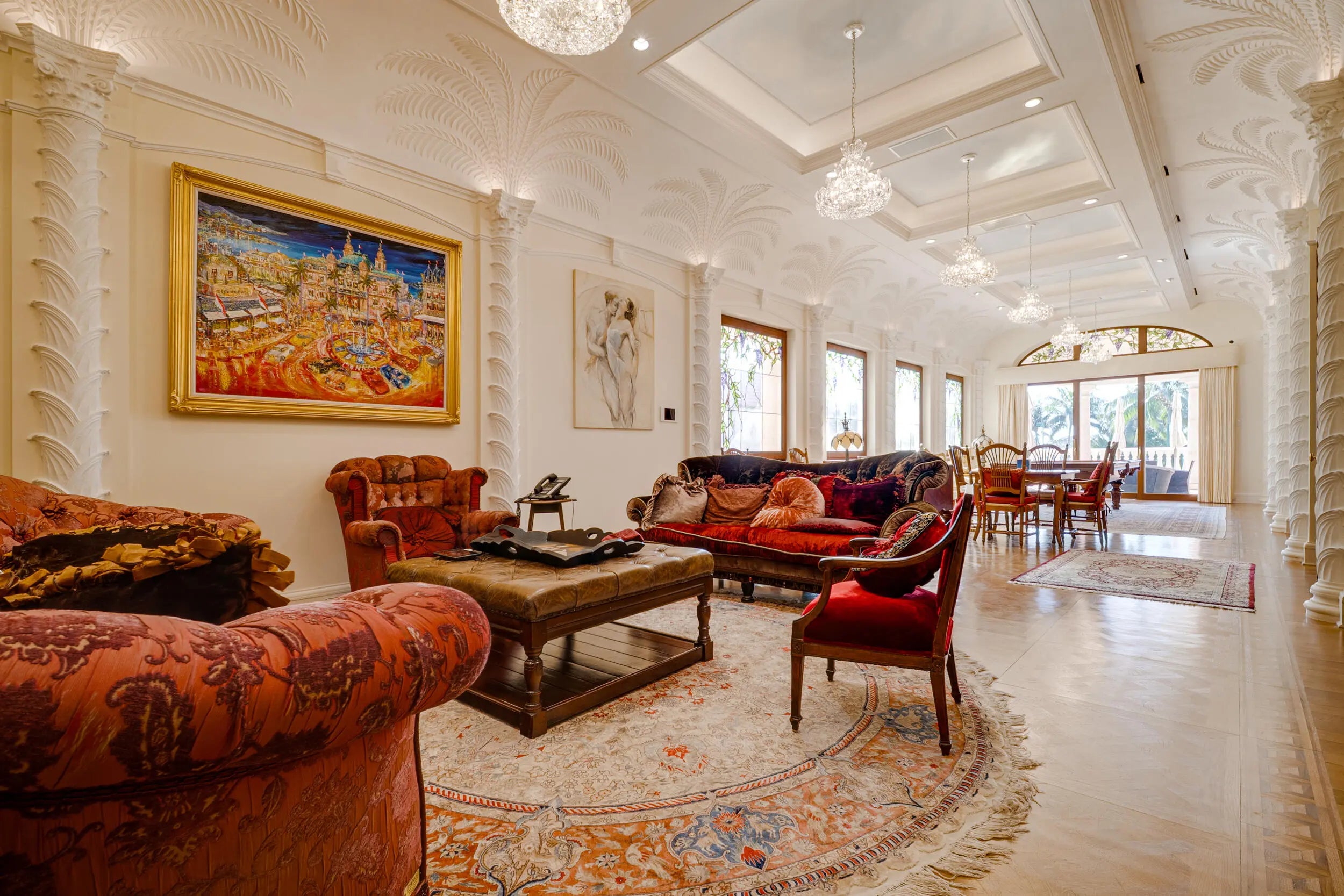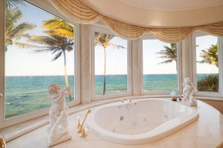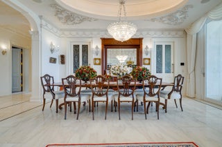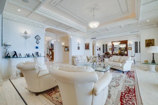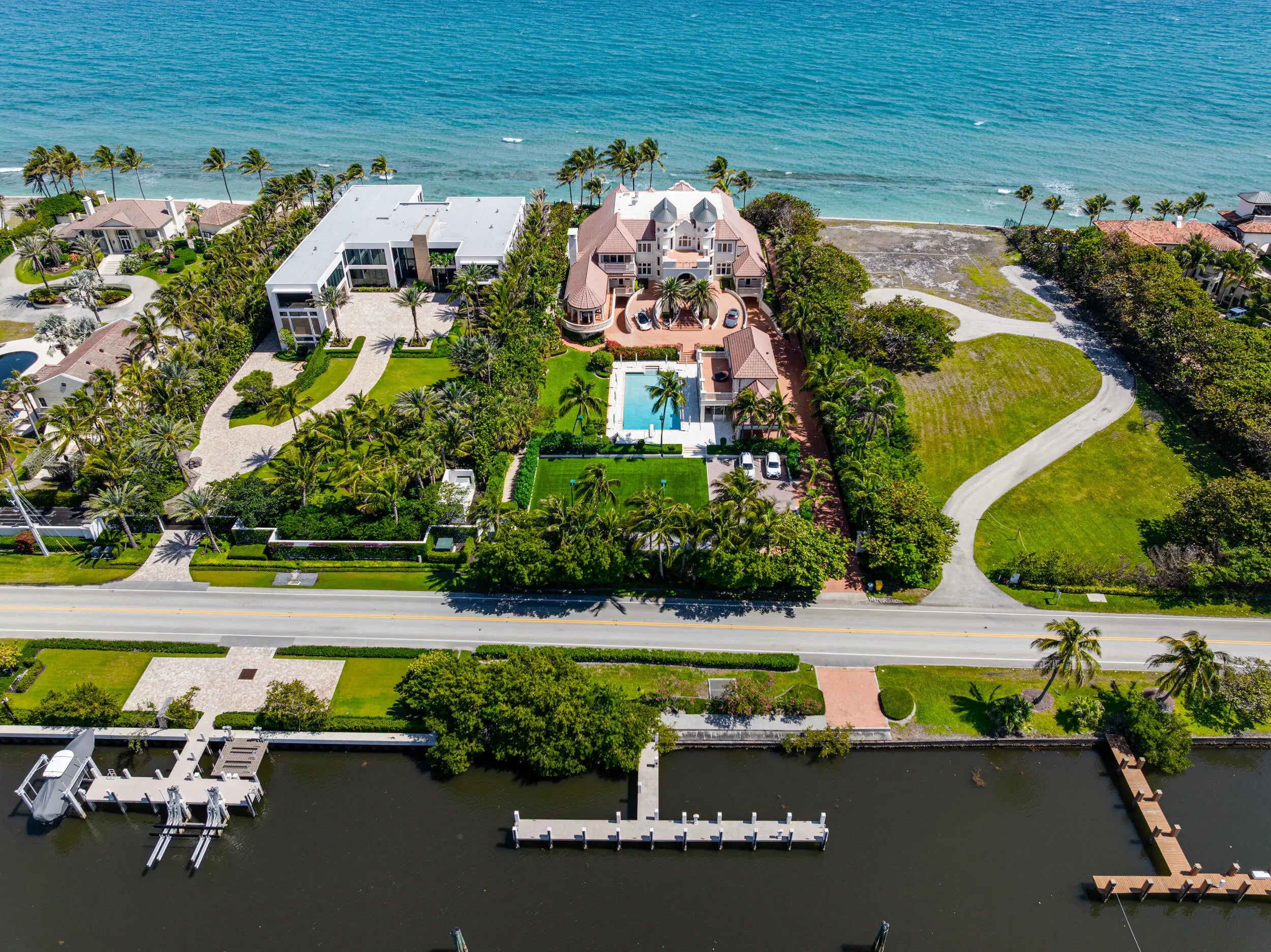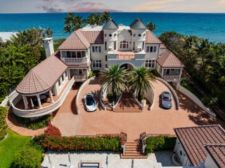 Commanding 151± feet of direct ocean frontage, Villa Rebecca is a rare ocean-to-Intracoastal estate that epitomizes timeless European elegance. Set on 1.33± acres of manicured grounds in the enclave of Manalapan, this Italian-inspired residence was designed by renowned architect Shane Ames. Spanning more than 30,000 total square feet, with nearly 16,000 square feet of living space, the gated compound offers 9 bedrooms, 13 full and 4 half baths, and a separate 2-bedroom guest house. A dramatic three-story foyer with a sweeping marble staircase and a 35-foot chandelier sets a regal tone, leading to grand living and dining rooms accented by Venetian plaster ceilings, intricate millwork, and imported hand-carved marble floors. The chef's kitchen features double Sub-Zeros, a Wolf gas range, dual ovens, warming drawers, and twin walk-in refrigerators. Designed for refined entertaining, the residence showcases a European-style mahogany pub, custom theater, wine cellar, and expansive marble loggias with a summer kitchen, bar, and resort-style pool. The primary suite offers a private terrace overlooking the ocean, dual baths, and boutique-style dressing rooms. Additional highlights include a private office, wellness center with gym, sauna, steam shower, and massage room, two elevators, a Crestron Smart Home system, backup generator, a 20+ car climate-controlled garage, and deepwater dockage. Moments from Palm Beach, the Eau Resort & Spa, and Worth Avenue, Villa Rebecca defines the pinnacle of South Florida oceanfront luxury.