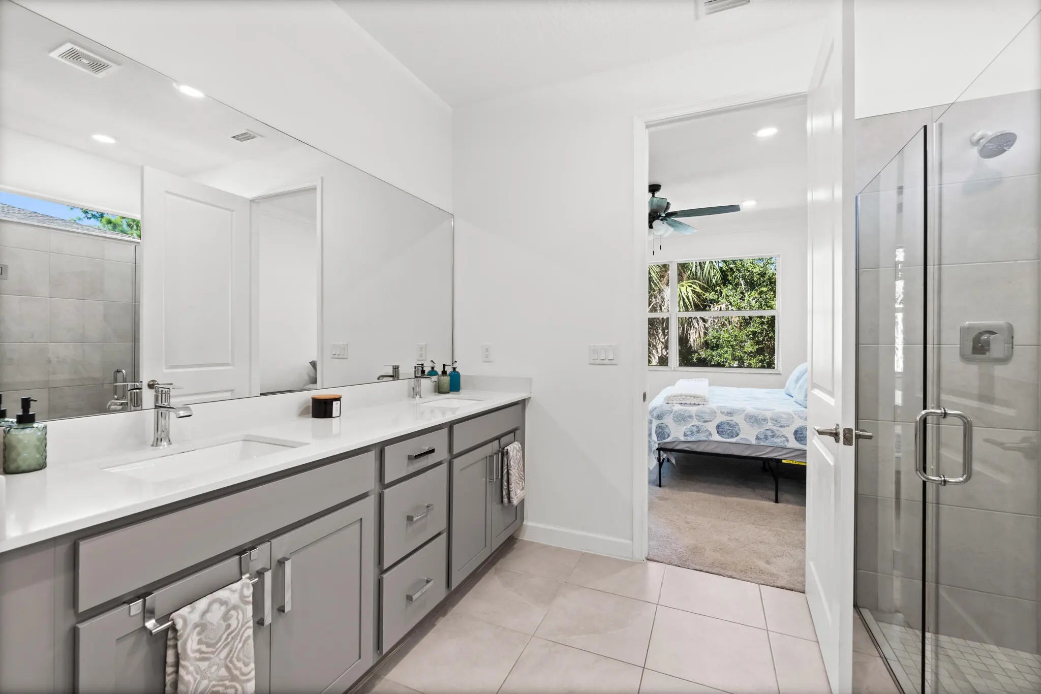 Modern Comfort Meets Natural Serenity in Everlands Built in 2022, this beautifully maintained 3-bedroom, 2-bath home combines modern design with thoughtful upgrades throughout. The open-concept living space centers around a stunning kitchen featuring quartz countertops, an oversized island, and sleek contemporary finishes—perfect for everyday living and entertaining alike. The primary suite offers a private retreat with an upgraded California closet and a spa-inspired bathroom. A split floor plan provides ideal flexibility for guests, a home office, or a growing family. Located in the gated Everlands community, you'll enjoy both peace of mind and connection—lawn care is included, and residents have access to a sparkling community pool and friendly, caring neighbors. Surrounded by conservation areas and parks, you'll enjoy a secluded feel just minutes from a new Publix and exciting upcoming shops at Ashton Park and Heritage Square Plaza - the perfect blend of nature, convenience, and modern living.