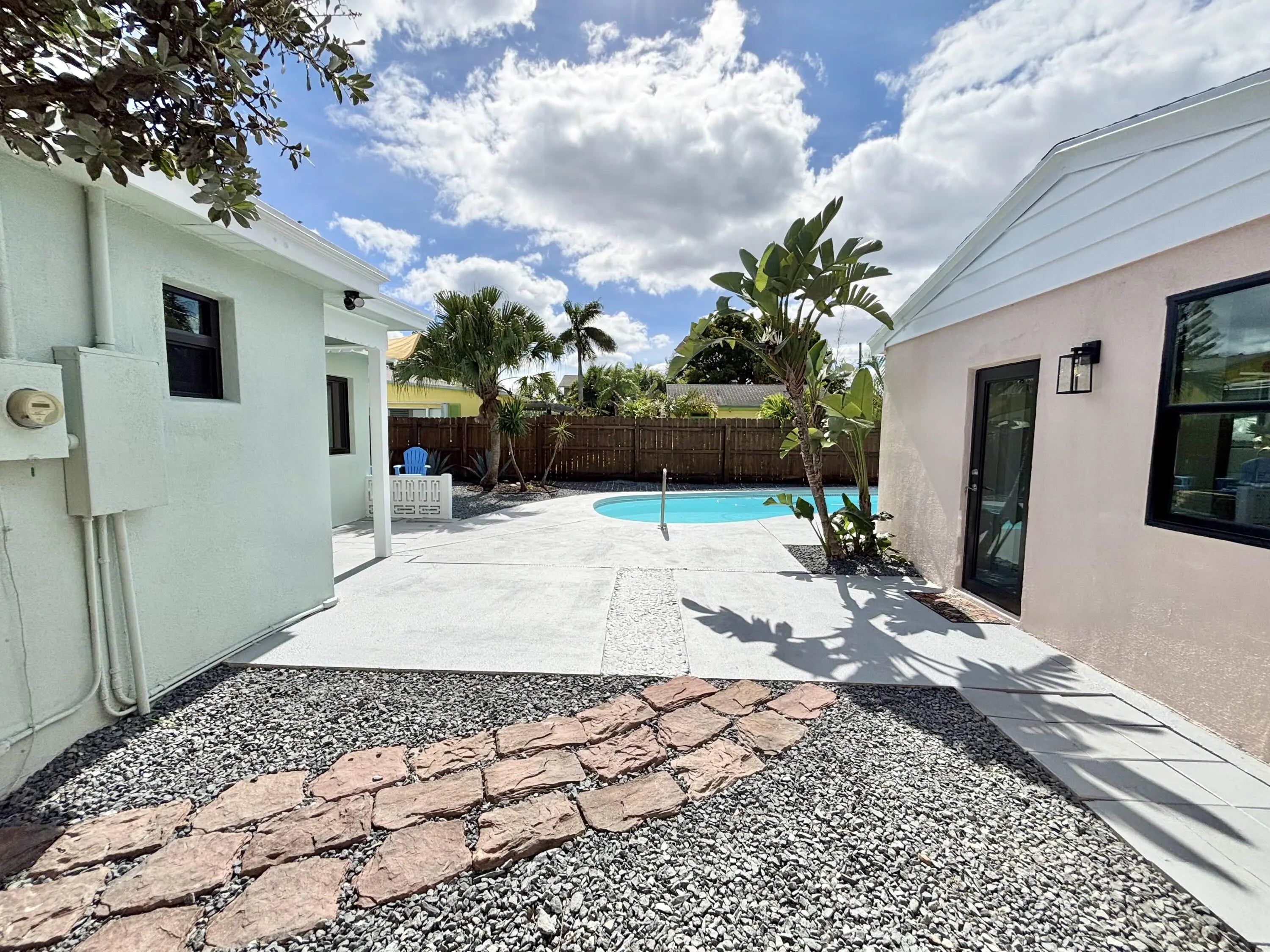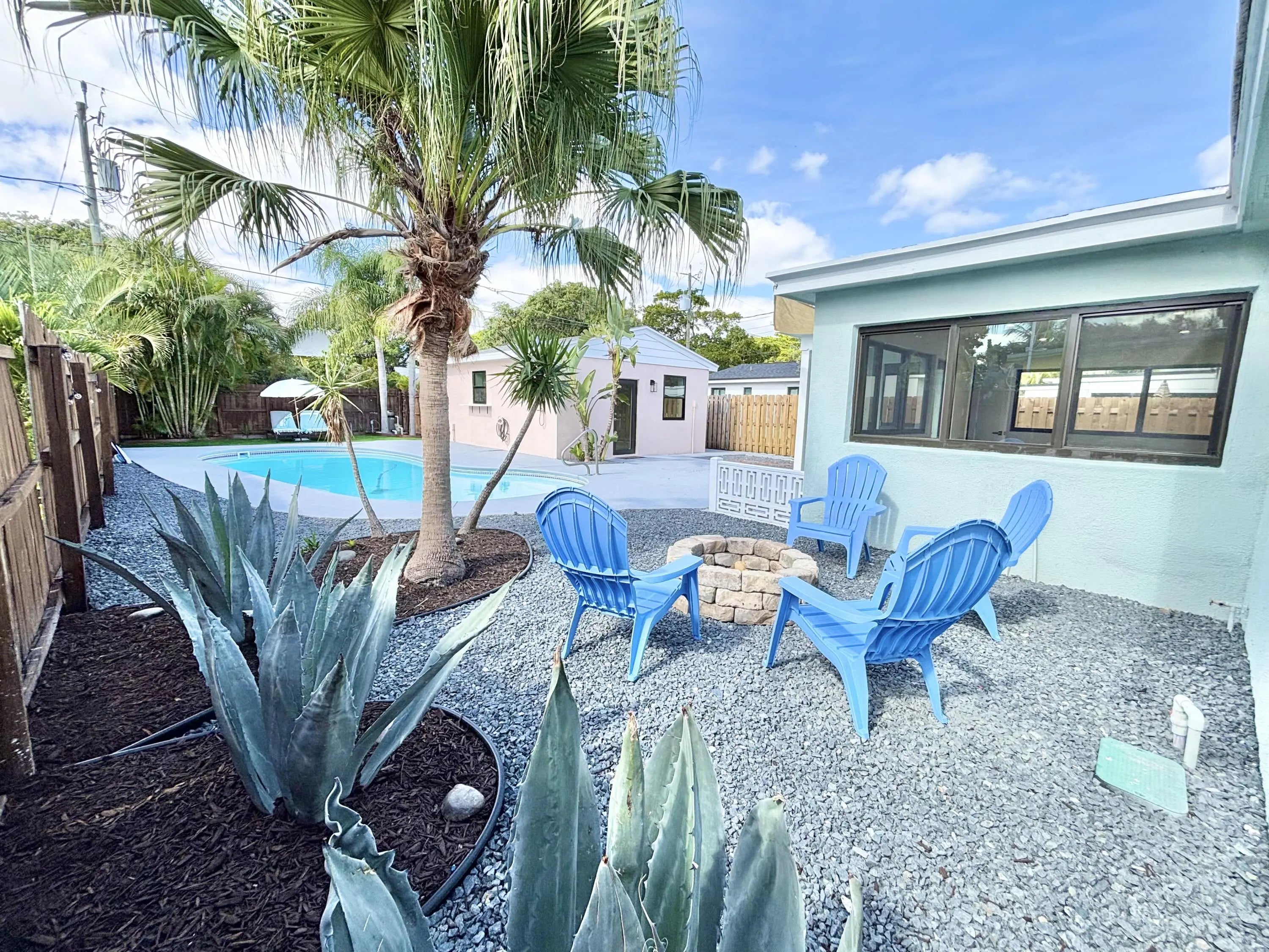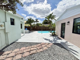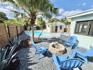 Welcome to 1121 N Ocean Breeze in the prestigious neighborhood of Parrot Cove- A truly one-of-a-kind property. Beautiful midcentury classic home with a guest suite and in-ground pool. The main house is a 2 bed /1 bath along with an equally stunning 1 Bed/1 Bath suite. Both are CBS construction with impact windows & doors. Professionally designed to preserve its vintage Florida charm with a modernized twist. Masterful kitchen complete w/ a porcelain farm-sink, quartz countertops, & SS appliances. Eat-in kitchen large enough to seat 3-4! Luxury vinyl flooring & 5inch baseboards throughout. Built-in sound system in & outside! Sun-soaked pool area suitable for entertainers & sun bathers. Lots of deck space and an outdoor shower w/ hot & cold! Large front lawn/courtyard area is rarely found. Pavers walkway invites you to the covered patio overlooking the lush landscaping & privacy hedges. Updated irrigation system w/ digital timer. Convenient street parking in the front & bonus alleyway access and parking in the back! Loads of potential for guests, family, home office, & more! Just minutes from the beach, shopping, golf, major roads & more. Listing subject errors, omissions, & change without notice. Room Measurements approx. See it today!