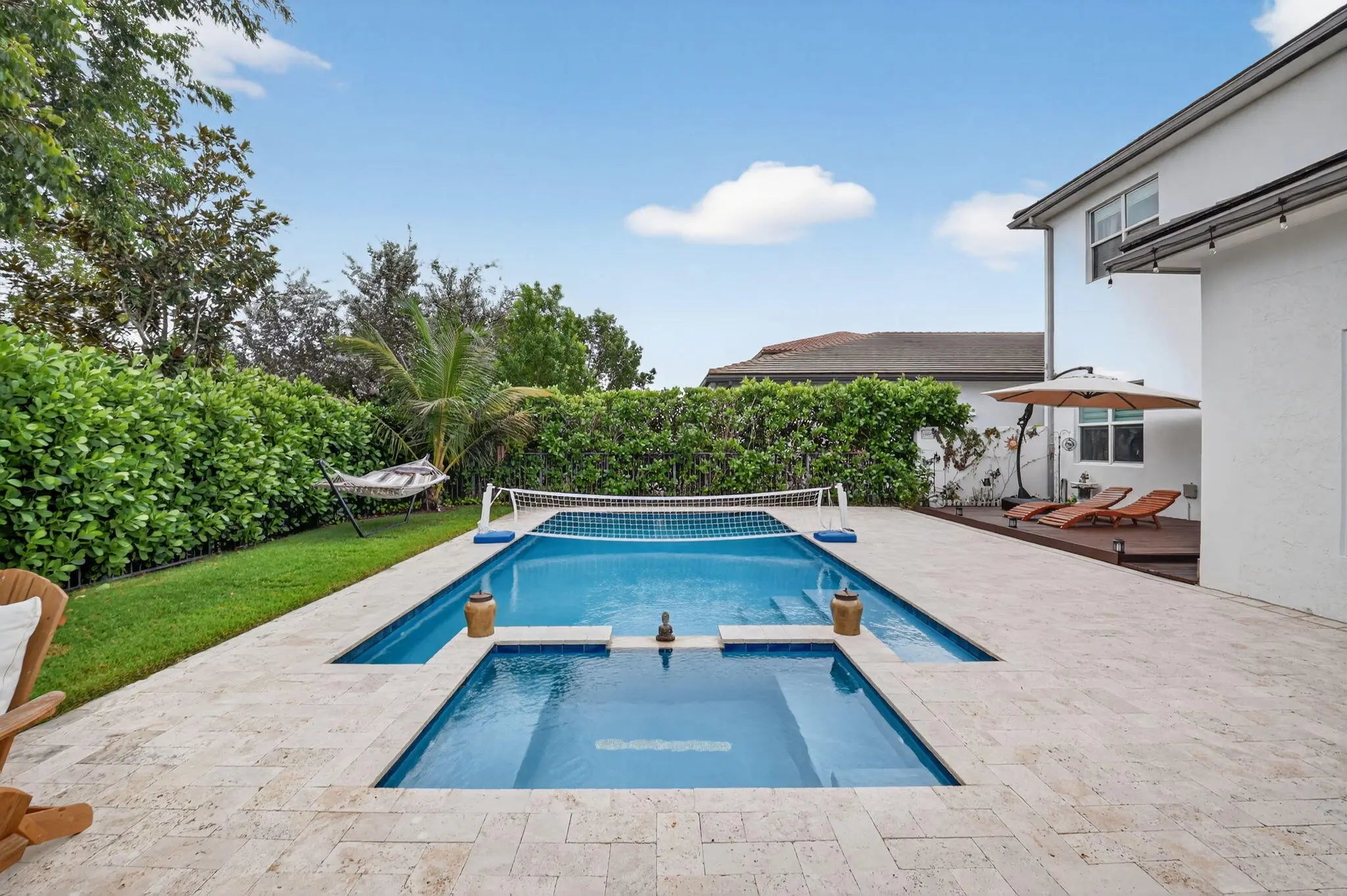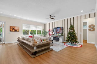 Welcome to this beautifully renovated 4-bedroom, 4-bathroom home with a loft, located in the gated community of Andalucia. This residence features a spacious loft and a chef's kitchen equipped with a gas stove, quartz countertops, premium cabinetry, and designer lighting. The updated flooring and crown molding enhance the home's elegance, while the remodeled primary bath adds modern comfort. Enjoy the bright Florida room that opens directly to a private heated salt water pool and spa surrounded by lush landscaping. Additional highlights include Hurricane impact glass, newer A/C system, upstairs washer/dryer for convenience, tankless water heater and a split 3-car garage with a 240V EV charger hook-up. This home is designed for both luxury and practicality with 100% LED lighting