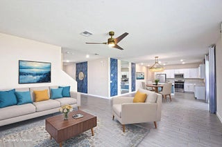 Desirable Helena model in gated, lakefront Copper Creek - perfect for entertaining or a growing family with tons of flexible living space. Gorgeous light, bright interior with upgraded plank tile flooring, designer fixtures and impact windows. Stunning kitchen features an impressive walk-in pantry. Spacious primary suite includes custom built-in closets. Assumable 4.3% mortgage available for qualified buyers! Downstairs offers open living/dining, office, guest bath and 3-car garage with a large backyard overlooking the lake. Upstairs you'll find a generous loft, additional bedrooms, laundry and 2nd full bath. Community perks include a resort-style pool, clubhouse, state-of-the-art fitness center, playground and more. Close to shopping, dining, highways and Allapattah Flats K-8.