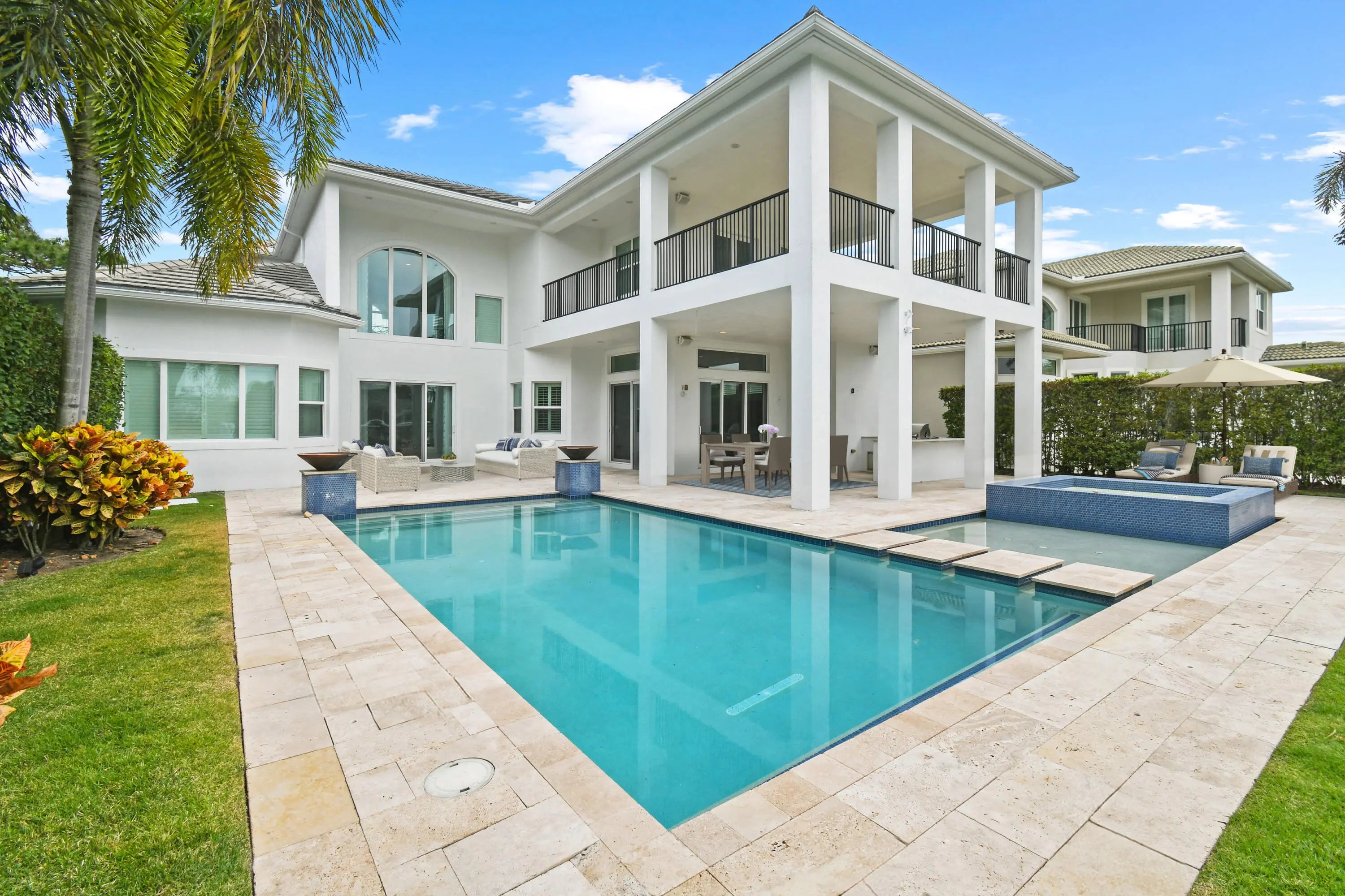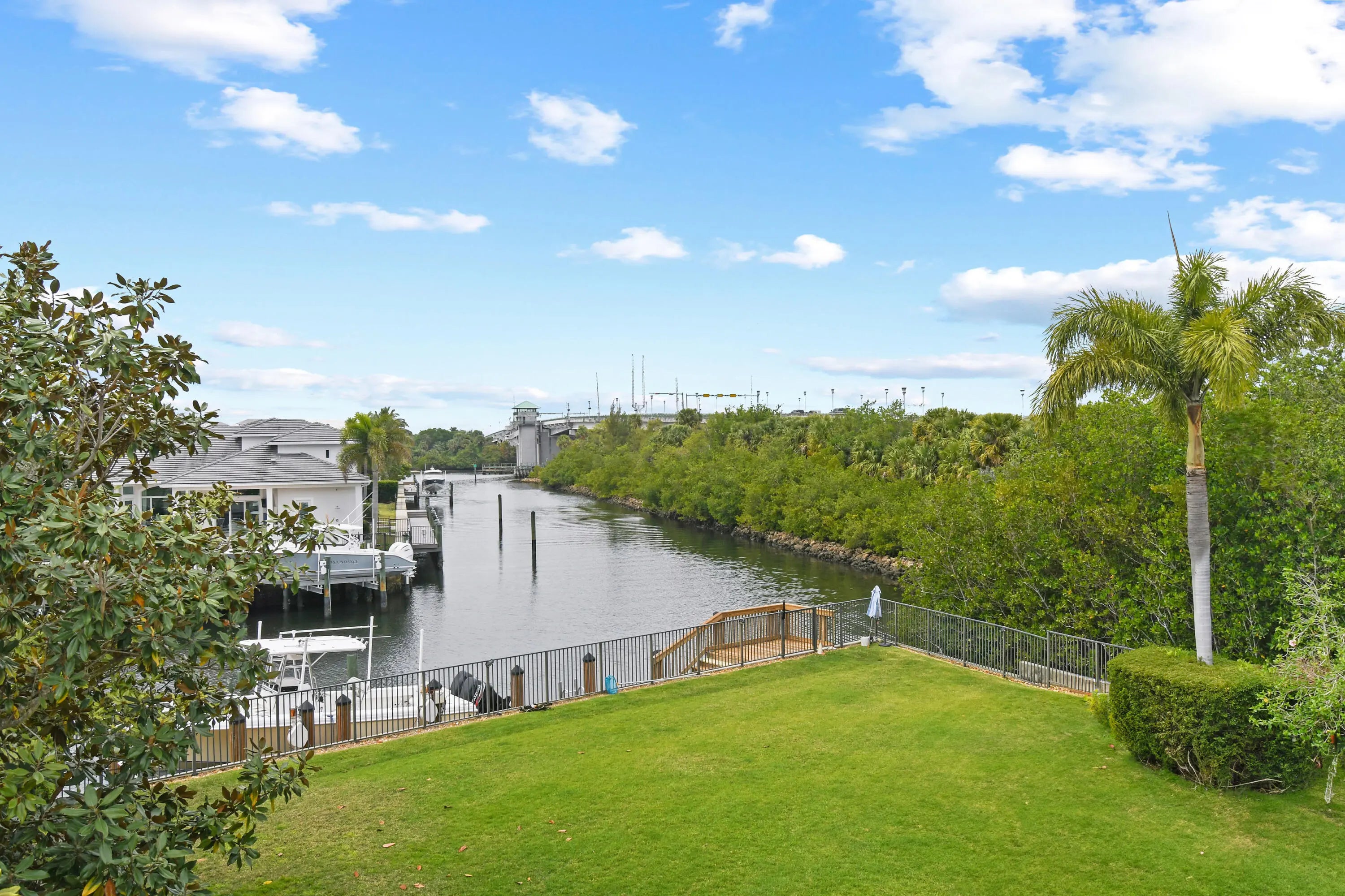 Commanding an extraordinary position along a private canal with sweeping, direct Intracoastal views, this stunning waterfront estate embodies the pinnacle of Palm Beach luxury and maritime living. With a 70-foot private dock, Hi Tide Topless 12,000 lb boat lift, and capacity for a 65-foot yacht or multiple vessels, the residence offers effortless deep-water access with no fixed bridges, just moments from the Atlantic. Perfectly situated on a premium cul-de-sac homesite within the exclusive, guard-gated enclave of Frenchman's Harbor, the property delivers both exceptional privacy and breathtaking panoramic vistas—an unmatched sanctuary for the discerning boating enthusiast. The estate's prime canal-front vantage point provides unobstructed sight lines down the waterway and an uncommon feeling of openness rarely found in South Florida. Spanning over 5,000 square feet, this rarely available Delena model welcomes you with a grand double-door entry into a dramatic 24-foot foyer, where walls of glass frame tranquil water views. A sculptural staircase and sunlit interiors establish an atmosphere of elevated coastal sophistication throughout. Designed for intimate living and grand-scale entertaining alike, the chef's kitchen is appointed with Wolf and Sub-Zero appliances, custom cabinetry, and an expansive waterfall island. The space opens seamlessly into the living and dining areas, where sliding glass walls dissolve the divide between indoors and out. Beyond lies a resort-style lanai featuring a Twin Eagles summer kitchen, covered entertaining pavilion, and a sparkling pool with sun shelf and spa, all overlooking the manicured grounds and shimmering Intracoastal backdrop. The main-level primary suite is a serene retreat offering dual walk-in closets, a spa-inspired bath with soaking tub and oversized shower, and an adjoining private den ideal as an office, nursery, or fitness space. The first floor also includes a guest suite with private bath, formal living and dining rooms, a powder room, and a dedicated officeeach space curated with refined balance and timeless elegance. Upstairs, a spacious loft connects five additional bedrooms, including a versatile bonus suite with its own ensuite bath, perfect as a media room, guest quarters, or lounge. French doors reveal an expansive terrace capturing spectacular sunset views over the Intracoastal, creating an exquisite setting for al fresco dining or evening cocktails. Additional luxuries include a three-car garage with epoxy flooring, extended driveway, impact-rated windows and doors, and a dedicated pool bath. Set within Frenchman's Harbor, one of Palm Beach County's most prestigious waterfront enclaves, owners enjoy 24-hour manned security, exceptional deep-water dockage, and proximity to world-class beaches, golf, fine dining, and luxury shopping. With its unrivaled vantage point, rare dockage capabilities, and architectural sophistication, 13965 Willow Cay Drive stands as a true statement of distinction, a legacy estate of exceptional caliber on South Florida's Gold Coast.