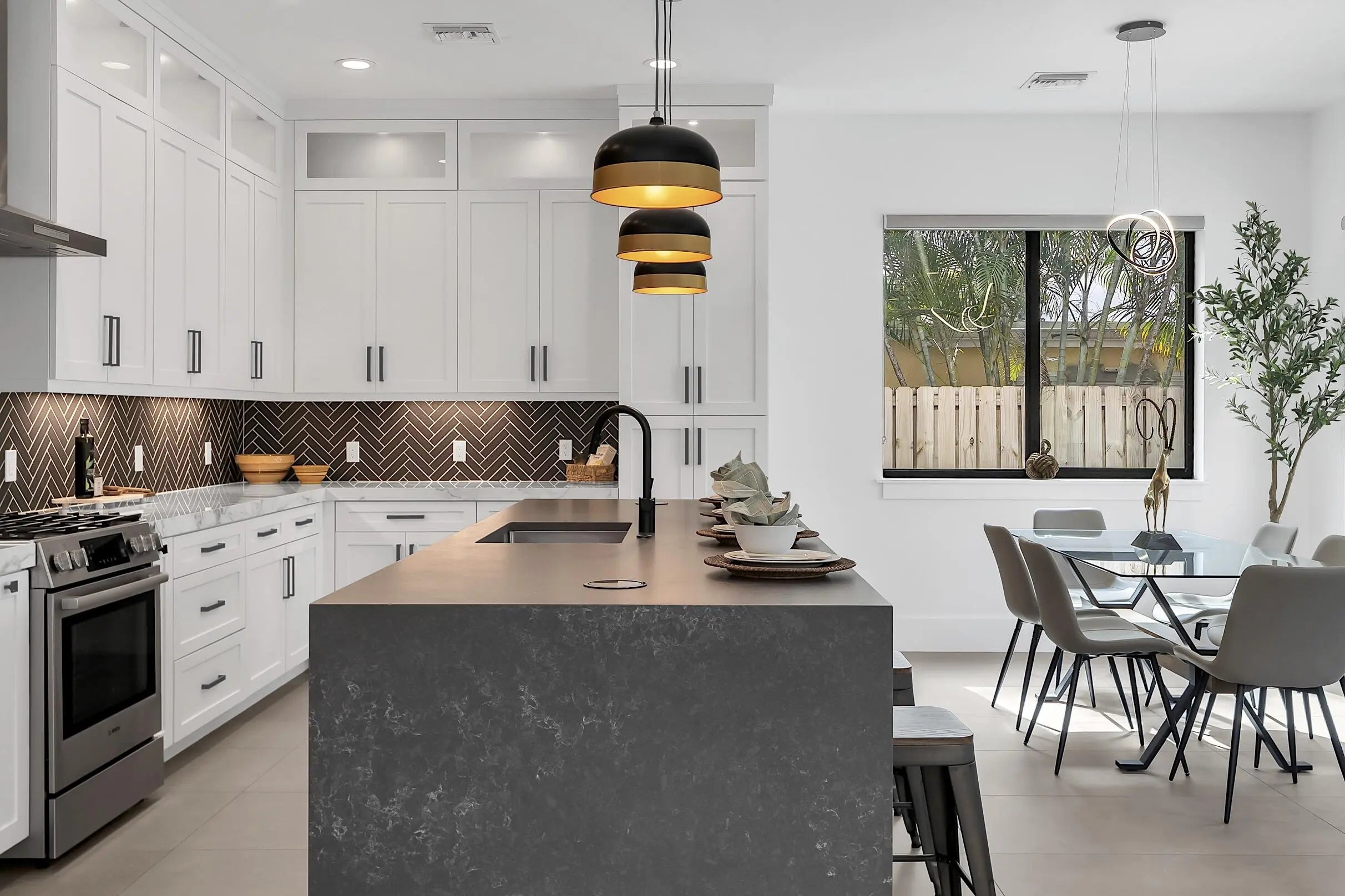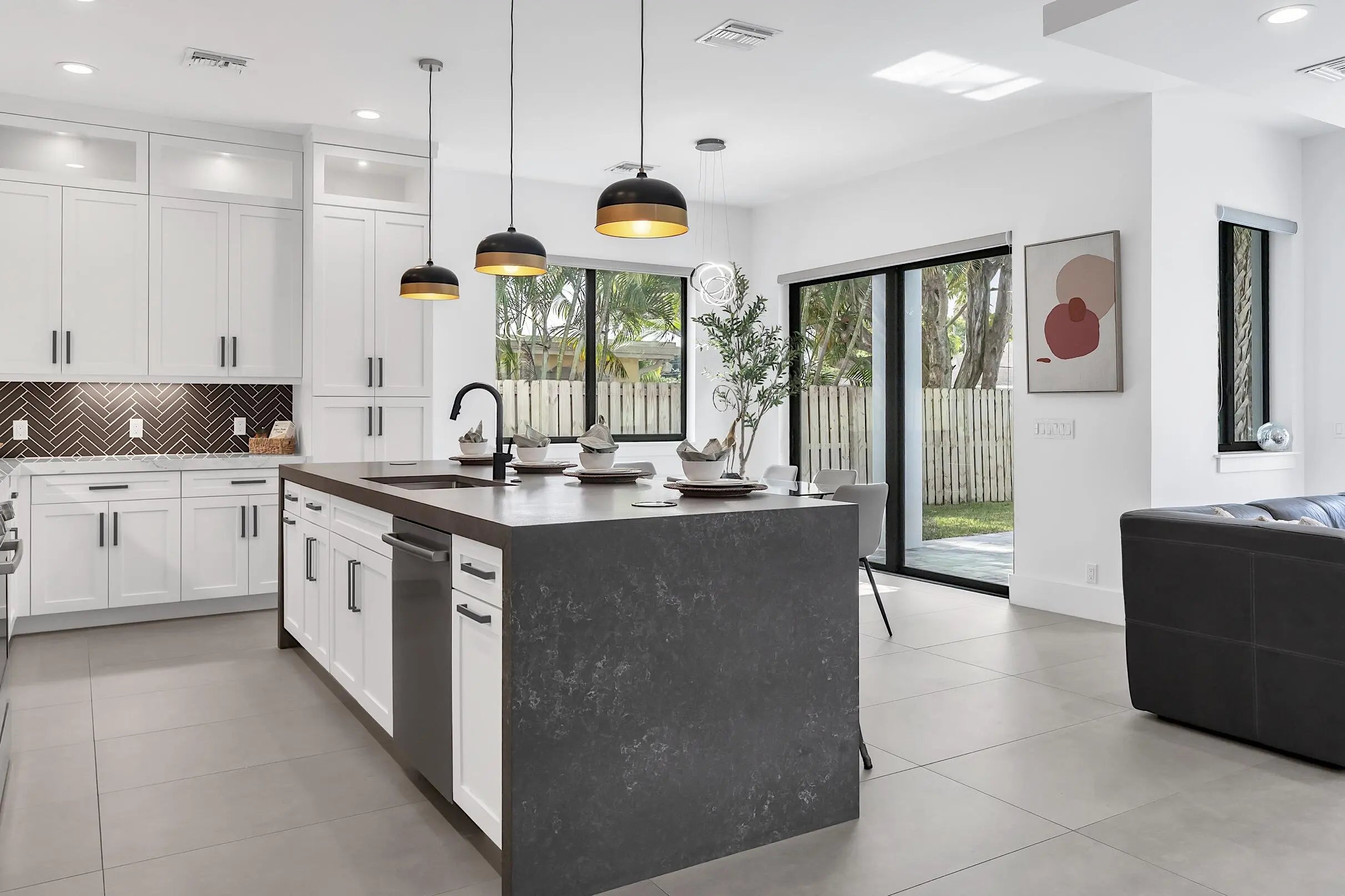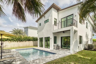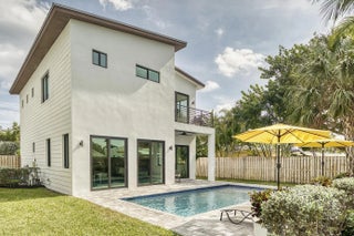 Contemporary coastal gem from an award-winning builder. Over 2500 square feet of living space with 4 bedrooms and 3.5 baths. The open floor plan with soaring ceilings is flooded with natural light and centered around a chef's kitchen, with a living and dining room that fit the space beautifully. Three pairs of oversized sliding doors allow for the seamless transition outdoors to enjoy a quiet morning, dip in the pool, or for hosting a gathering. Upstairs the expansive primary suite greets you with its own balcony, spa bath and custom closets. Additional bedrooms are big, bright and perfect for guests or your growing family. Additional upstairs space is suited for a home gym, den or office. Modern CBS construction with impact glass and a seamed aluminum roof means peace of mind.