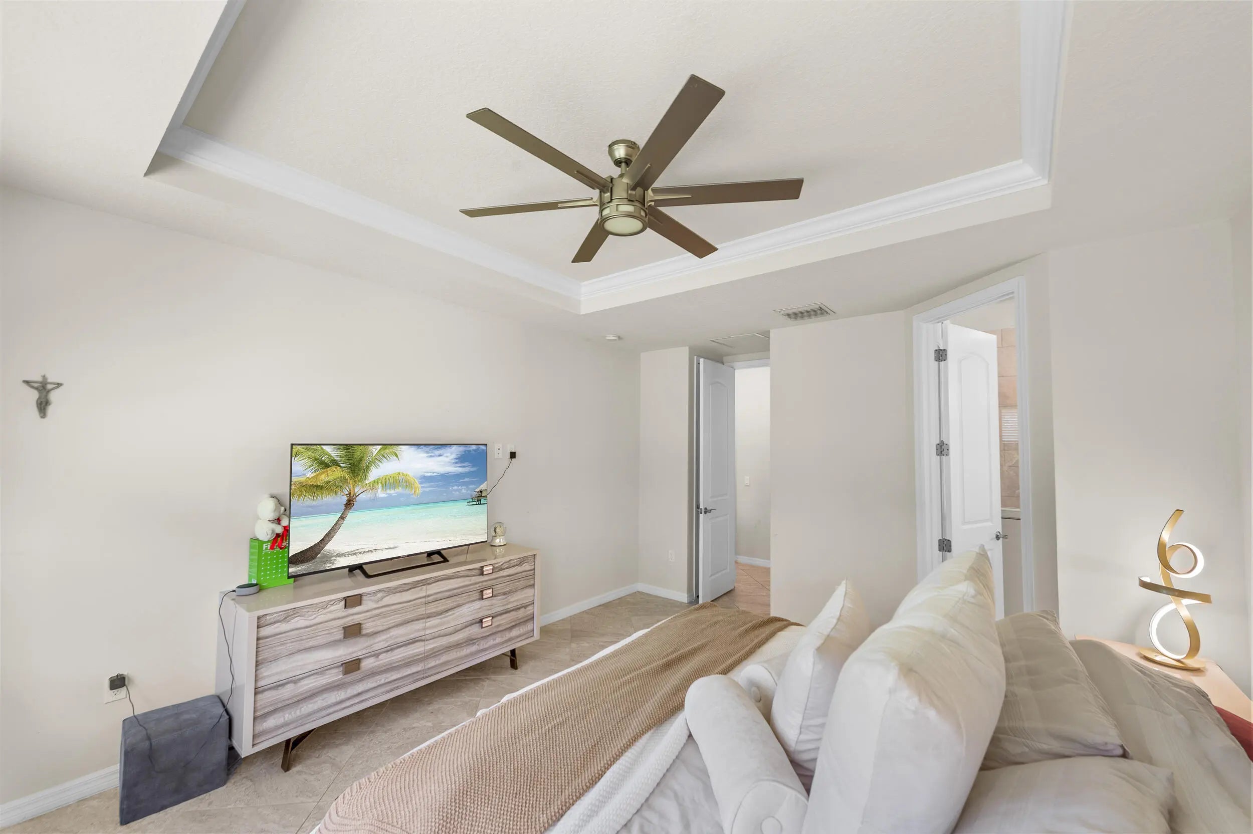 Built-in Features, High Ceilings, Walk-In Closet(s), Bedroom Layout - Split, Closet Cabinetry