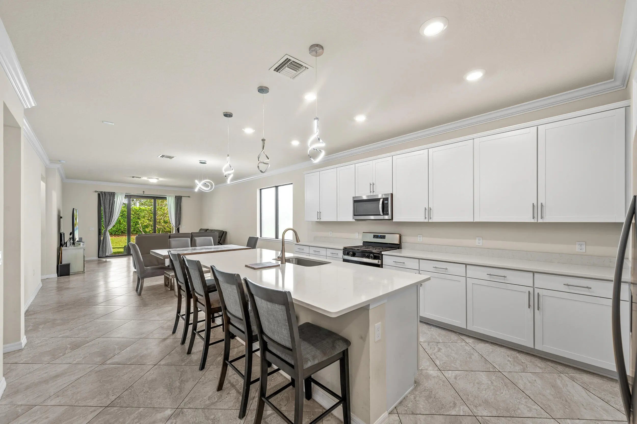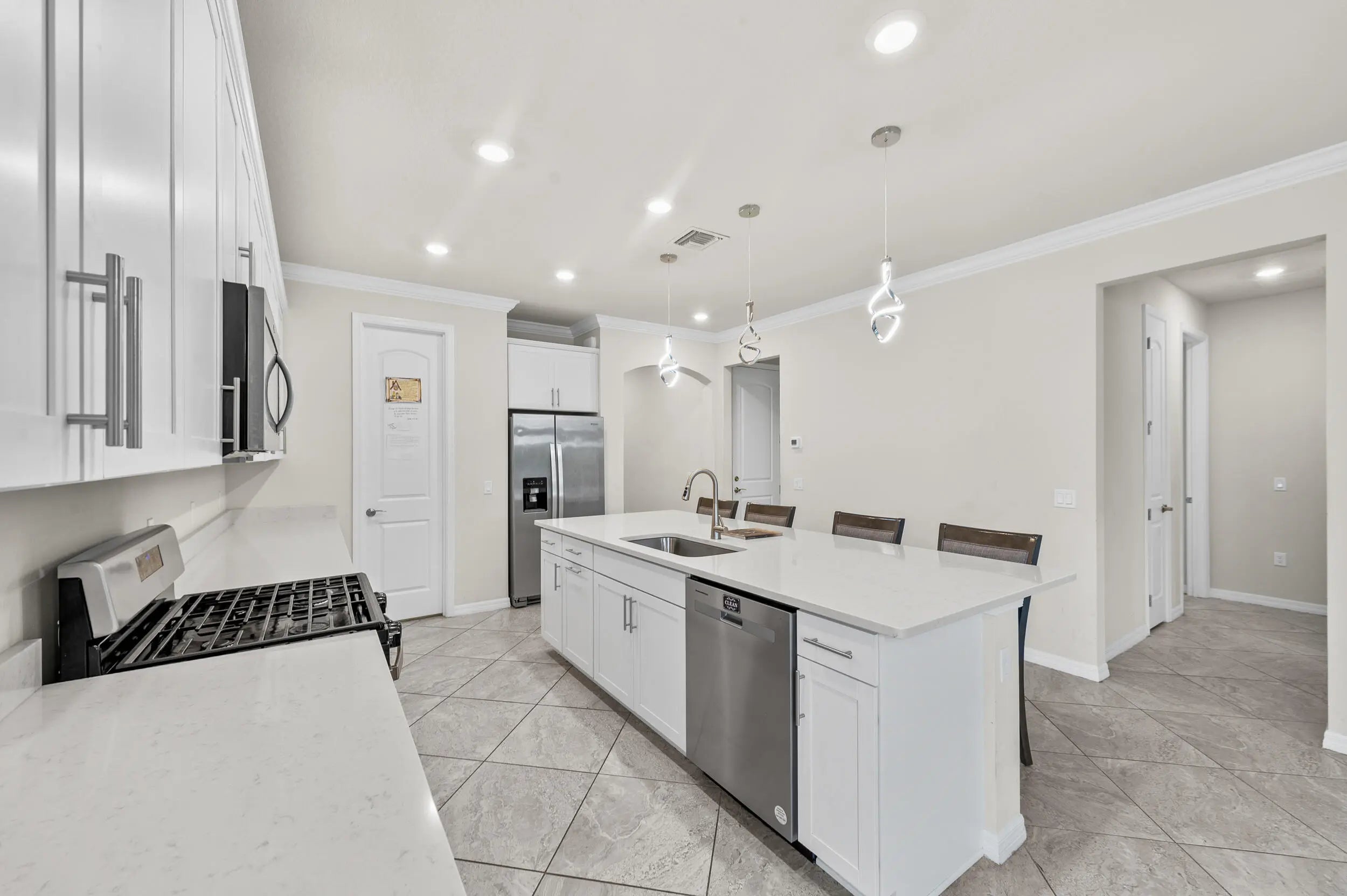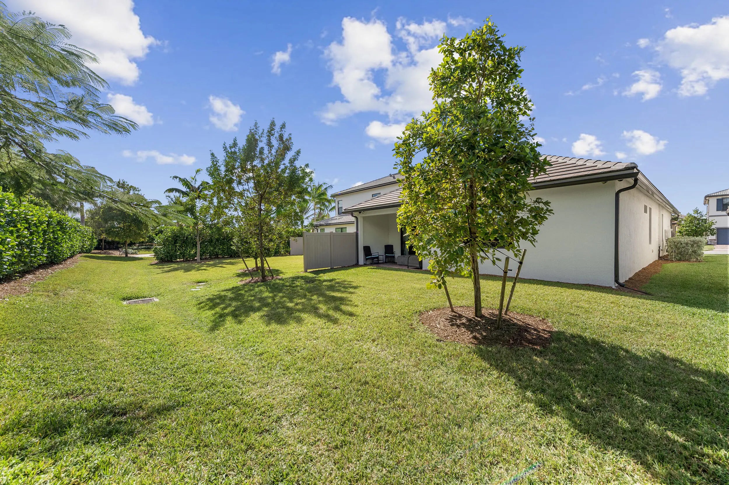 STUNNING 2023-built home in a family-friendly gated community of THE FIELDS. Conveniently located on a CUL-DE-SAC. This MUST-SEE newer construction home offers four bedrooms, two full bathrooms, two-car garage in a designed split floor plan. The open floor plan features a designer kitchen with a gas stove, Quartz countertops, oversized island with ample seating, stainless-steel appliances. Primary suite offers dual sinks, an XL walk-in shower, and a spacious walk-in closet. Elegant tile flooring flows seamlessly throughout the home. Ceiling fans enhance the home's contemporary appeal. Impact windows and doors provide security and peace of mind. Step outside to a covered patio for relaxing and with no rear neighbors. The Clubhouse offers incredible amenities. GREAT SCHOOLS.
