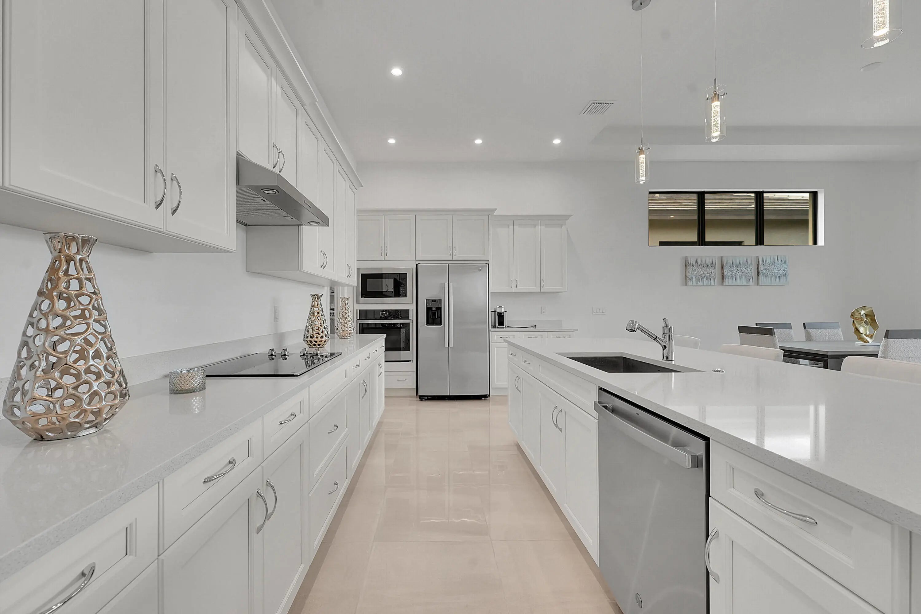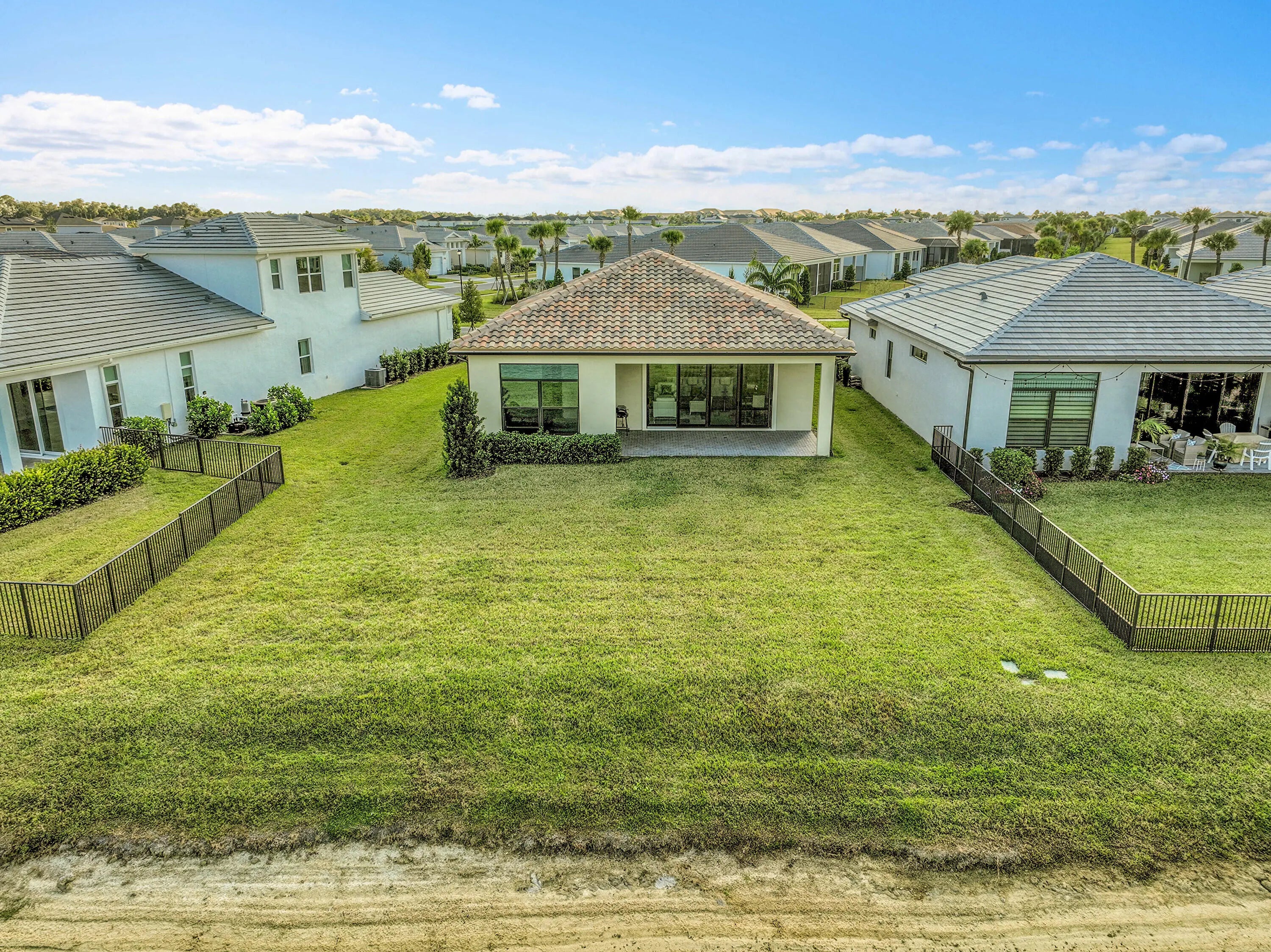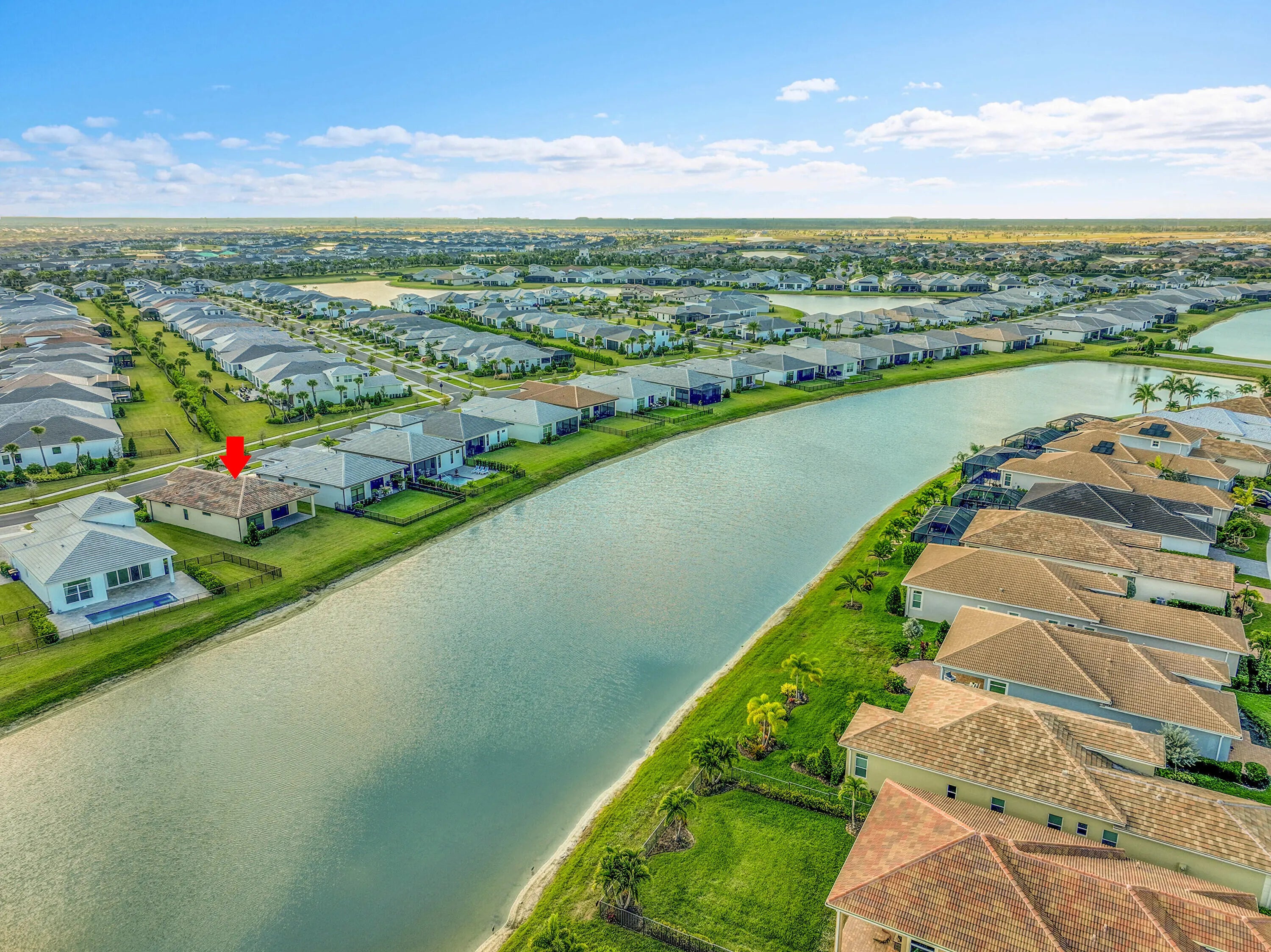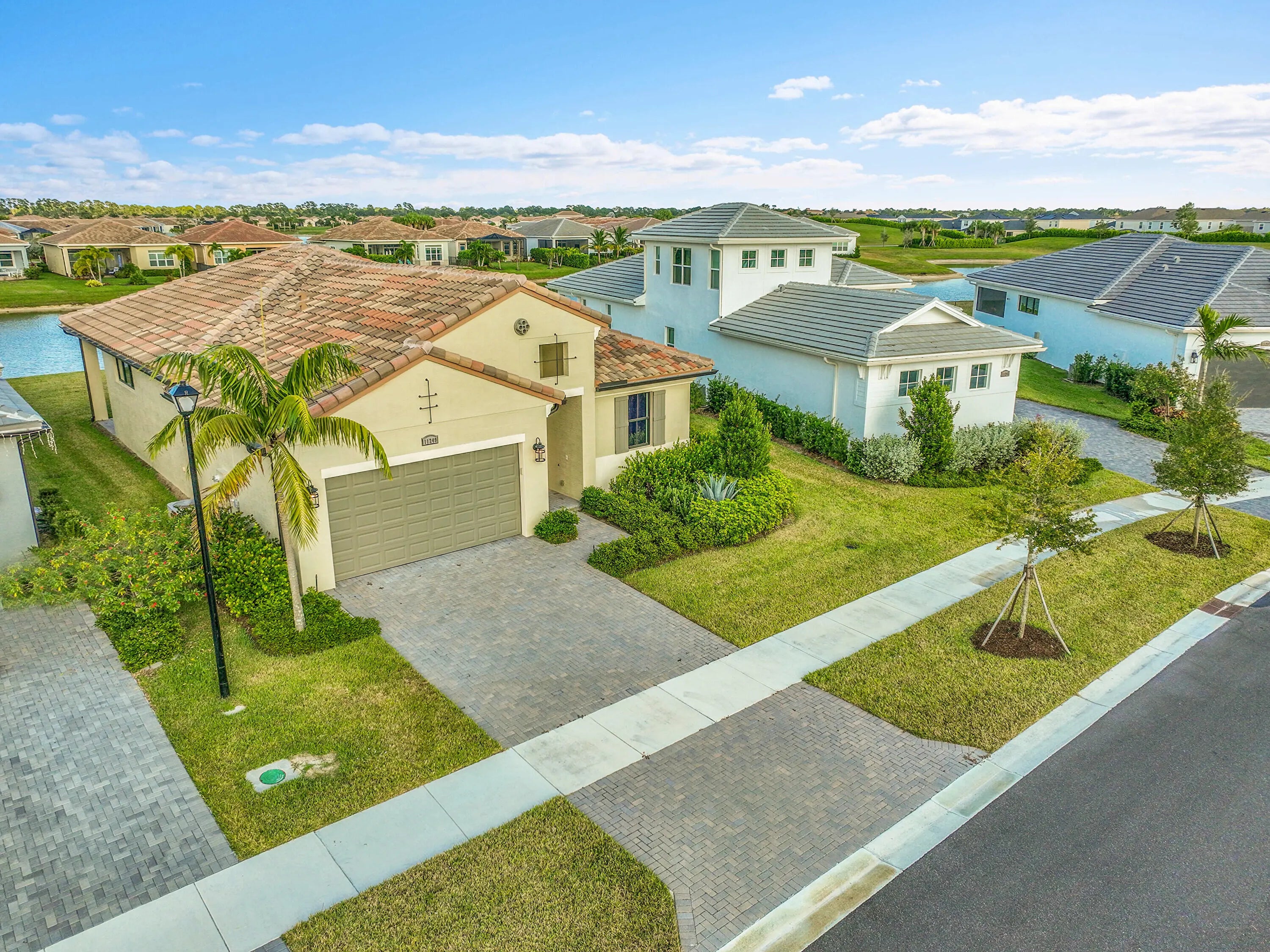 This 2024 CBS home in PGA Verano offers a split floor plan, premium upgrades and a move-in-ready lifestyle. Featuring 3BR/2BA, this bright and open layout includes impact glass, sleek tile flooring, quartz counters, stainless appliances, 16'x10' sliders, and a large kitchen island. The extended lot showcases long lake views, ideal for a future pool. Enjoy a spacious primary suite with spa-like bath and walk-in closet. Verano's resort-style amenities include indoor/outdoor pools, 27 pickleball courts, clubhouse, fitness, tennis, and more. HOA includes cable, internet, lawn care, and security.