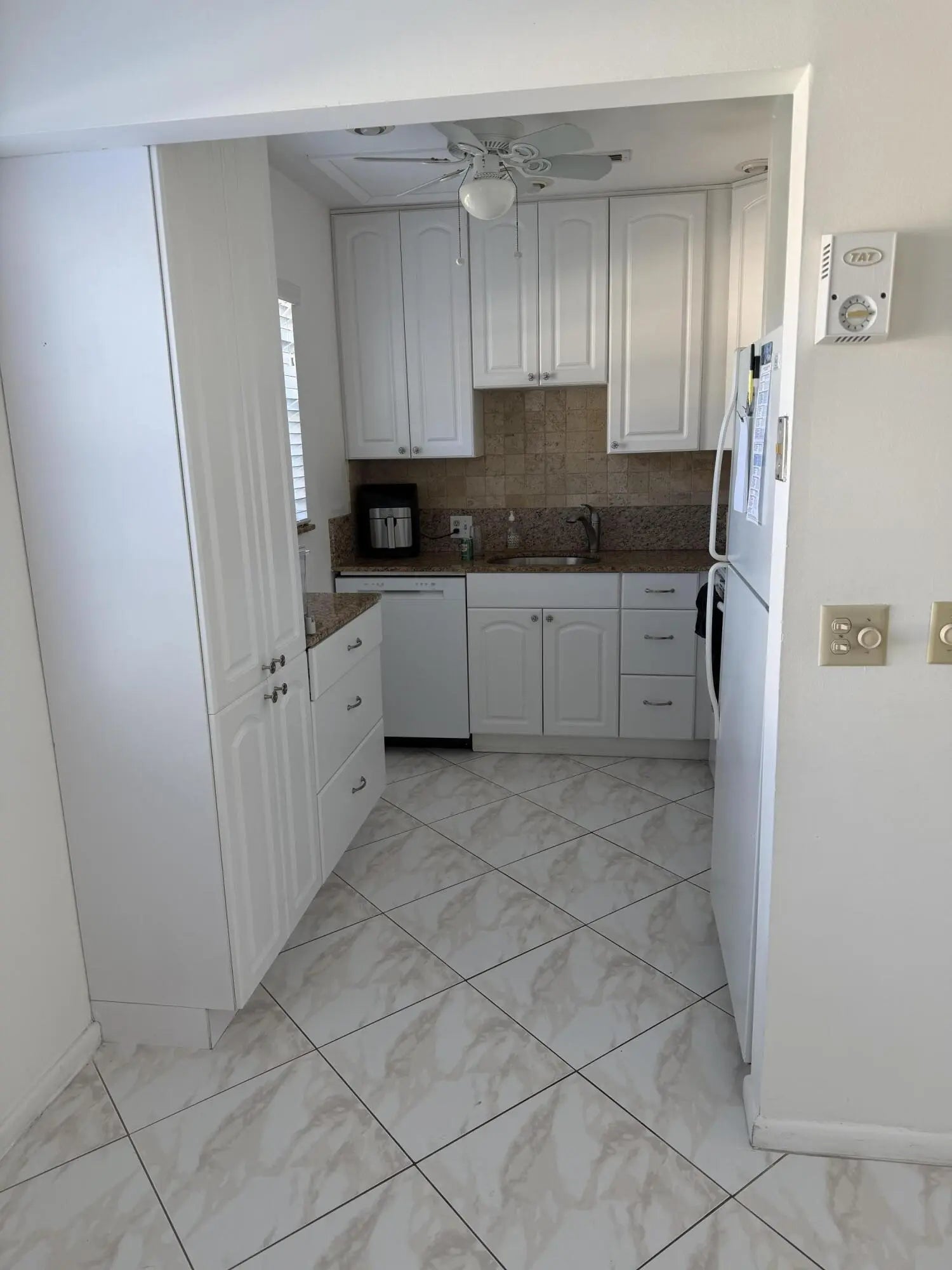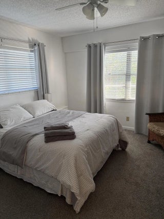 Bright and airy penthouse corner condo featuring tile flooring throughout, including the bedroom. Enjoy a fantastic kitchen with abundant storage, updated A/C and hot water heater, and a custom closet organizer. This beautifully maintained home is sure to impress. Located in a desirable 55+ community.