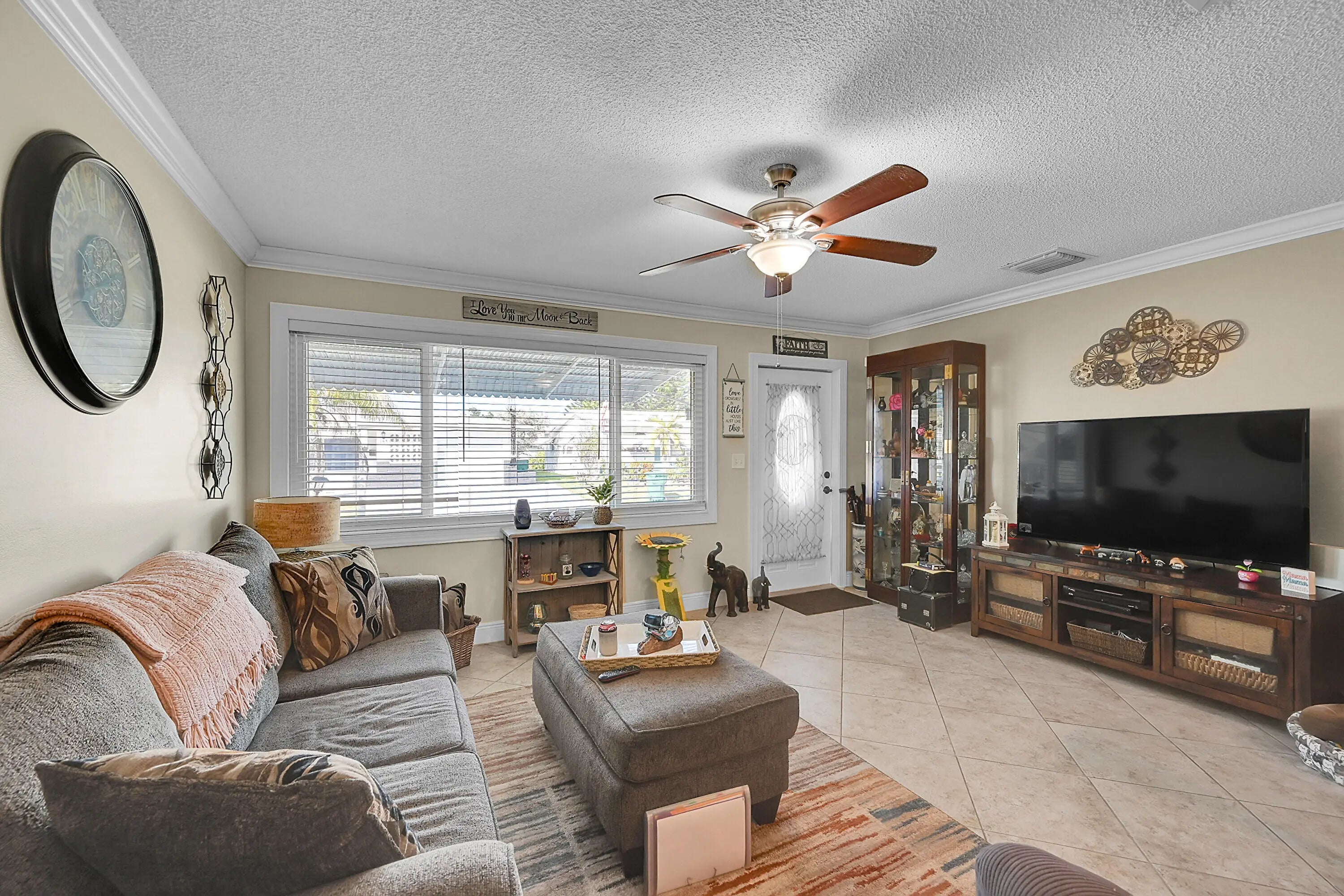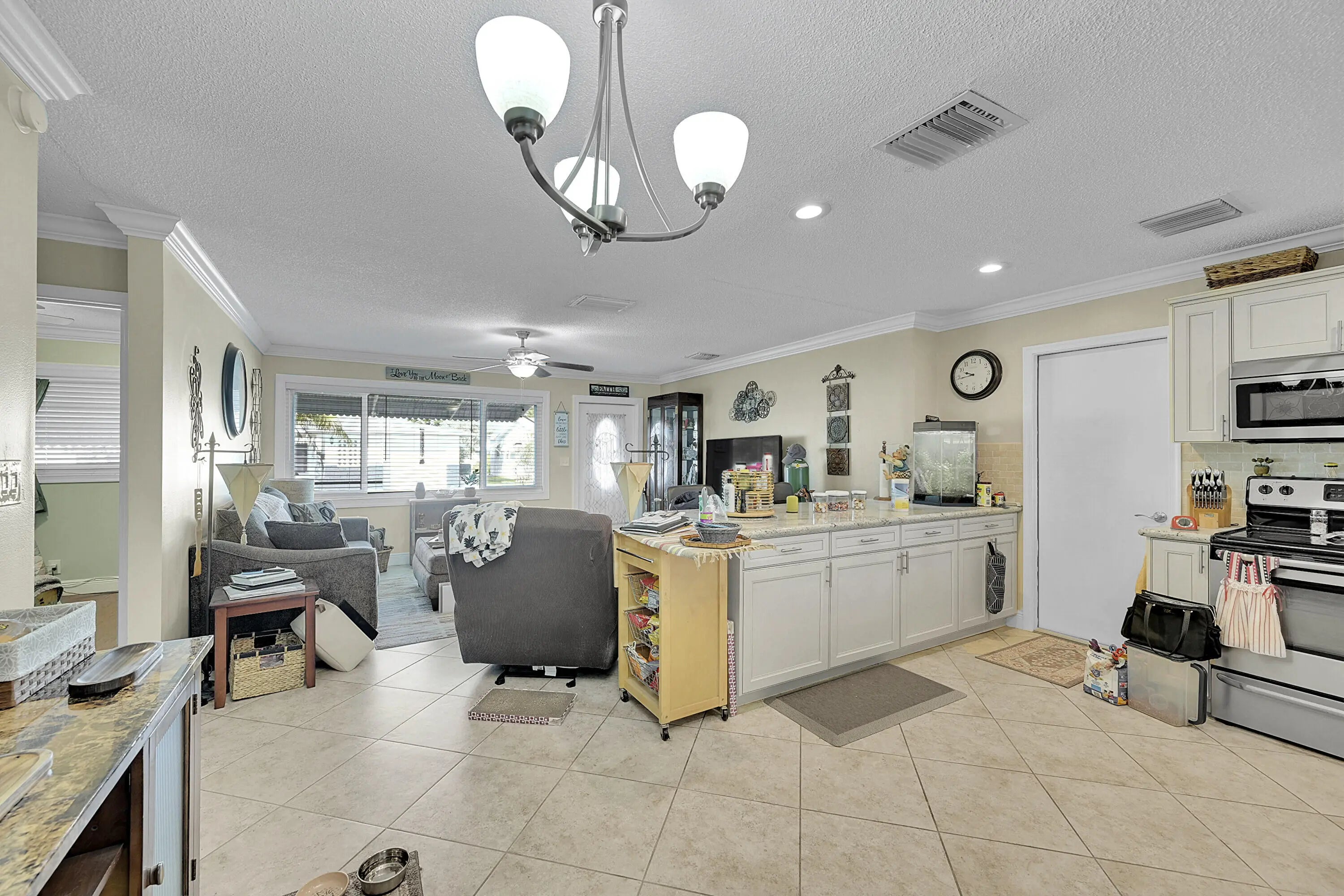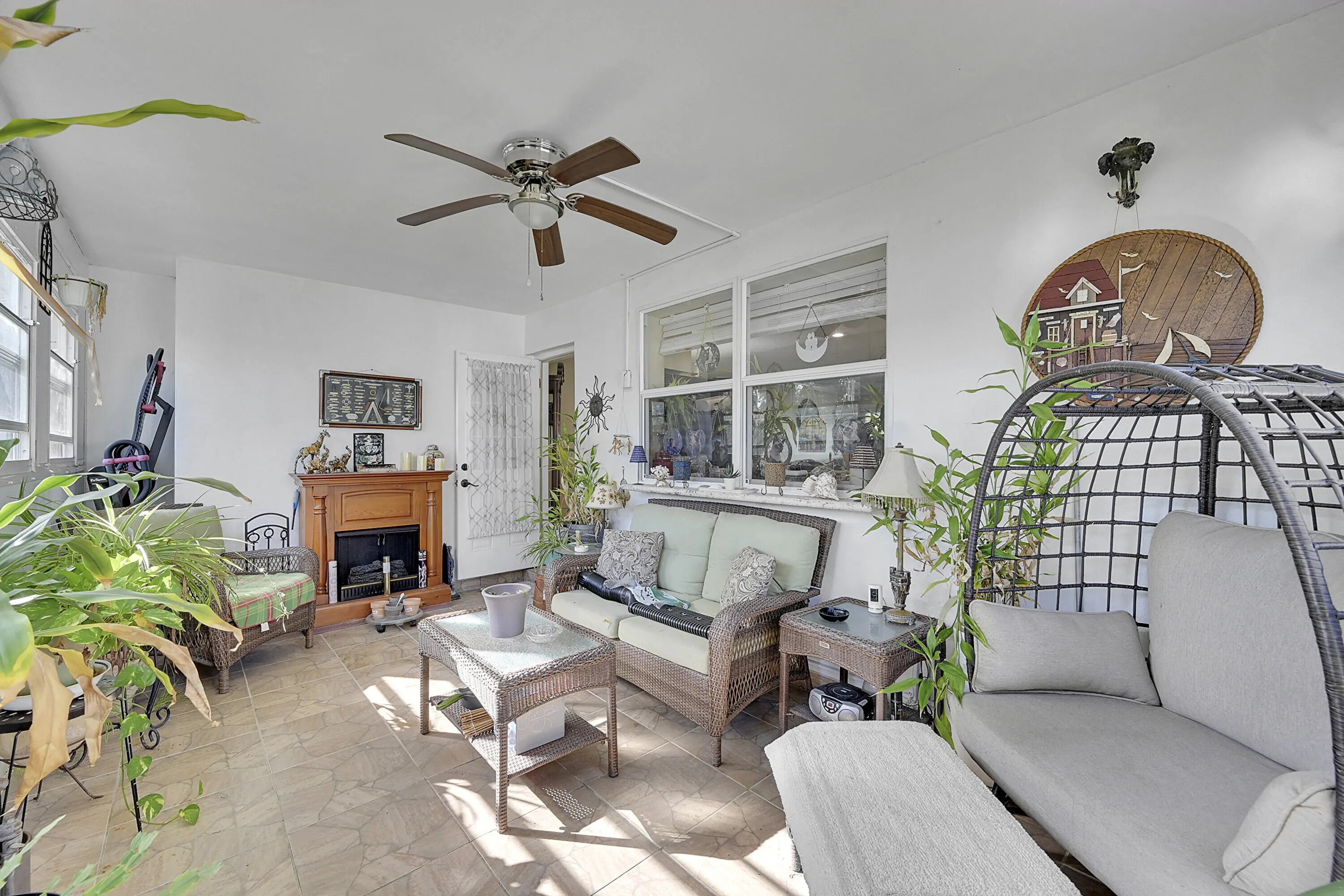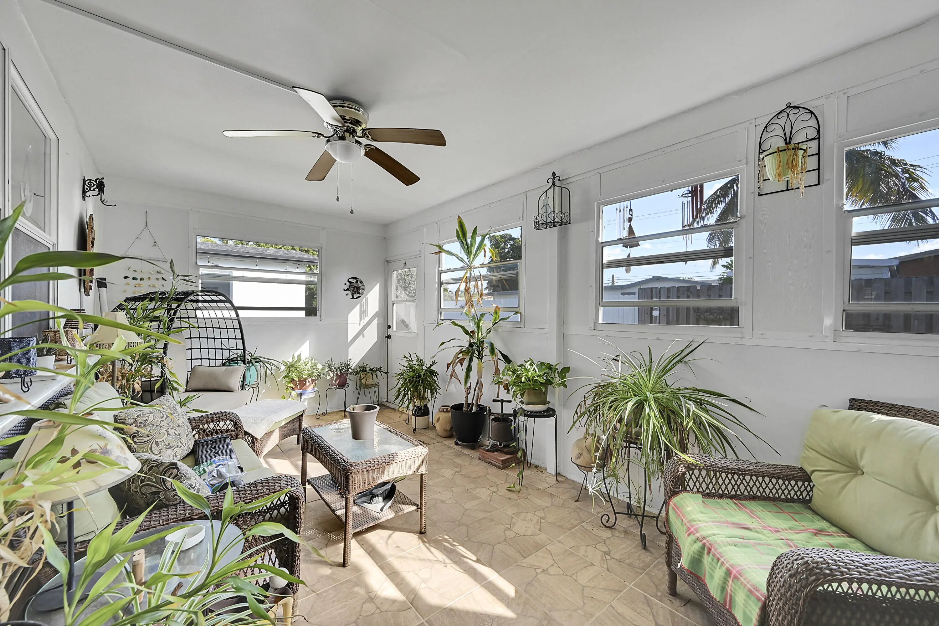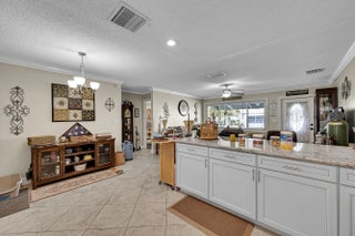 Located in the desirable 55 plus community of Paradise Gardens II, this updated single family home offers a bright, spacious setting with an inviting open concept design. The neighborhood is known for its peaceful surroundings, natural green spaces, and canals, along with a variety of amenities that include a heated pool, clubhouse, game room, and space to enjoy the Florida lifestyle. Inside, the home provides approximately 1,121 square feet of living area with two bedrooms, two full baths, and a single car garage equipped with a washer and dryer. The kitchen features white cabinetry, a generous island, granite countertops, and stainless steel appliances. An enclosed sunroom offers extra room for relaxation, and the backyard adds a nice outdoor touch. Low quarterly HOA.