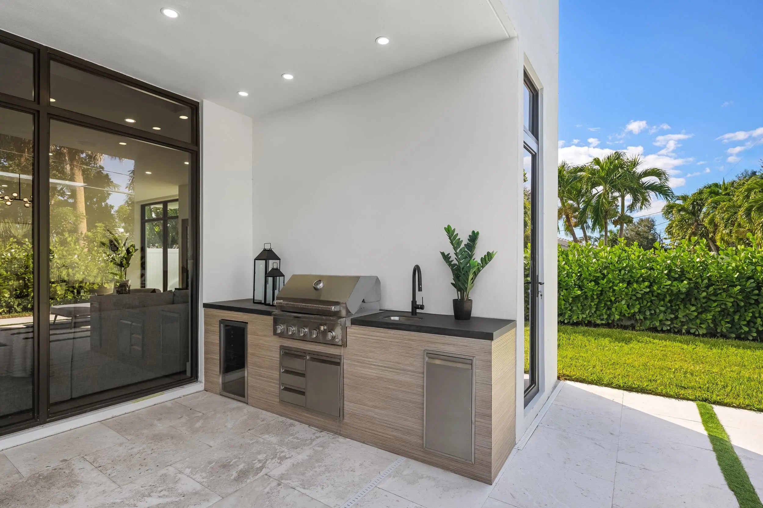 This new construction estate in prime East Boca Raton offers more than 5,000 sq. ft. of refined living space with modern architecture and resort-style amenities—an exceptional value for a move-in-ready residence in one of the area's fastest-appreciating communities. Designed for both everyday living and entertaining, the open-concept main level features double-height ceilings, custom cabinetry, and sophisticated finishes throughout. The home includes five bedrooms, six full bathrooms, one powder room, a private office, fully built-out closets, and a complete smart-home system with Sonos speakers, full camera coverage, and Wi-Fi access points. The backyard serves as a private retreat with a large pool and spa, full summer kitchen, covered cabana bath, and a spacious terrace ideal for outdoor living. An oversized two-car garage adds convenience and storage. Perfectly located in the heart of East Boca Raton, the property is minutes from Boca Beach, Mizner Park, Royal Palm Place, Restaurant Row, top-rated schools, and offers quick access to I-95, Town Center Mall, and Boca Raton's private executive airport. The information published and provided including but not limited to prices, measurements, square footages, lot sizes, features, finishes, and calculations are subject to errors, omissions or changes without notice. All such information should be independently verified. All parties should perform their own due diligence to verify all information.