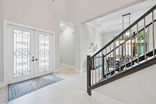 Built in 2023, this exceptional Vasari model is ideally situated on a rare long-lakefront homesite, offering some of the most desirable and expansive water views in the community. This spacious floor plan features 5 bedrooms, 5 and a half bathrooms, a 3-car garage, a club room, a large loft, and an additional office/craft room on the second floor, providing incredible flexibility for today's lifestyle needs. Thoughtfully upgraded, the home showcases designer finishes including custom wallpaper, curated lighting, and enhanced ceiling fans. The open-concept kitchen designed flows seamlessly into the great room and casual dining area, with a formal dining room nearby for gatherings and entertaining. The first floor includes the primary suite with serene lake views and direct patio access, plus a guest bedroom and full bath, offering convenience and comfort for visitors or multi-generational living. Upstairs, the layout includes three en-suite bedrooms, a spacious loft, and a dedicated office/craft room. Outdoor living is a highlight, featuring a covered travertine patio, a private pool and spa with outdoor kitchen, and a large second-floor balcony overlooking the long lake, creating an impressive backdrop for entertaining and everyday enjoyment. Additional features include impact windows and doors, a three-car garage, fenced in backyard and an easement on the west side for added privacy and green space. Located in highly desirable "Artistry" built by Kolter, this manned-gated community offers resort-style amenities Incuding a state-of-the-art clubhouse, fitness center, gorgeous community pool, sports courts, and walking paths. This residence offers an unmatched combination of modern luxury and premier lakefront living in Palm Beach Gardens just short drive to highways, turnpike and South Florida beautiful beaches!