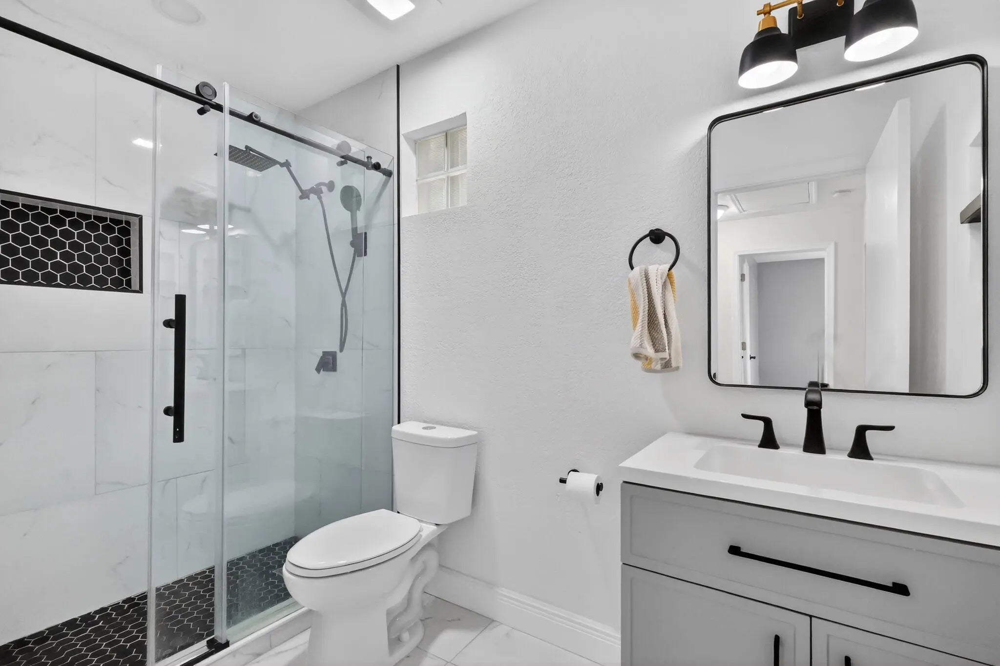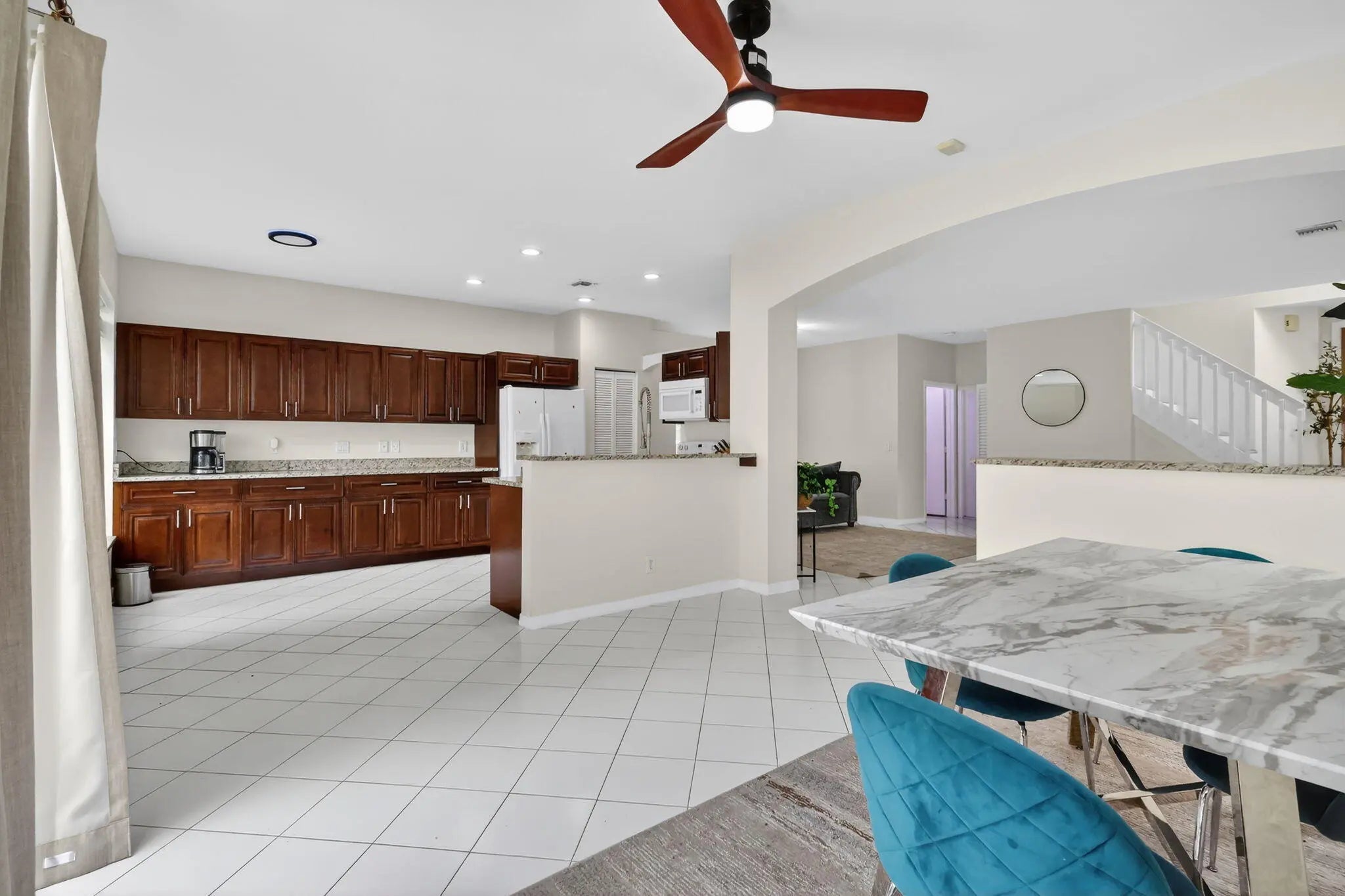 Experience modern South Florida living in this 2 story, single family home featuring 4 bedrooms, 2.5 bathrooms with a spacious 2 car garage, ideally positioned on a premium corner lot directly across from Lake Charleston Park in The Islands at Lake Charleston, one of Lake Worth's most sought after communities. This residence offers contemporary comfort, flexible living spaces, and an exceptional location near top rated schools, recreation, and the full array of Lake Charleston amenities. The home provides outstanding potential for personalization while showcasing valuable upgrades, including a newly finished epoxy garage floor, a fully fenced backyard, renovated bathrooms, new flooring on the 2nd floor and a versatile outdoor area ideal for patio furniture, BBQing, a kid's playground, or a used for the fur babies. The 1st floor features an inviting open concept layout with bright natural light throughout the living room, formal dining room, and eat in breakfast area off the kitchen. The kitchen offers excellent functionality with granite countertops, white appliances, ample wood cabinetry, recess lighting and a side pantry for storage. A breakfast bar and eat-in area provide additional dining options, while sliding glass doors open directly to the backyard, creating a seamless indoor-outdoor flow ideal for entertaining. The 1st floor is complete with a 1/2 bathroom and a generous walk-in storage area under the stairs. Upstairs, all 4 bedrooms are conveniently located alongside a dedicated laundry room equipped with a washer and dryer. Stylish grey laminate flooring flows throughout the 2nd level. The fully renovated guest bathroom features a sleek walk-in shower with frameless glass doors, matte black fixtures, decorative tile accents, and a modern vanity. The spacious master suite includes a tray ceiling in the bedroom, 2 closets, 1 walk-in and one reach-in with built-in organizers and a stunning spa-inspired primary bathroom. This luxurious retreat showcases oversized marble-style porcelain tile, a large glass-enclosed shower with gold rainfall fixtures and a handheld sprayer, a freestanding soaking tub beneath a bright window, and dual vanities with bold black cabinetry and gold-framed mirrors. This home offers exceptional value in one of the most sought-after communities in Lake Charleston. Enjoy close proximity to parks, walking paths, top-rated schools, and the best of South Florida lifestyle. Lake Charleston in Lake Worth, Florida is a highly sought-after master-planned community spanning more than 945 acres, featuring a collection of distinctive neighborhoods interconnected by over 220 acres of scenic lakes. This beautifully designed community offers an exceptional lifestyle with a wide range of residential and recreational amenities to meet the needs of every household. Ideally located, Lake Charleston is within walking distance of top-rated schools and just minutes from premier dining, shopping, entertainment, and outdoor activities. Residents enjoy professionally landscaped pathways, seven stocked lakes perfect for fishing, 2 swimming pools, 2 tennis courts, basketball courts, volleyball courts, playgrounds, and a soccer field. The community also includes the expansive 9-acre Lake Charleston Park, offering lighted baseball and softball fields, a children's playground, snack stands, and restroom facilities.