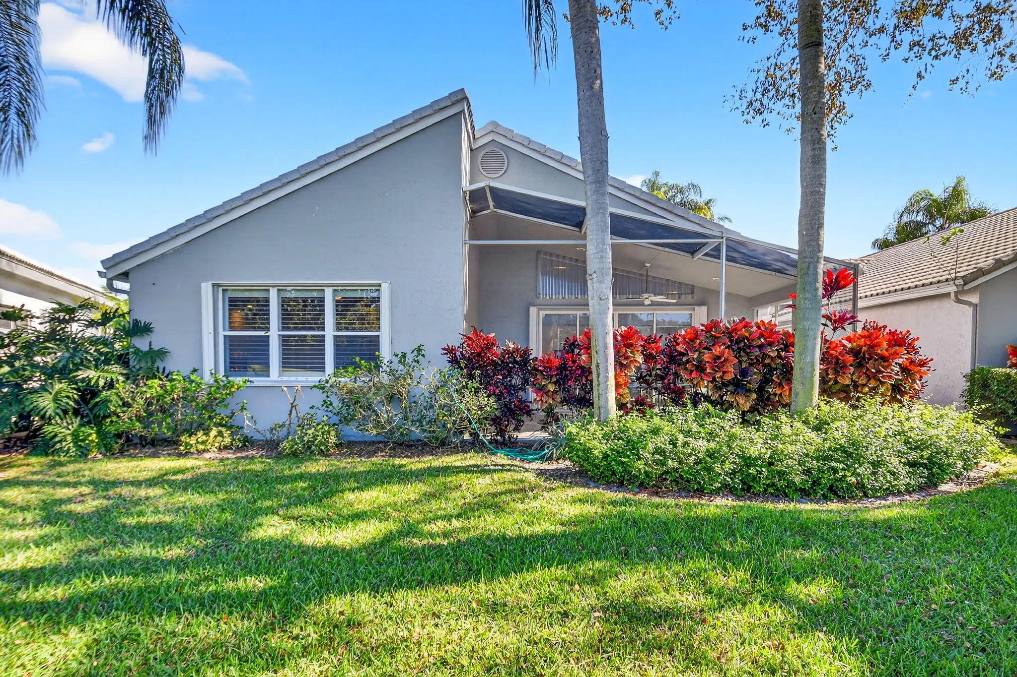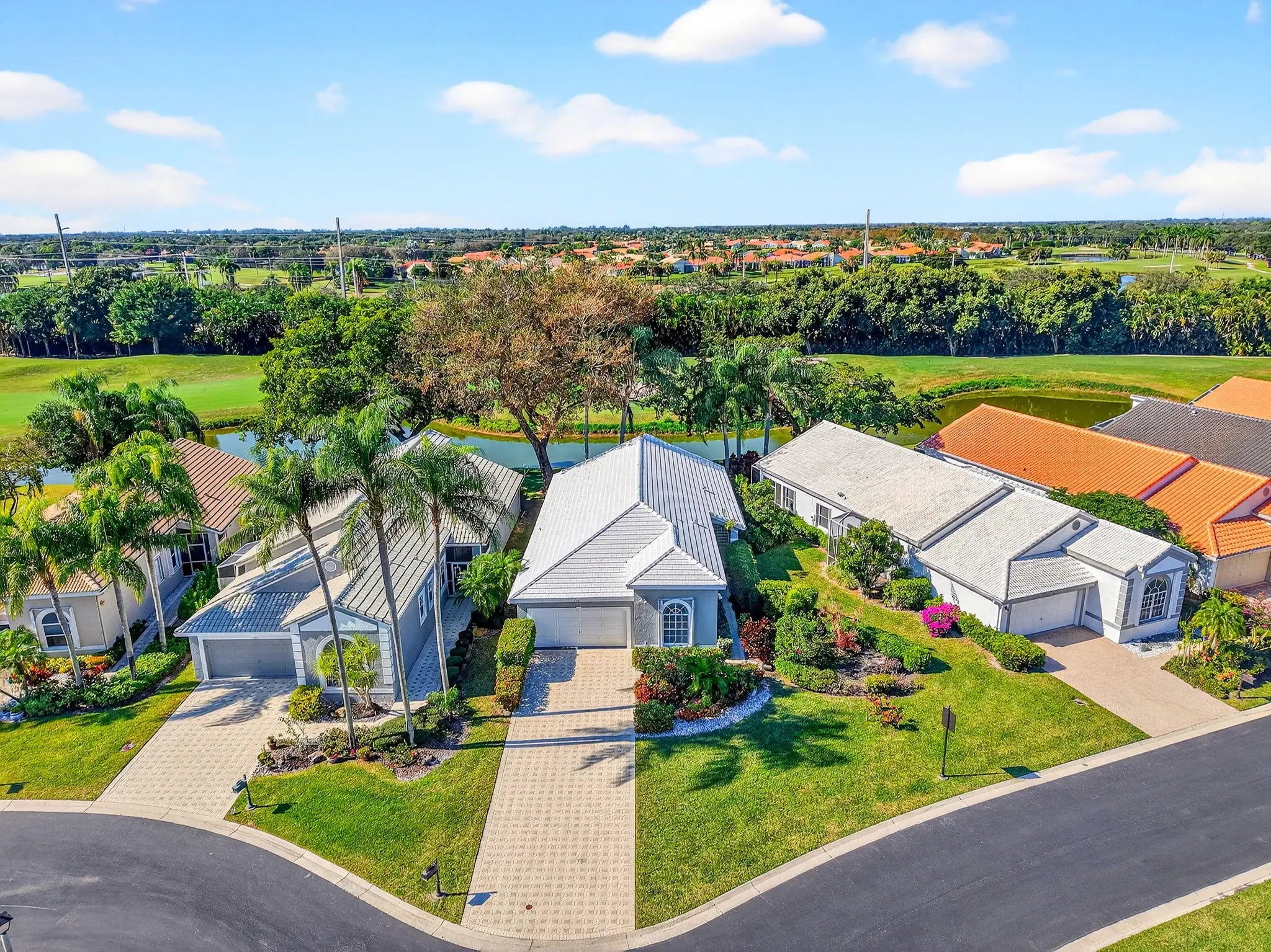 NEW ROOF & HVAC (2025)! This freshly painted and well-maintained 3-bedroom, 2-bath home is tucked away on a quiet cul-de-sac in the highly desirable Hampton Fairways section of Indian Spring Country Club—a gated 55+ community where membership is optional and peace of mind starts at the manned security gate. Enjoy golf course and water views from your screened-in lanai, perfect for relaxing mornings or tranquil evenings. The home features accordion hurricane shutters, a 2017 water heater, brand-new HVAC, and a brand-new French door refrigerator. The kitchen was tastefully updated in 2014, featuring granite countertops, a center island, and a smart layout for both entertaining and everyday living. The third bedroom, with elegant French doors, offers flexible use as a den, office or guest room tailored to your needs. The community clubhouse, heated pool, spa, full kitchen, and meeting room are all within easy walking distance, adding convenience and a vibrant social atmosphere to this exceptional home. Don't miss your chance to own a move-in-ready property with major upgrades, and a prime location in one of Boynton Beach's most sought-after active adult communities.