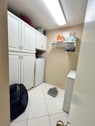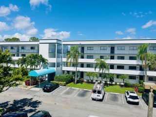 Enjoy the expansive waterview from the balcony of one of the largest 2 bedroom 2 bath condos in the community. Can come furnished/turnkey. 1330 sq ft. includes large renovated eat in kitchen with granite counter tops, modern stone backsplash, large built in food pantry, filtered water and ice maker in the french door refrigerator, deep single sink with disposal and pull down sprayer. Master suite features ensuite bathroom with walk in shower, grab bars, glass doors, separate vanity area and walk in closet. Sliding glass doors lead to balcony. Full sized laundry room that can be an office/workshop and or storage. Extra storage unit by the elevator. Split bedroom floor plan with ample sized guest bedroom and full bath. Assigned parking in front of building along w/guest parking. A/C 2019. Amenities include 3 heated pools, sauna, whirlpool, and hot tub. Billiards, tennis, pickleball, bocce, shuffleboard, 2 fitness center, planned activities, excursions and more. 10 miles to Lake worth Beach. Close to turnpike, shopping and medical.