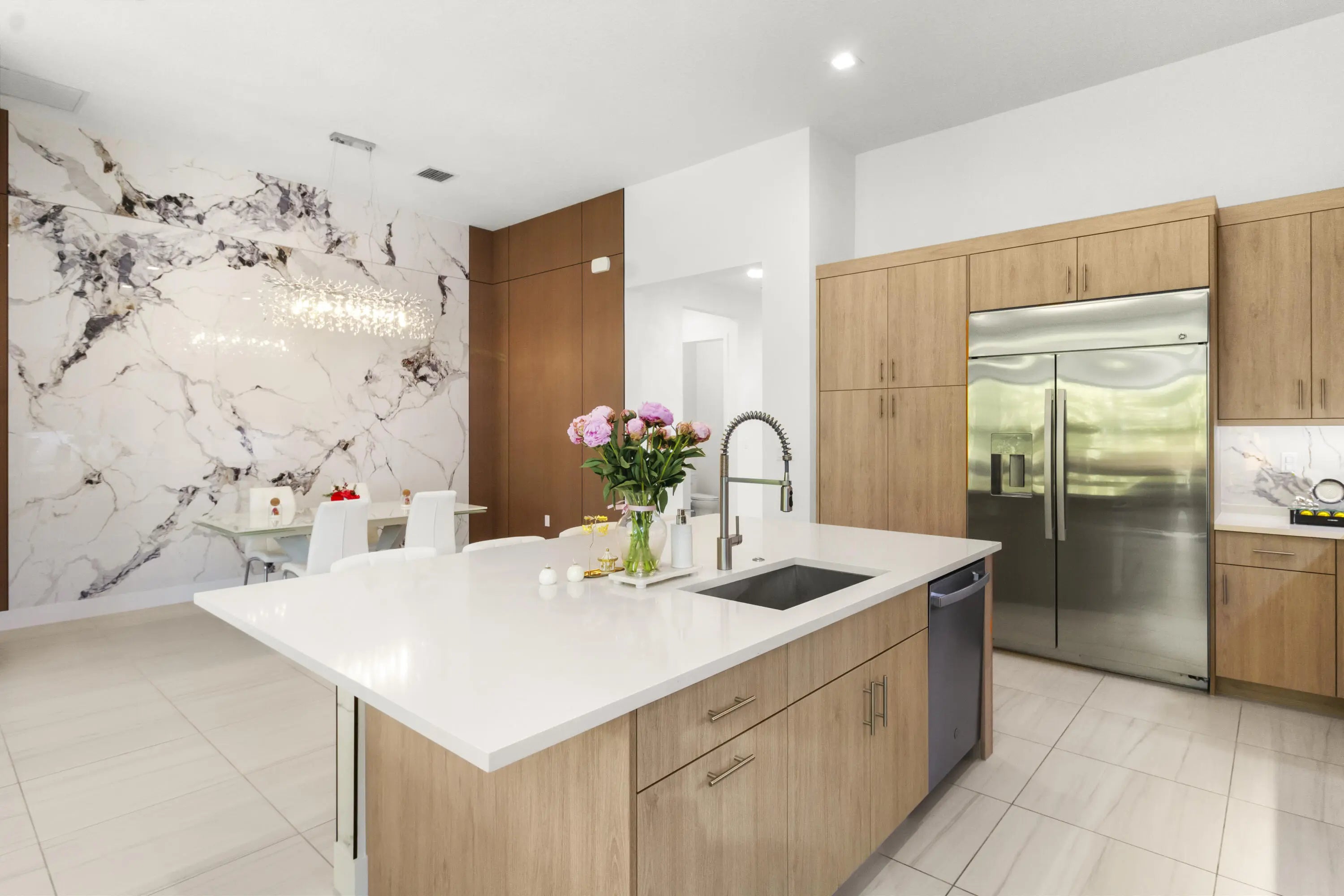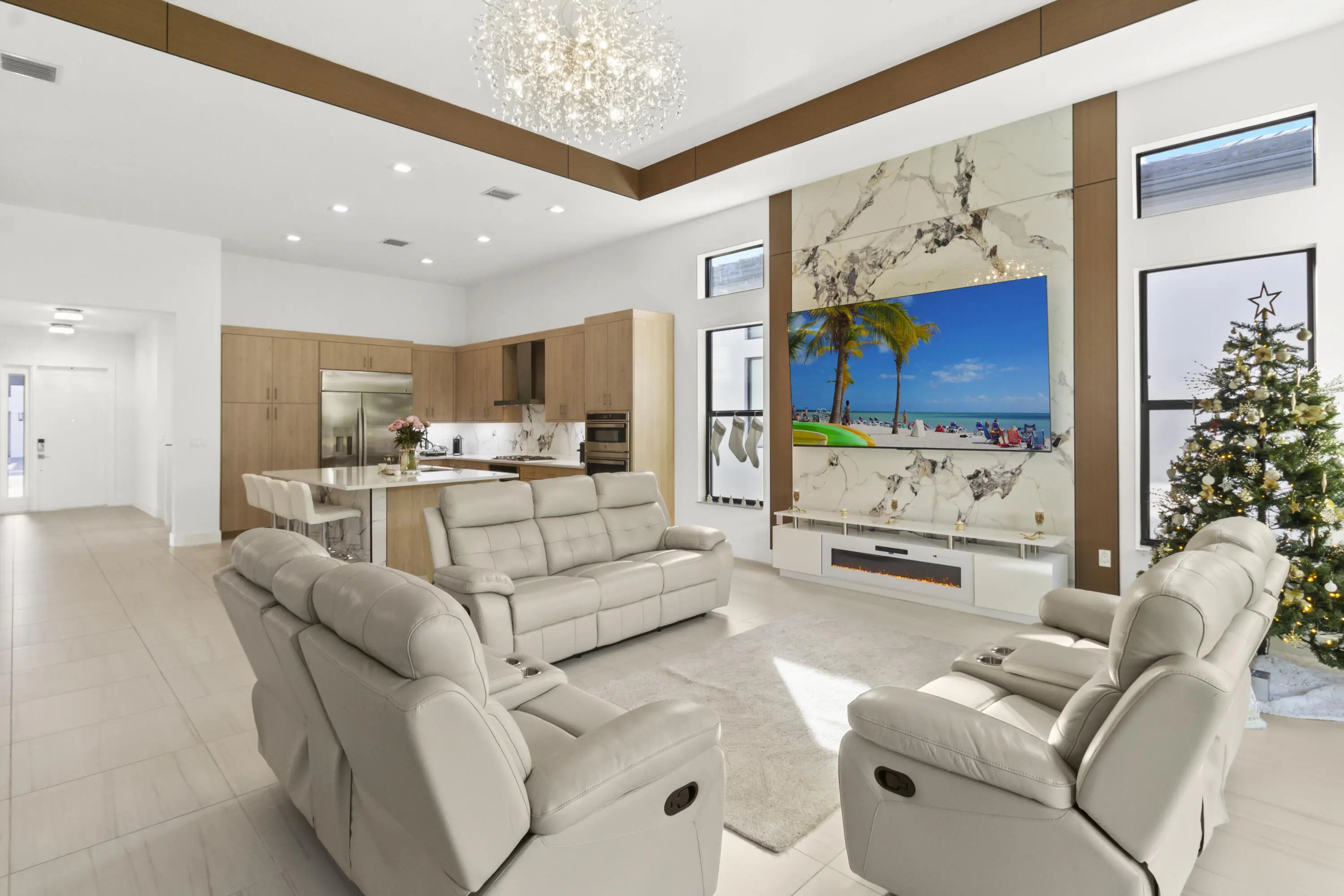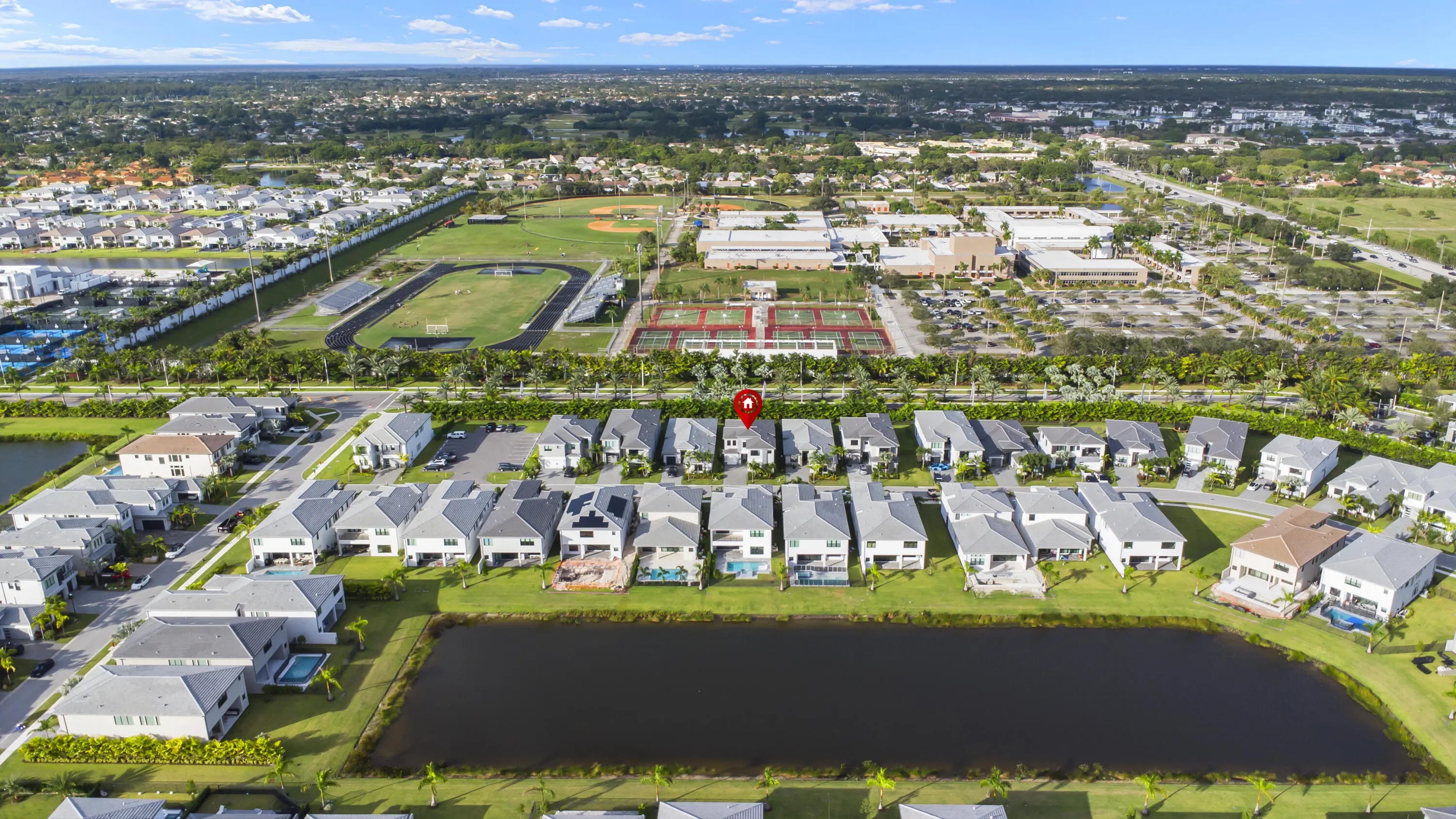 Skip the wait for new construction and move right into one of Boca Raton's most desirable modern luxury communities. This impressive two-story GL Homes residence features soaring ceilings and a dramatic staircase, setting the stage for elegant living. With 5 oversized bedrooms, 5.1 bathrooms, a spacious loft, and a 3-car garage, the home offers approx. 3,800 sq. ft. of bright, sophisticated space. Designed for both comfort and style, the open layout is perfect for entertaining or relaxing. Enjoy resort-style amenities, top-rated schools, and the vibrant Boca Raton lifestyle—all within this exclusive GL Homes community. Beautifully upgraded throughout, the home includes two new AC units, a new washer and dryer, custom built-in closet shelving, an elegant bar area, refined stair finishes, and a covered patio equipped with gas and water hookups. The property is also pool-ready, with all necessary connections and permits already paid and in place. The first-floor primary suite offers desirable privacy and convenience, while the heart of the home showcases abundant natural light, modern design elements, and a gourmet kitchen featuring an oversized island and luxurious designer finishes. Residents of Lotus Edge enjoy an unparalleled lifestyle with a 39,000 sq. ft. clubhouse, gourmet restaurant, full fitness center, tennis and pickleball courts, and a dynamic calendar of social eventsall within a secure, gated community. This is a rare chance to own a brand-new, move-in-ready luxury home in Boca Raton's most exciting new enclavean offering not to be missed.