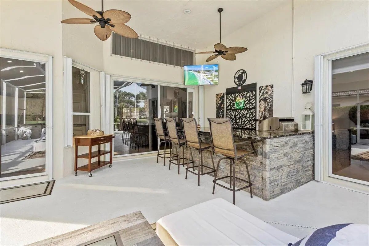 Fabulous Pool Home in ''Mystic Pines'' at PGA Village offer beautiful Golf & Lake Views! Features CBS Construction, NEW ROOF Nov. 2025 & gutters, extended paver driveway, 2.5 Car Garage & Great Curb Appeal! Hosting 2 BR's, Large Den with built in Murphy Bed, 2 updated Baths & Beautifully RE-DONE! Updated Open Kitchen, Stainless steel appliances, new cooktop & oven 2026, breakfast Nook, Large Island & pantry. Vaulted ceilings, Plantation Shutters, custom moldings, trim work & natural lighting. Great Room w/ sliding glass doors to lanai. Spacious Primary Suite offers wood flooring, custom closet doors & wonderful updated SPA like Master Bath, LG shower, dual sinks & room for a stand alone tub. Enjoy Stunning Golf & Lake Views of the 17th hole of Legacy Golf Course. New Pool Pump 2026. Outdoor living where you can enjoy your own private pool, hot tub & large Bar & summer Kitchen. If you like to entertain don't miss this one! Roof: 2025, A/C: 2021, Water Heater: 2023, Hurricane shutters included. HOA includes Manned gated security, Lawn Care, common areas, cable, internet & The Island Club offering something for everyone. Resort Style pool, fitness center, card room, craft room, ballroom, library, billiards, butterfly garden, playground, tennis, pickleball, clubs, entertainment, travel & more! PGA Village has 3 Champion golf courses you can join plus open to the public to play & The Legacy Golf Course (Private membership). You could live in PGA and enjoy the beautiful golf courses but membership is not mandatory to live there. Located close to shopping, restaurants, doctors, hospital, schools and even home of the NY Mets Spring Training! Only 45 minutes from Palm Beach airport.