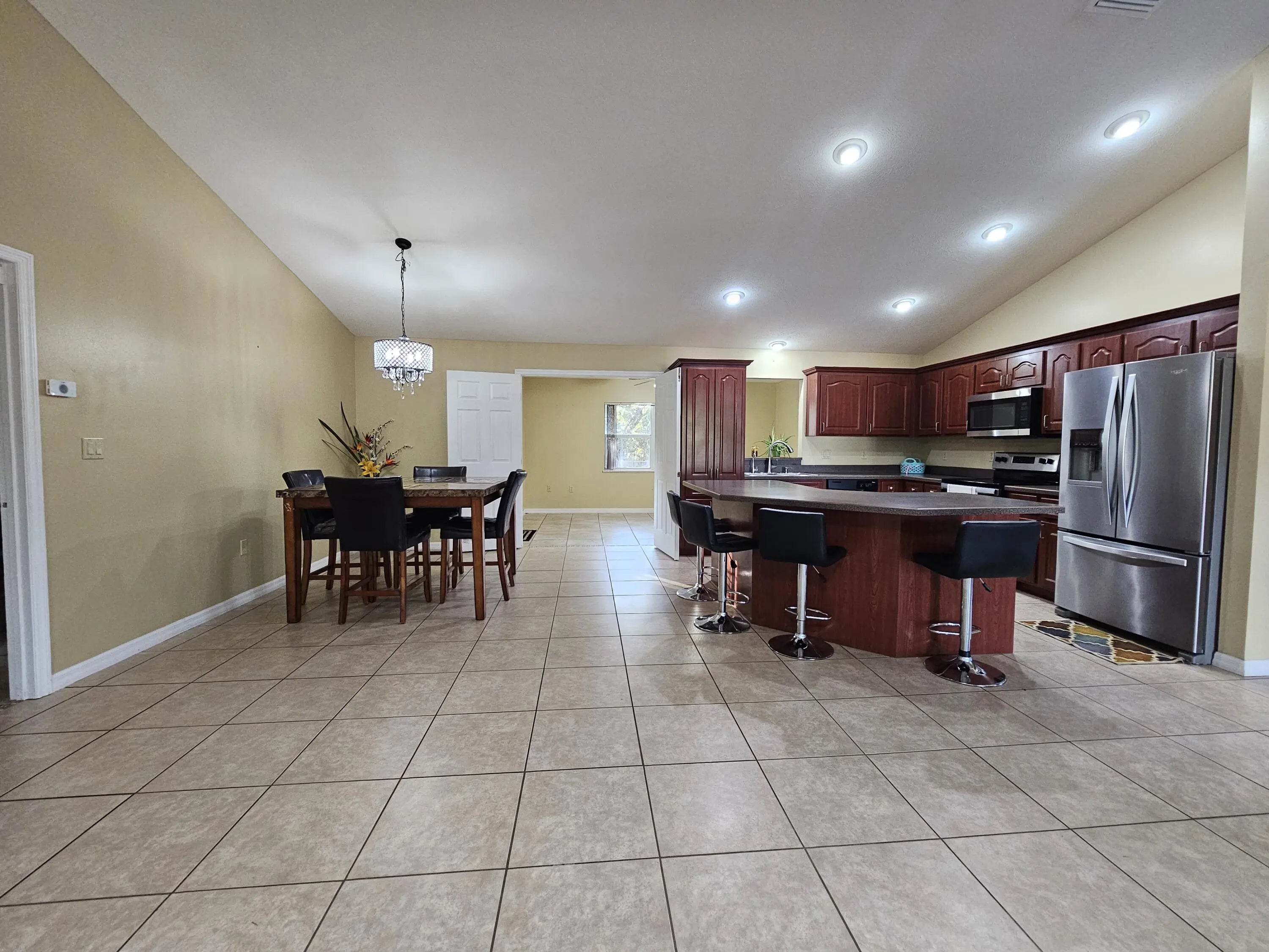 Charming~ CBS 4-bedroom, 2-bath home with 2-car garage in a great location and NO HOA! Sits on 0.43 Acres. This property offers a spacious split floor plan with ceramic tile throughout and generously sized rooms. Enjoy peace of mind with a water well featuring an excellent softener system, reverse osmosis, and septic. Home includes stainless steel appliances (2019), an A/C with a new compressor installed in 2021, and fresh interior paint. An alarm system with cables and connections is already in place. The property is fully enclosed with chain-link fencing and also features an additional water well and pump with 5 sprinklers for irrigation~perfect for keeping the yard lush. High and dry location. Call for a free tour today!
