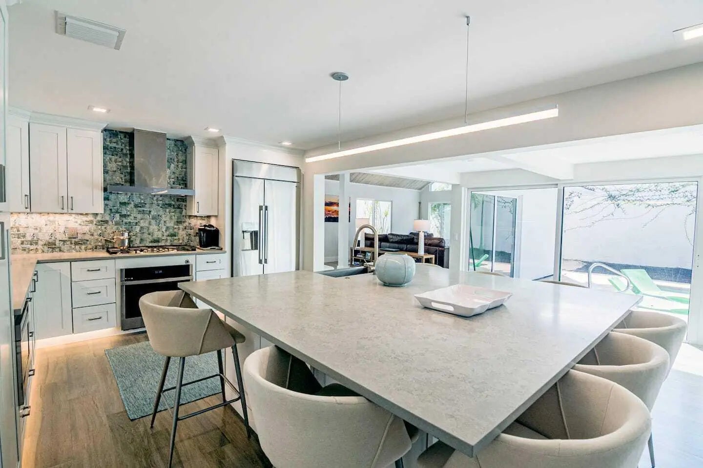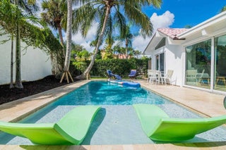 Walk to Beach! Private pool/spa home in a gated community near Jupiter Beach. Fully renovated in a ''salty contemporary'' style with new tile flooring, impact windows/sliders, dim LED lighting, LoveSac furnishings, and Prana king/queen mattresses with new linens. Enjoy 4 smart TVs with HBO Max, YouTube, and Netflix. Kitchen features Monogram/Profile appliances, gas cooktop, water filtration, and tankless hot water. Detached cottage offers optional 3rd bedroom; rent negotiable for 3-month stays or if unused. Private outdoor area includes pool, spa, putting green, grill, fire pit, and automatic gate to motor court. Available 1/15/2026.