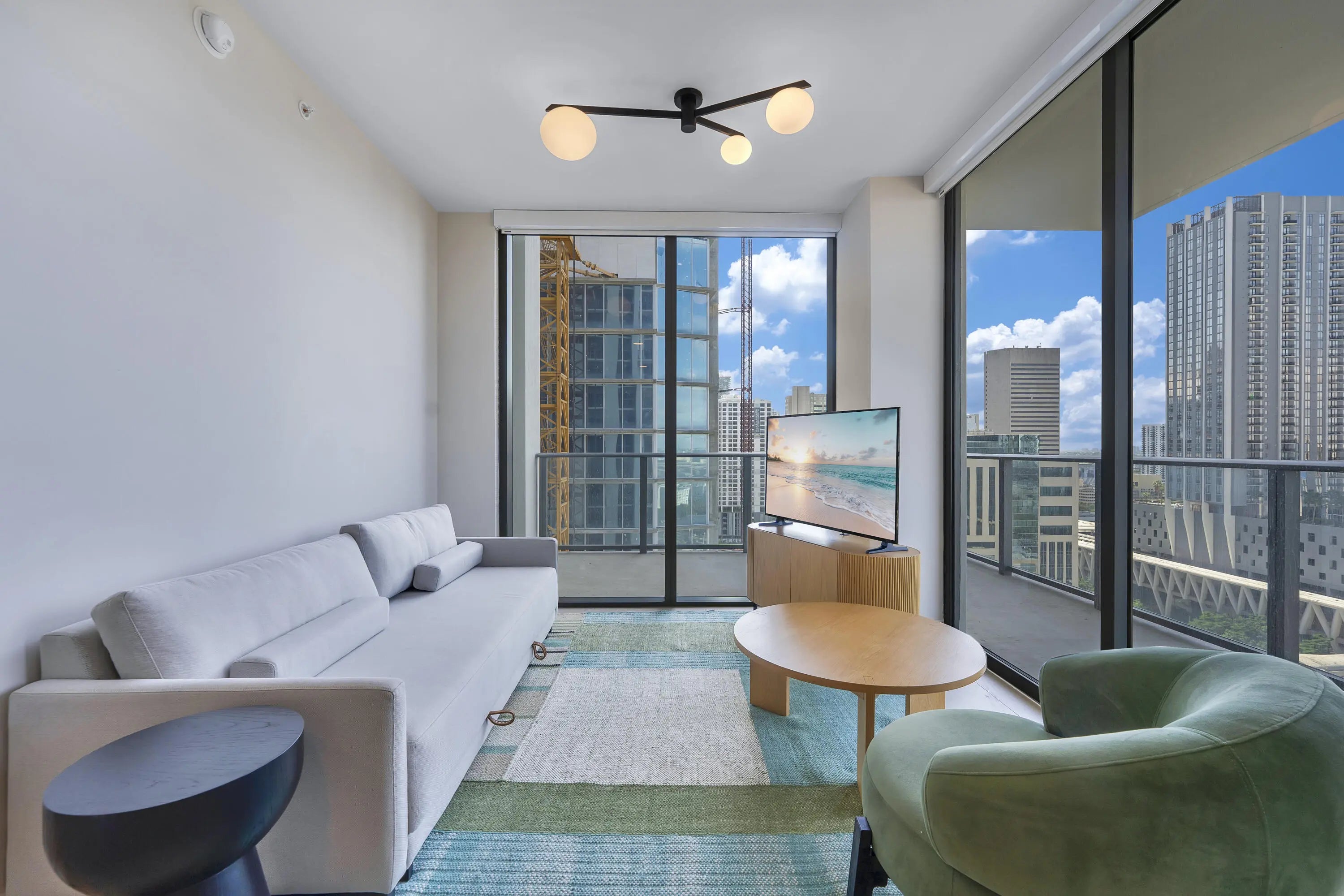 Short Term Performance Update AVAILABLE! Be among the first to enjoy this brand-new, fully furnished 2 bd, 2 ba residence. Daily rentals permitted with low HOA fees. Unit has an open layout, floor to ceiling windows, and a spacious extended L-shaped balcony with sweeping city skyline views. Delivered turnkey with a European-style kitchen, Bosch appliances, in-unit washer and dryer, smart lock, smart home features, automatic blinds, and internet included in the HOA. Pets welcome. The Crosby offers a rooftop pool, fitness center, spa with sauna + cold plunge, movie & resident lounge, coworking spaces, game room, rooftop rest./bar, and 24/7 concierge, security, and valet. One of the city's fastest-growing districts, just steps from Brightline Station, Kaseya Center, Bayside & More