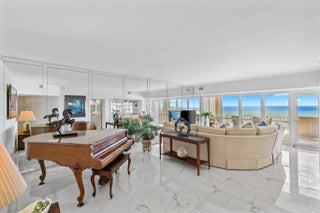 OCEANFRONT PENTHOUSE (leaseback option) with a rare through-building floor plan. DEEDED 3,015 SF total with 2,150 SF under air + 388 SF Private SE & NW balconies with Sunrise-to-Sunset views of the Ocean, Intracoastal and 25 miles to Fort Lauderdale. LUXURIOUS 738 SF primary suite with dressing room, walk-in closet, and spa-style bath. KING SIZED 290 SF guest suite offers privacy or flex/office space. MODERN sophisticated vibe with porcelain tile, marble & quartz finishes, and 9-ft ceilings. SECURITY is multi-tiered 24/7 manned, keyed elevator, impact glass, and side-by-side garage parking. OCEANFRONT LIFESTYLE on 38 acres with private beach, marina for 50' yachts, pools, spas, tennis/pickleball, gyms, EV charging, putting green and much more.