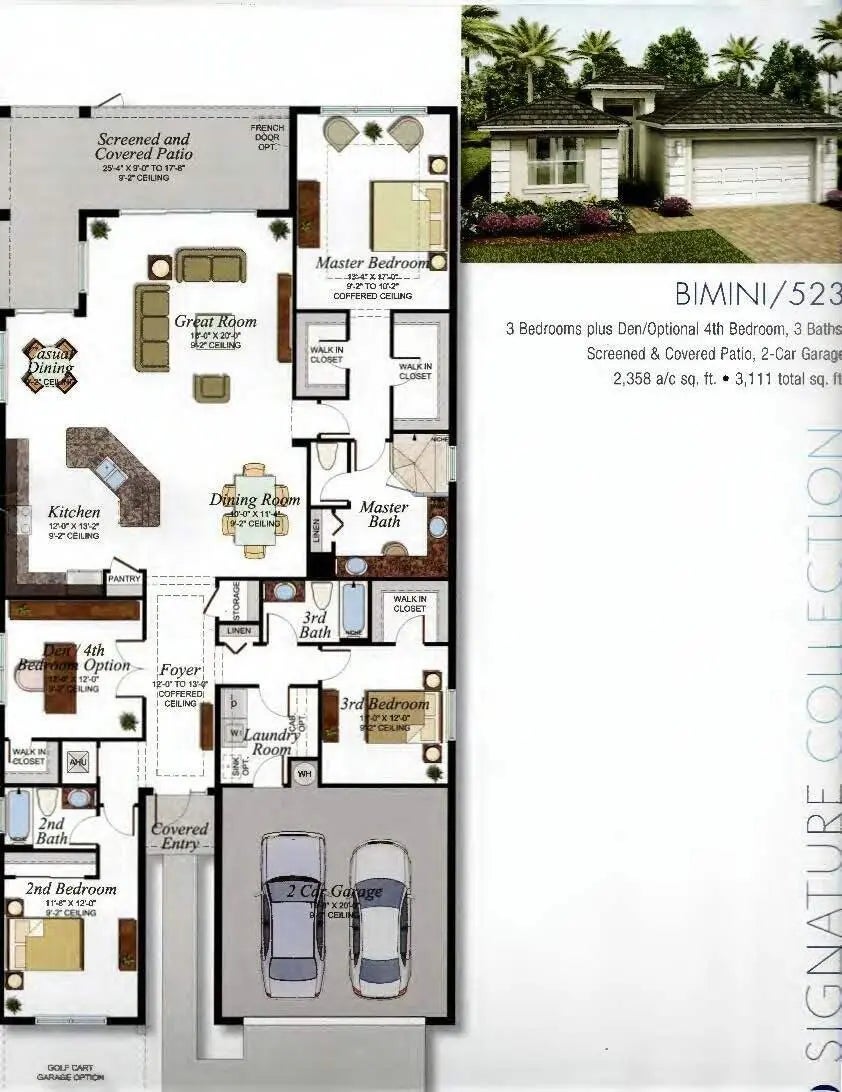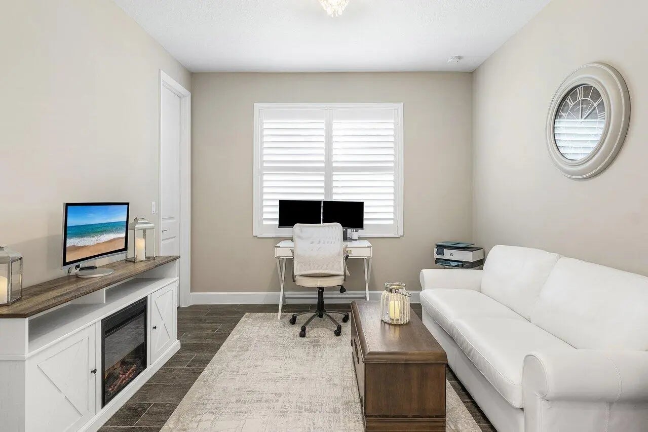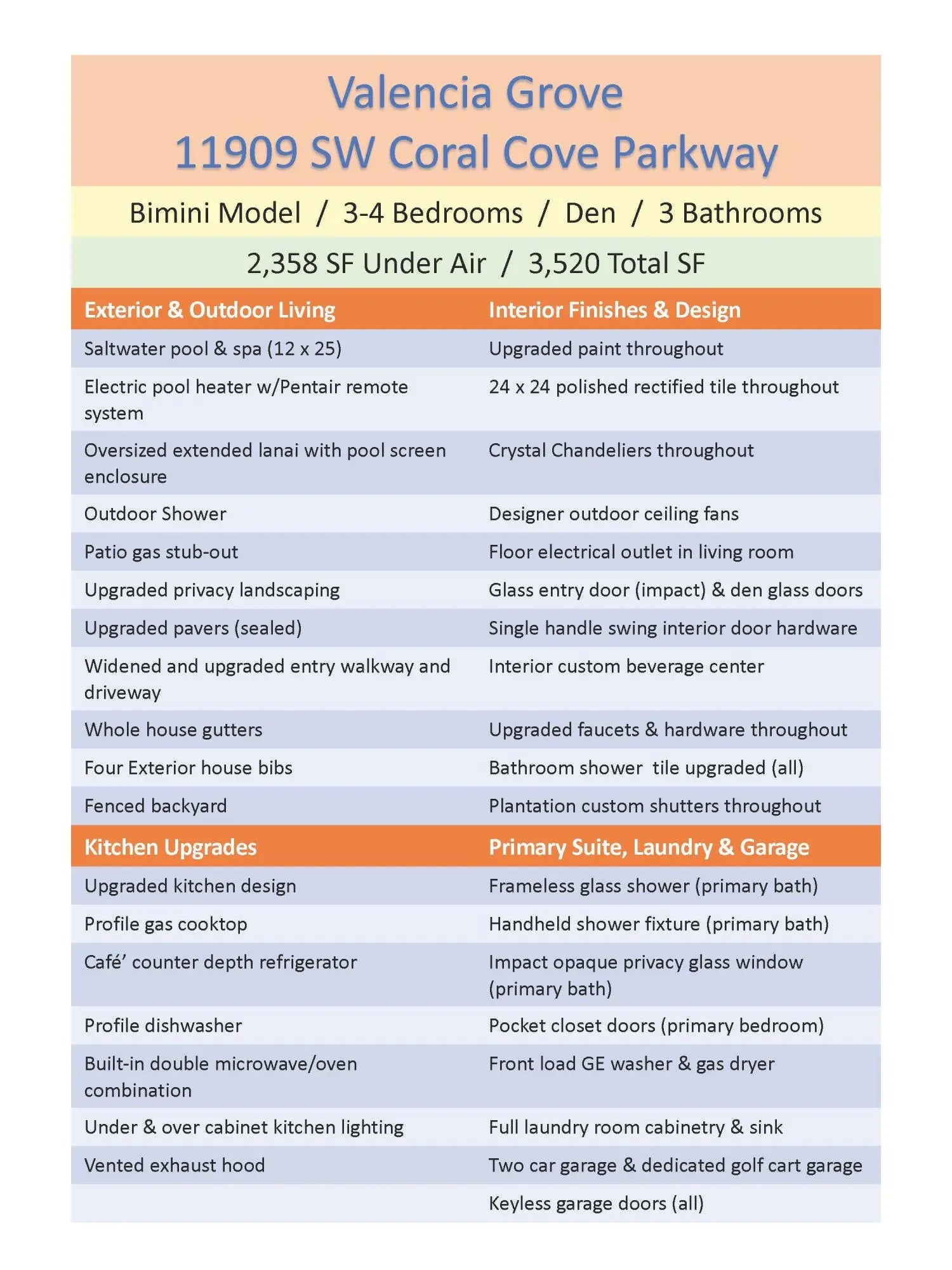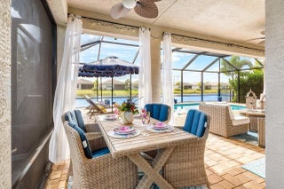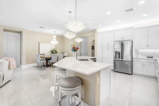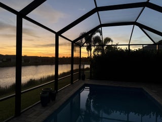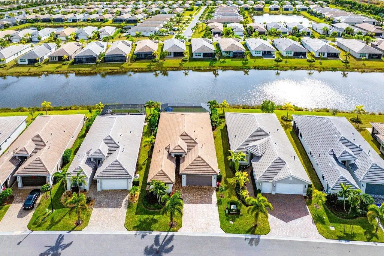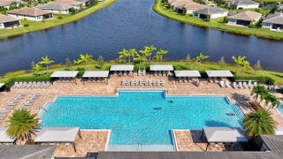 GORGEOUS lakefront living with a true WOW factor in this highly sought-after 2023 Bimini design, offering tranquil water views and sparkling pool and spa outdoor living. Situated on a quiet, low-traffic cul-de-sac, this exceptional residence includes approximately $280,000 in upgrades and delivers a private, fenced, and screened backyard oasis complete with a custom saltwater pool and spa, oversized pool patio, gas stub-out for a future outdoor kitchen, and outdoor shower. Built by award-winning GL Homes, this Bimini design features 2,358 square feet under air and approximately 3,520 square feet of total indoor and outdoor entertaining space, showcasing open-concept living with designer finishes throughout. The gourmet white kitchen is a standout, featuring a gas Profile cooktop, upgraded appliances, an oversized quartz island with seating, custom built-in beverage center, walk-in pantry, formal dining area, and breakfast nookperfect for both everyday living and entertaining. The flexible floor plan offers 3 to 4 bedrooms, a den or office with wood-plank tile flooring, and three full bathrooms. Additional highlights include large-format upgraded polished tile throughout, impact-resistant windows and doors, custom paint, upgraded plumbing fixtures, special-order designer lighting, and white plantation shutters throughout. The primary suite features a frameless glass shower with handheld fixture, pocket doors at the custom closet, and a spa-like, retreat-inspired atmosphere. The well-appointed laundry room includes full cabinetry and an upgraded front-load washer and gas dryer. The garage configuration includes a two-car garage with ceiling and attic storage, plus a dedicated golf cart garage. Dimensions for the 2 car garage are 19.2 x 20, and the golf cart garage is 8.2 x 12. Low HOA fees and NO CDD fees add to the appeal of this exceptional home and community. Located within the luxury, gated 55+ community of Valencia Grove at Riverland, residents enjoy world-class amenities and an active, social lifestyle at their own pace. Community highlights include a full-service restaurant and outdoor bar, the inviting River Fresh Café offering coffee, light fare, and a casual place to gather with friends, a stunning 34,000-square-foot clubhouse and resort-style pool, miles of walking, biking, and golf-cart paths, and the Sports & Racquet Club featuring a 51,000-square-foot Wellness & Fitness Center with over 50 weekly classes, personal training, massage therapy, and nutrition services. Riverland is also home to Florida's largest pickleball complex with 53 courts, along with tennis and bocce facilities. A full calendar of clubs, events, and social gatherings makes it easy to stay engaged and connected. Just minutes away, Tradition Village offers additional dining, shopping, live entertainment, and seasonal events, with a charming golf-cart-friendly lifestyle available for those who choose. The community is also ideally located near Cleveland Clinic Tradition Hospital and Clover Park, home of New York Mets Spring Training, providing exceptional healthcare access and year-round sports and entertainmentcompleting the ultimate South Florida lifestyle.