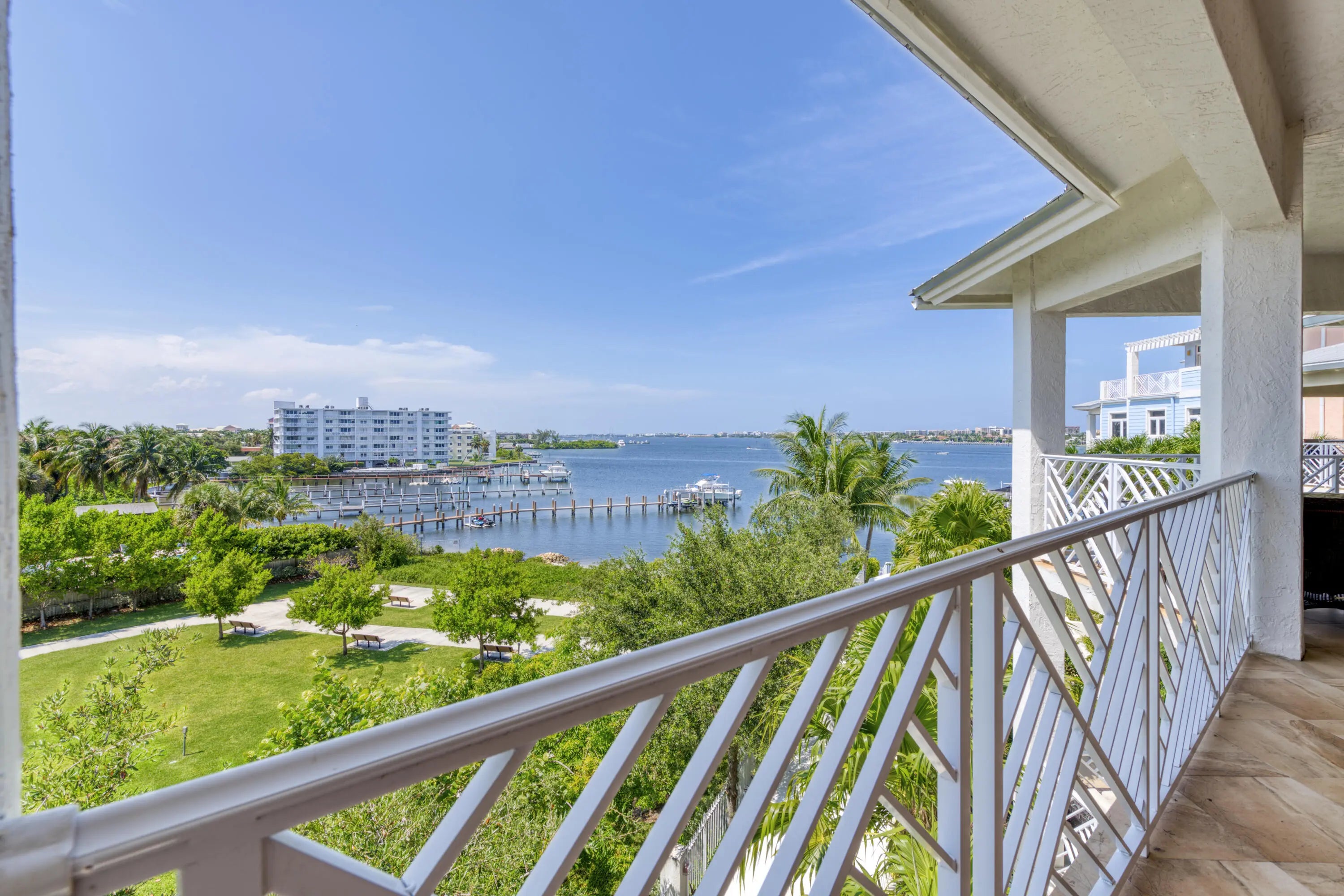 Experience the charm and spaciousness of this uniquely designed Key West-style condominium, thoughtfully laid out to feel like a sprawling 2700 SF single-family home. Perched to capture breathtaking panoramic views of the Intracoastal Waterway, this residence offers a serene and picturesque setting. Feel the elevated living in this stunning three-bedroom residence, where rich hardwood floors flow seamlessly beneath soaring ceilings. The remodeled gourmet eat-in kitchen offers breathtaking water views, perfect for both everyday dining and entertaining. Each room is generously proportioned. Exceptional amenities include Private docks for boating enthusiasts, Fitness center, generous private storage #2, and two dedicated parking spaces in a secure garage. Coastal elegance awaits!
