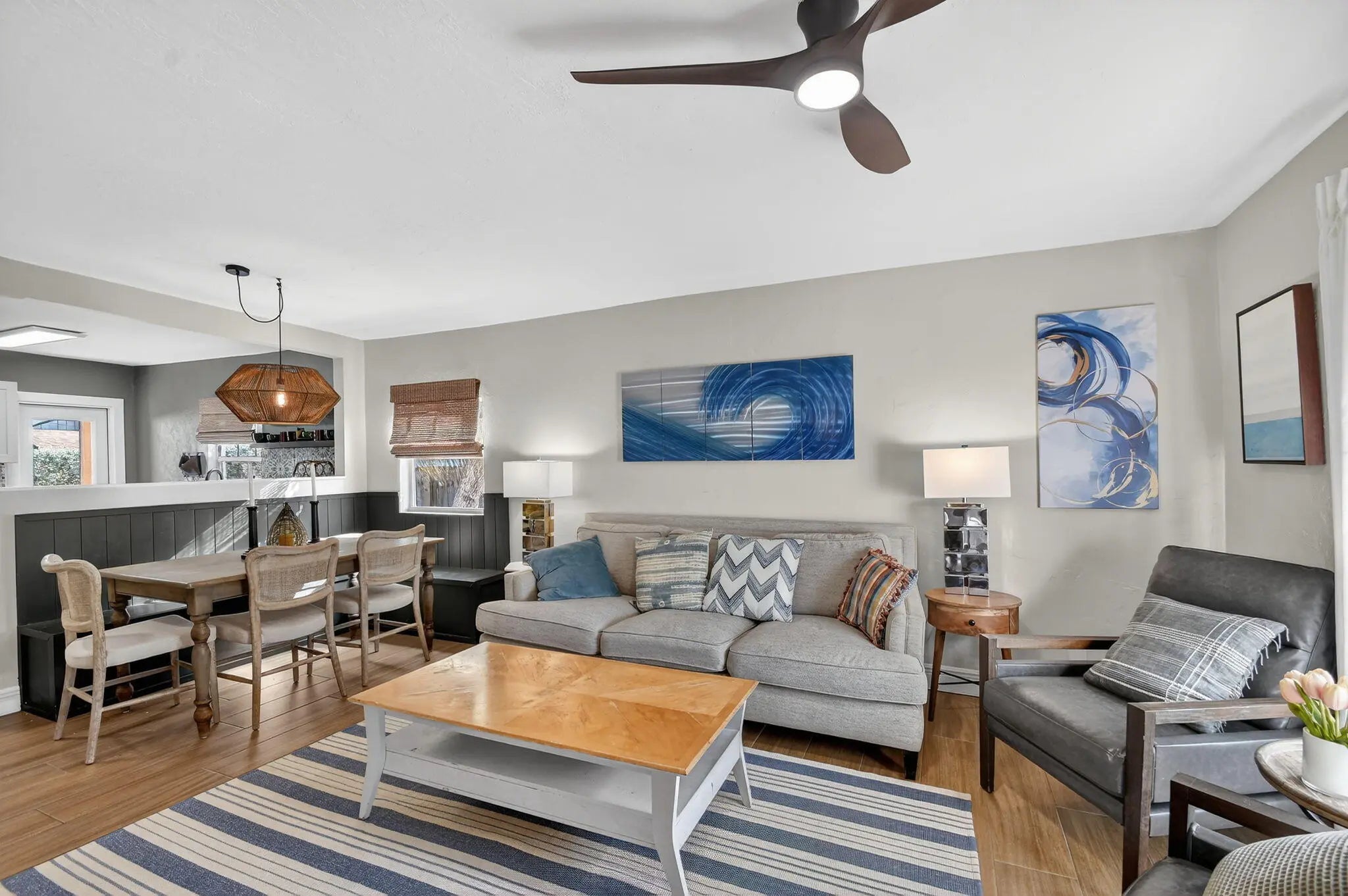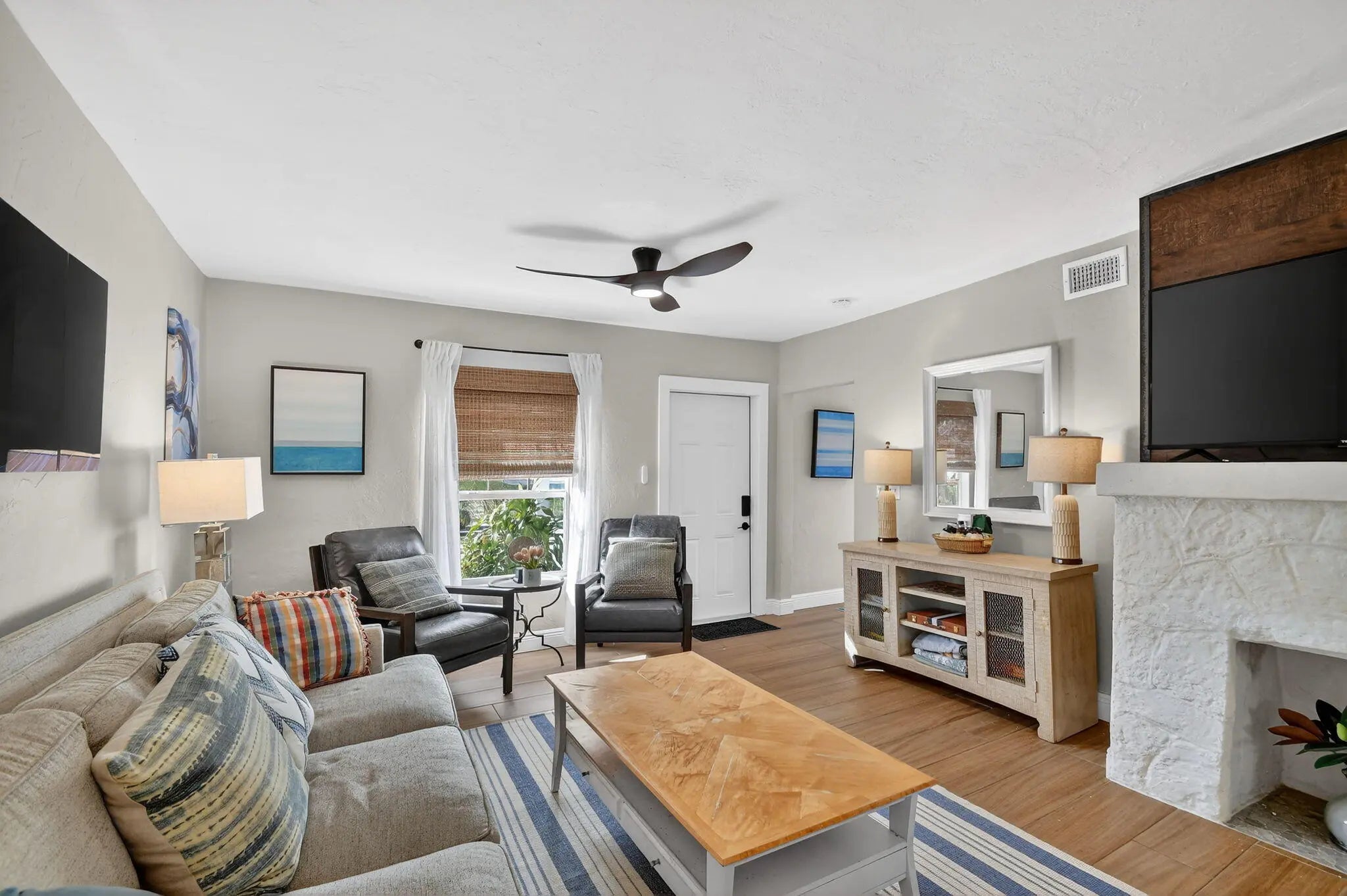 Fully furnished/Turnkey 3 bed 2 mission style home with detached studio apartment just four blocks to shops and restaurants and just a little over 1 mile to the beach currently available from Jan-Apr. This 3-2 main has a split plan with the primary bed & bathroom separated by a great room from the additional 2 beds and guest bath. The main house and the guest cottage are separated by a 6 ft. privacy fence with a gate. The backyard is very spacious with room for r pets to play and enjoy outside dining. The cottage has its own private fenced outdoor space as well and together can be rented as a 4 bed 3 bath. This complex is perfect for you to enjoy a winter retreat just 4 blocks from the downtown entertainment district, Bryant Park and the beaches. Main house is a 3 bedroom 2 bath. Mother-in-law or guest studio is adjacent to the main house connected by a gate in the backyard of the main. The main house has a large completely fenced backyard and the guest house has a separate fenced in backyard. The house and guest cottage can be rented together as a 4 bedroom 3 bathroom or separately. Rented together for the months of Jan - April for $8,450/MO. Separately the 3 bed 2 bath house for $5,950/MO and the studio cottage for $2,500/MO. The house and cottage have 1 off street parking space available each but there is also plenty of street parking adjacent to the property. Both spaces are fully furnished and turnkey - Utilities and internet are included. 60 day minimum stay required and multiple month discount (3-4 months) will be considered.