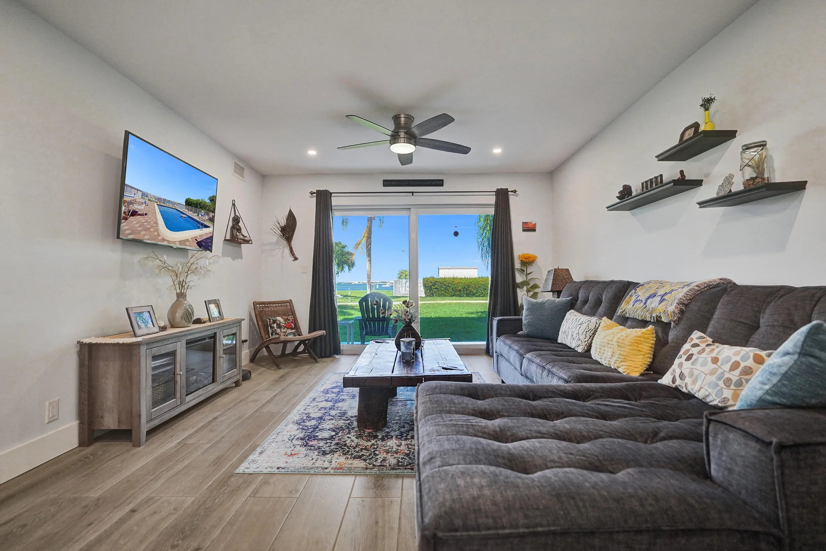 Direct intracoastal views define this stunning 2-bedroom, 2-bath waterfront condo. This first-floor unit offers a true beach house feel, just steps from the pristine sands of Lantana Beach, along with local restaurants and boutique shops. Completely renovated, the home showcases a modern coastal design with bright, airy interiors and high-end finishes throughout. Enjoy peaceful water views from your private patio or unwind by the beautiful community pool for a refreshing swim. Outdoor enthusiasts will love the nearby fishing bridge and nature preserve, perfect for experiencing Florida's natural beauty. Whether you're seeking a serene coastal retreat or a full-time residence with convenient access to everything waterfront living has to offer, this condo is truly a gem. Come see this unit!