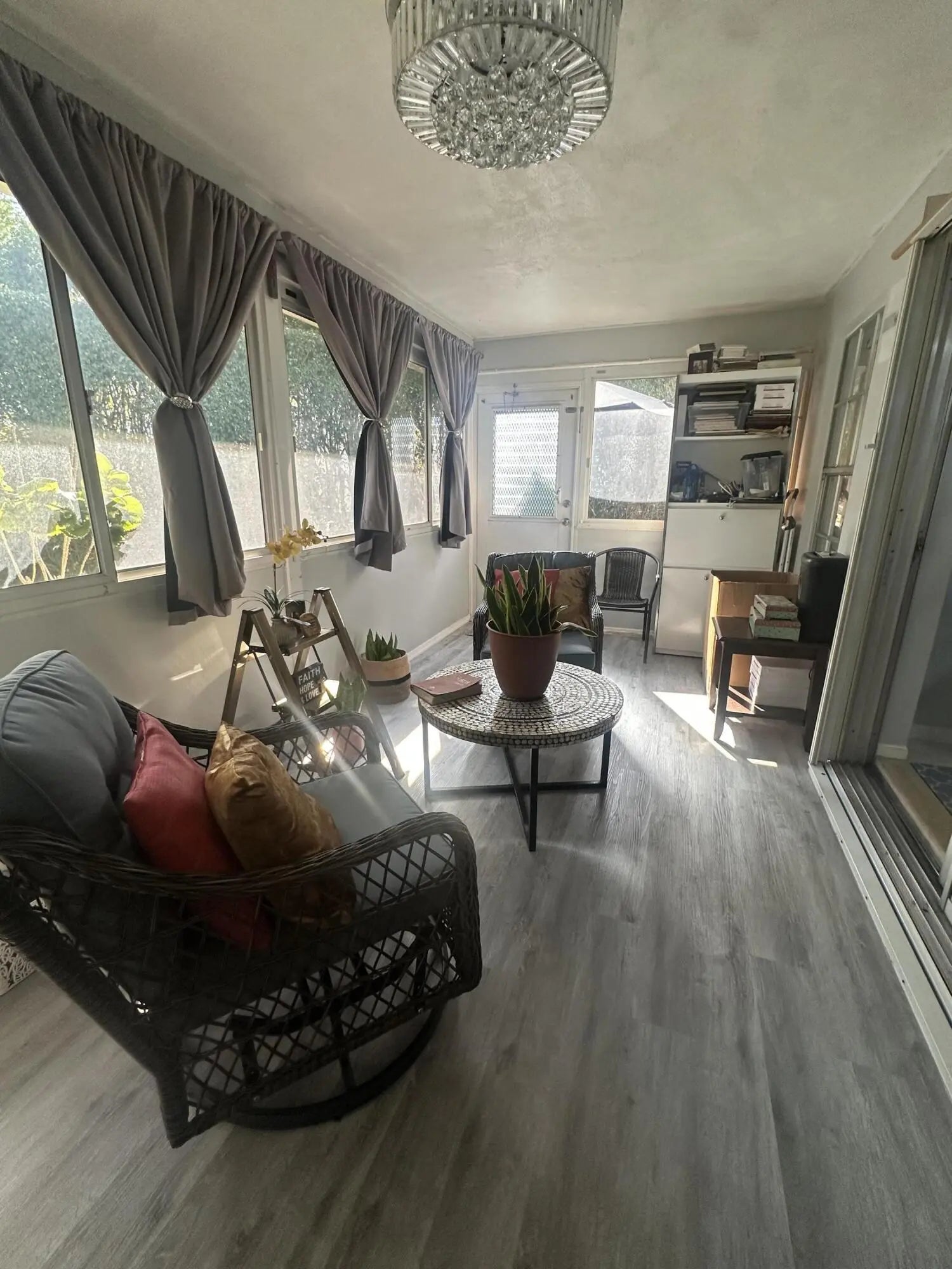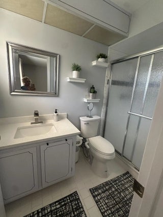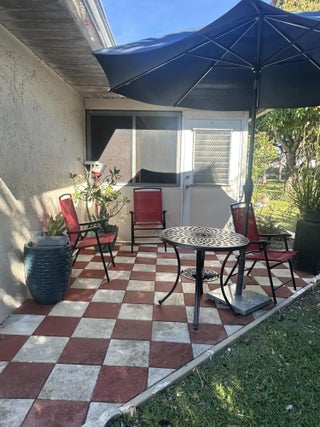 This beautiful 2-bedroom, 2-bathroom villa, features a large dining and living room. The kitchen has quartz countertops, stainless steel appliances, and a double oven. A nice year-round in the spacious screened-in porch, complete with a split AC unit, landscaped garden and backyard a true private patio. New roof installed in 2023 and a community that takes care of the details: water, cable, landscaping and irrigation. Great Club house amenities. Don't miss this opportunity to live in a 55+ community close to everything, in the middle of west palm beach.