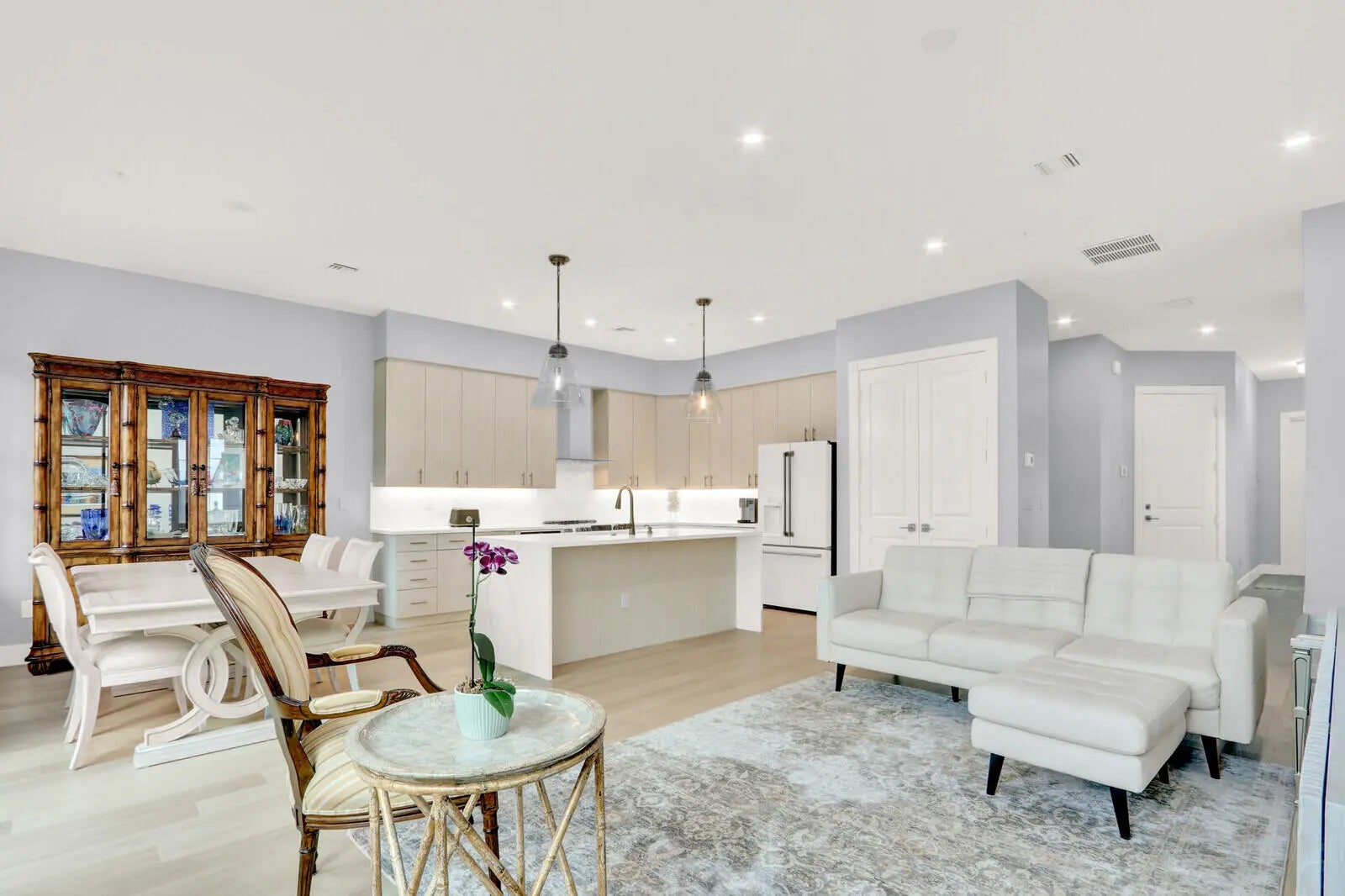 Welcome to Water Pointe Jupiter's newest Townhouse community. Over $65K in upgrades in this rare Bahama, 3 bedroom, 2.5 bath, END UNIT with extended balcony that allows you to skip the wait & move in now! The thoughtfully designed interior showcases with extensive upgrades throughout, beginning with the chef-inspired kitchen featuring upgraded Cafe appliances including an induction cooktop with double oven, externally vented range hood, drawer microwave, dual-drawer dishwasher, French-door refrigerator with hot water dispenser, a dedicated beverage and wine cooler, and pull-out trash/recycling bins. The oversized quartz waterfall island and full quartz backsplash complete the look, along with a white porcelain sink and upgraded cabinetry to elevate both style & functionality. Custom window and door castings, along with dual sheer and light filtering window and door treatments throughout enhances the home's airy ambiance. Additional highlights include upgraded cabinets in bathrooms with upgraded fixtures, an Electrolux washer/dryer tower, laundry room cabinets, air-conditioned under-stair storage, upgraded alarm panels with cellular remote access, Google Nest doorbell with camera, and a garage with an epoxy-coated floor & utility sink. Enjoy the outdoors with balconies off each of the bedrooms and an extended patio off the great area. Water Pointe is an exceptional Key West inspired boutique townhouse condominium community of only 35 residents who enjoy resort-style amenities including a luxury heated pool and whirlpool, pool pavilion, cabana with fitness center, playground, and more. Best of all, you're ideally located in the heart of Jupiter near the Intracoastal Waterway, the popular Riverwalk, and minutes to Jupiter's dog beach! This is an exceptional opportunity to enjoy Jupiter living at its finest - today!