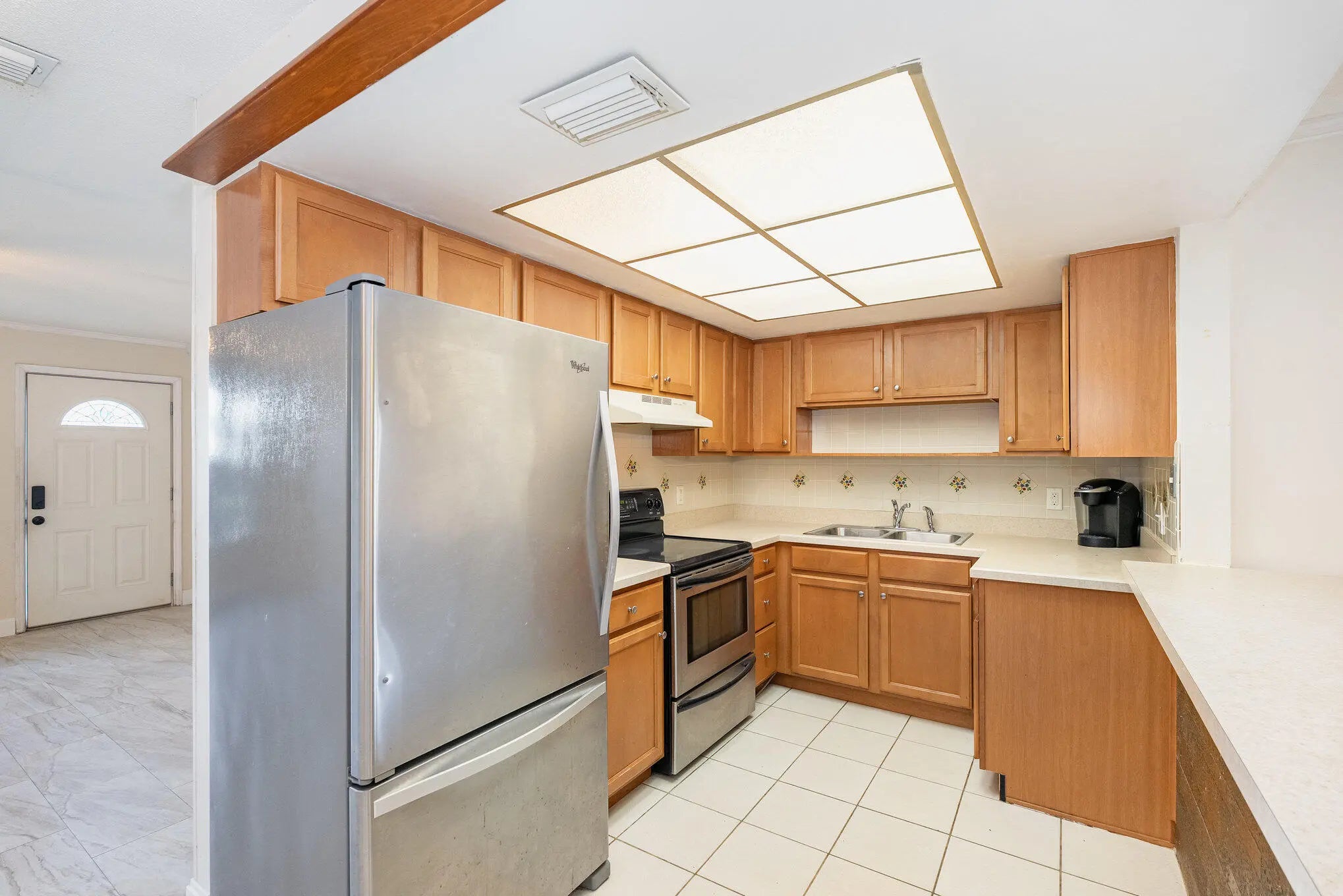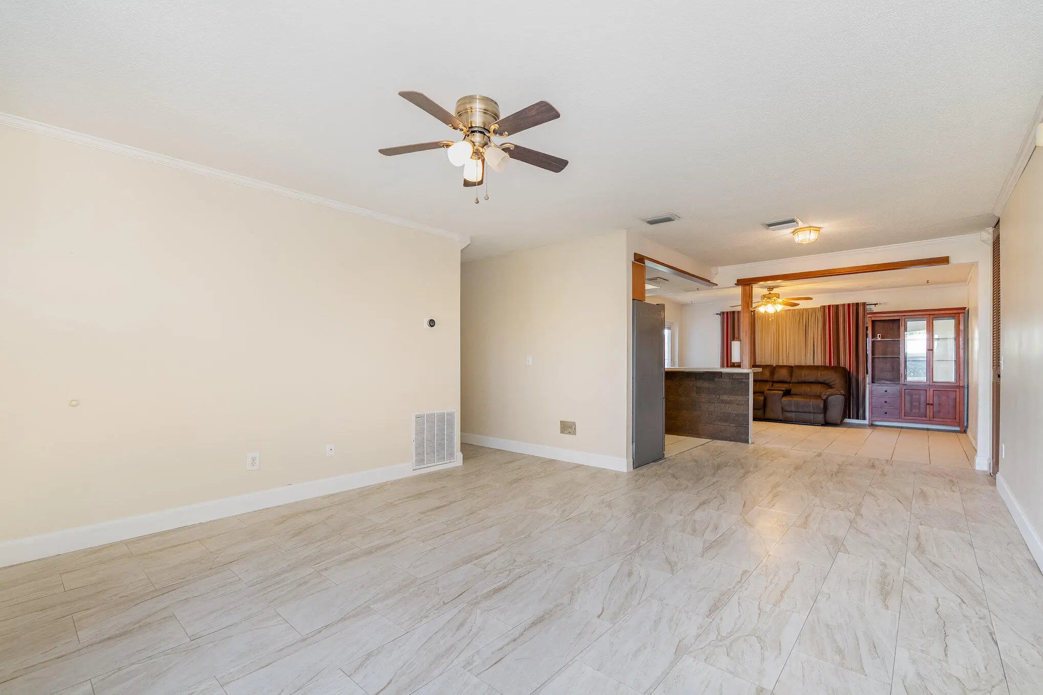 Bring your personal touch to this charming 3 bedroom, 2 bathroom single family home with NO HOA, featuring a carport with additional parking space in the driveway. Step into the bright, welcoming living room that flows effortlessly into the open kitchen, designed for both style and functionality with light wood cabinetry, a stainless steel refrigerator, black stove, and a convenient breakfast bar that opens to the dining area. Sliding door in the dining room lead to an enclosed back patio, seamlessly connecting to the expansive, fully fenced backyard. The guest bedrooms are spacious and filled with natural light, while the guest bathroom offers a shower/tub combination with an updated single vanity. The master suite is a true retreat, boasting French doors to the covered patio overlooking the backyard and a modern, well-appointed bathroom with multi-toned stone-look tile, glass shower doors, a dark wood vanity with granite countertop, and a framed mirror. Step outside to enjoy the expansive, fully fenced backyard offering plenty of space for pets, play, or even a future pool. The paved patio area provides an ideal setting for outdoor dining, barbecues, or simply soaking up the Florida sunshine surrounded by tropical landscaping and privacy fencing. Located in the heart of Melbourne, Florida, this home offers the ideal blend of small-town charm and modern convenience. Nestled in a quiet neighborhood, it's just minutes from the Space Coast's pristine beaches, top-rated schools, local parks, and major employers such as Northrop Grumman and L3Harris. Residents enjoy easy access to Melbourne Orlando International Airport (MLB), Melbourne Square Mall, shopping plazas, boutique stores, and everyday conveniences. Dining and entertainment abound, from eclectic downtown restaurants, bars, and cafes to waterfront seafood spots and laid-back pubs. Outdoor enthusiasts will love nearby Indian River Lagoon for boating and fishing, as well as Wickham Park with scenic trails, picnic areas, and year-round events. With I-95 just a short drive away, exploring Orlando and other coastal cities is a breeze. This prime location truly combines comfort, convenience, and the relaxed Florida lifestyle, making it an exceptional place to call home.