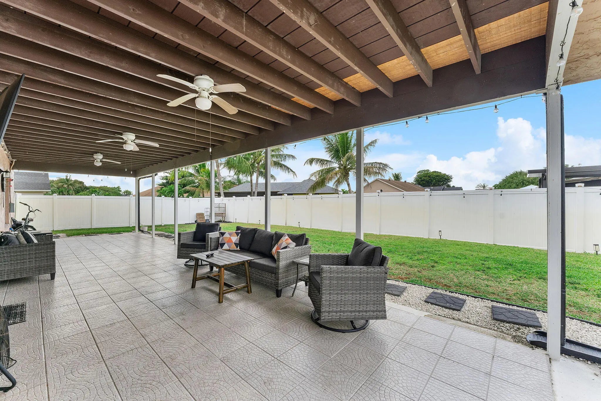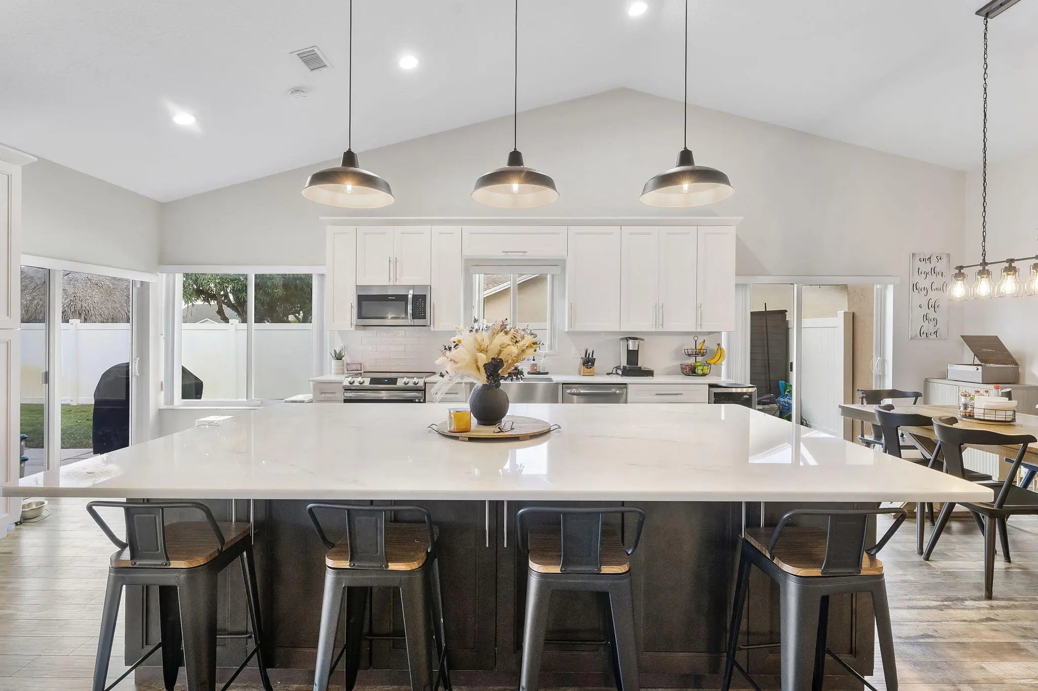 Welcome home to the Lakes of Sherbrooke. This single family home is truly move in ready. Offering a completely remodeled open floor plan kitchen with large center quartz island, newer SS appliances, dining area, and great room. contemporary upgrades include wood look flooring throughout the home, new lighting, Vaulted ceilings, Roof is 2024. COMPLETE Hurricane Impact Windows & Sliders, Brand new impact front door. New Class A Garage Door. All new gutters and added insulation in the attic. Completely fenced private and spacious backyard that is well maintained, choice of two community clubhouses, activities, and swimming pools. Zoned for Lake Worth's newest school, Dr Joaquin Garcia High School and Woodlands Middle School, Low HoA includes Fiber Optic WiFi & Cable.