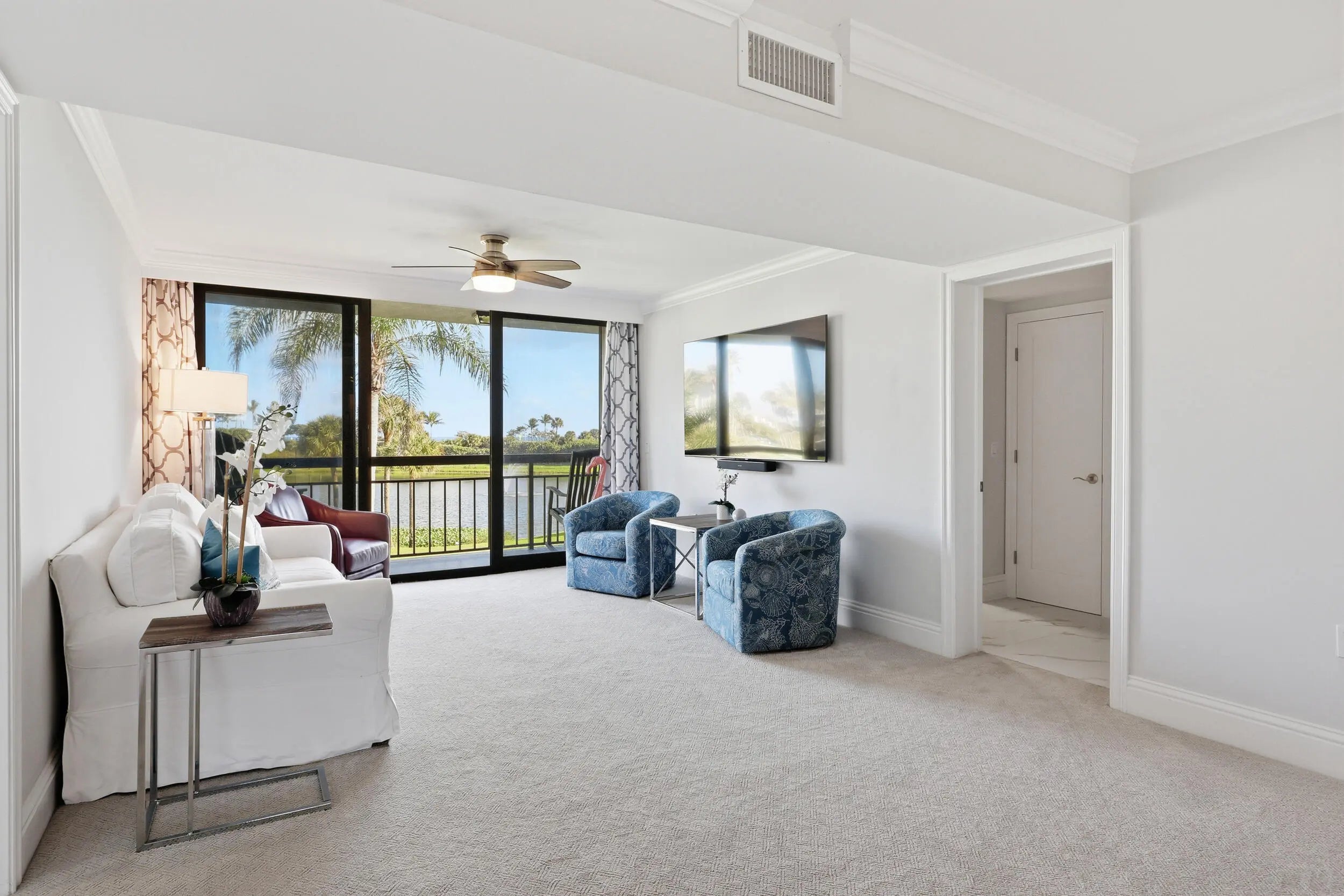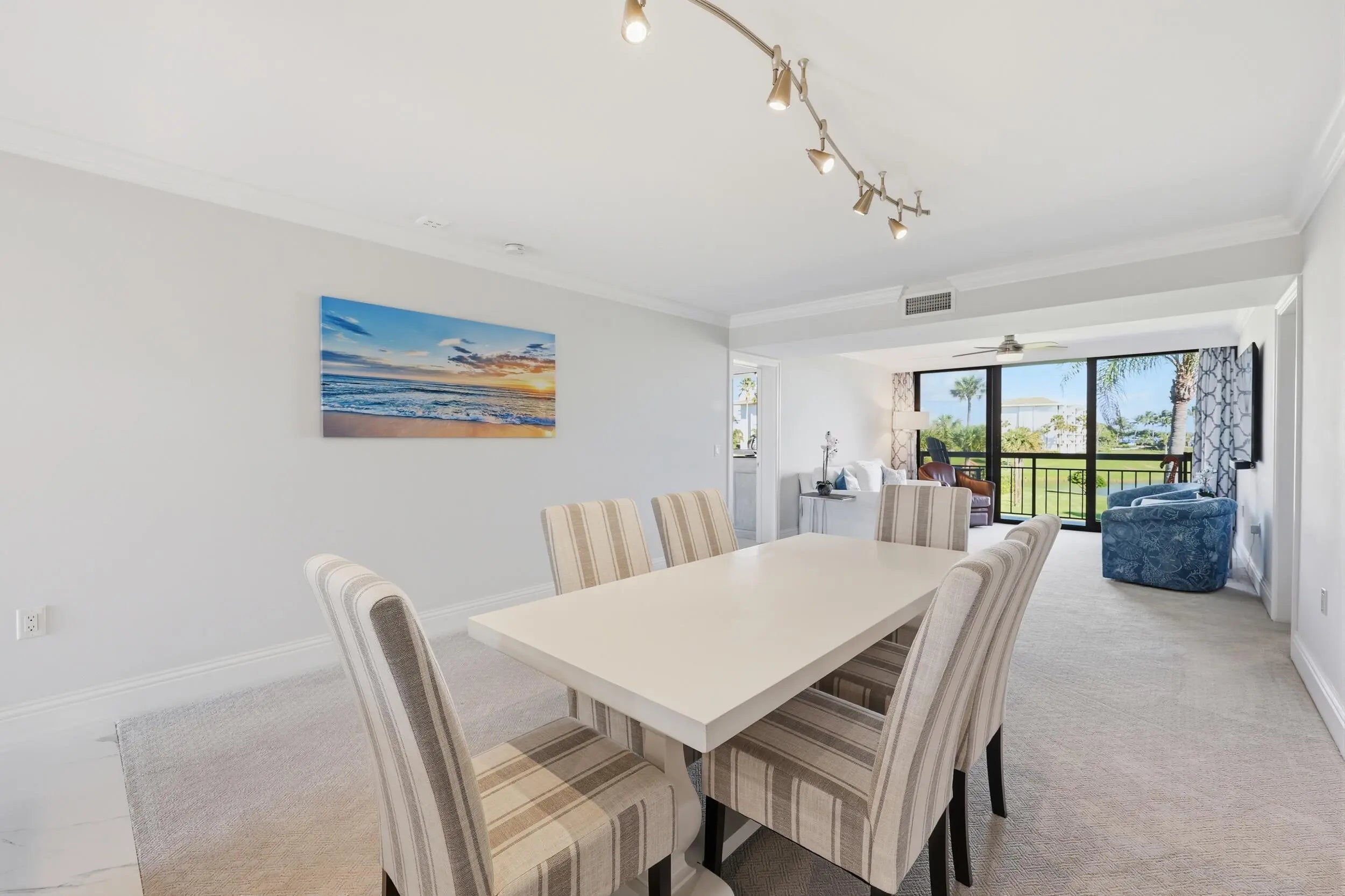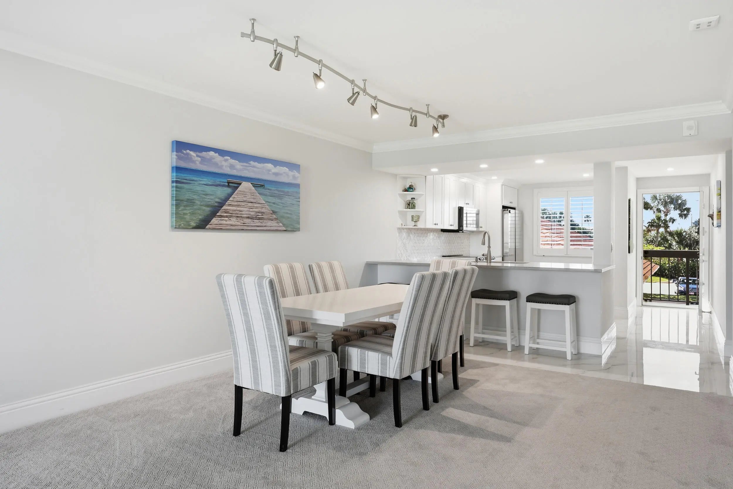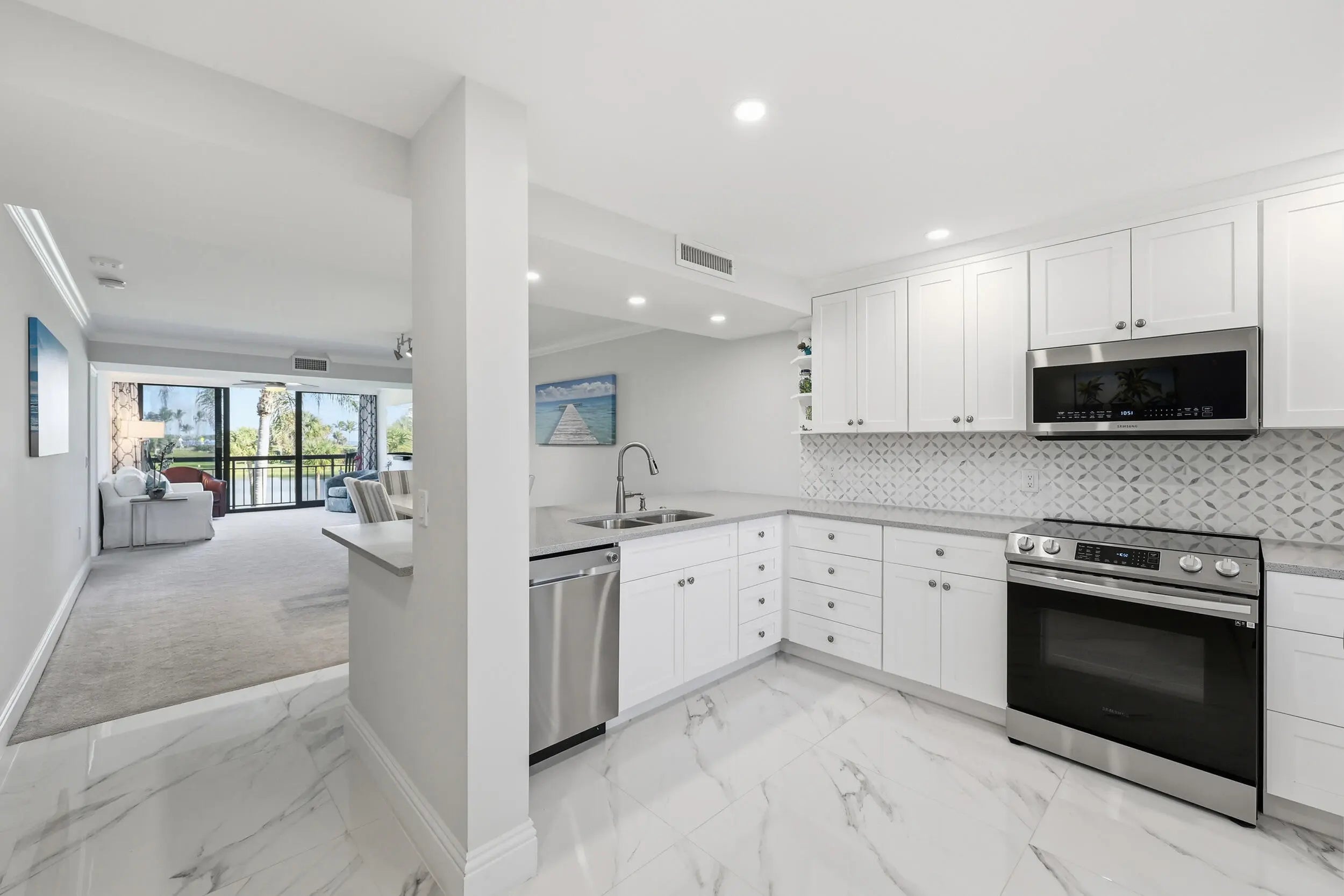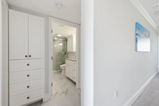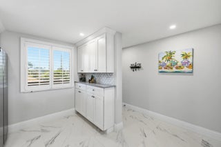 No detail was overlooked in this fully renovated 2-bedroom, 2-bath oceanfront condo in Jupiter, where quality craftsmanship meets breathtaking coastal views. This residence has been thoughtfully reimagined from top to bottom, with every surface, system, and finish carefully selected to deliver a truly turnkey experience. The stunning kitchen has been completely redesigned with white shaker cabinetry, quartz countertops extended by 30 inches for enhanced function and seating, and a seamless open layout ideal for entertaining. Large scale porcelain tile and flows throughout, while all baseboards, casing, and crown molding have been fully replaced, reinforcing the home's elevated, finished feel. Both bathrooms echo the kitchen's high-end design with white shaker cabinets, quartz counters, and spa-inspired finishes, creating a cohesive and timeless aesthetic. A redesigned laundry room adds exceptional functionality, featuring an ice maker and an additional bonus room off the laundry perfect for storage, office space, or flexible use. Enjoy peace of mind and storm protection with full impact windows, all while taking in spectacular ocean, lake and pool views. Major systems have been addressed as well, including a new HVAC system and hot water heater (2021).