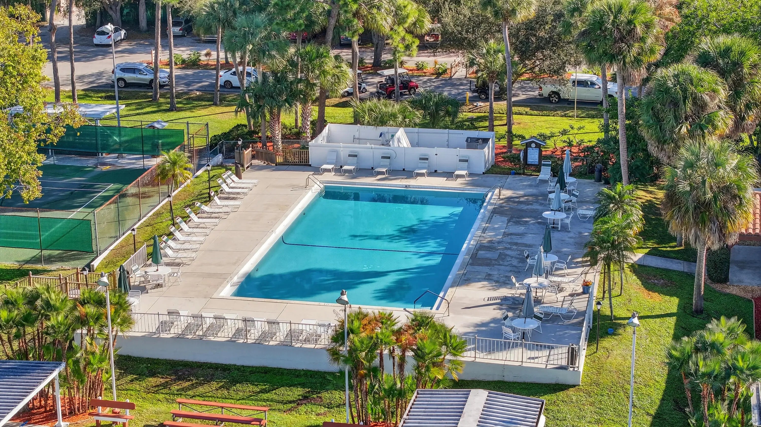 Billiard Room, Clubhouse, Dog Park, Fitness Center, Golf Course, Pool, Sauna, Shuffleboard Court, Spa/Hot Tub, Tennis Court(s), Workshop Area, Manager On Site, Bocce Ball, Community Room, Library, Pickleball Court(s)